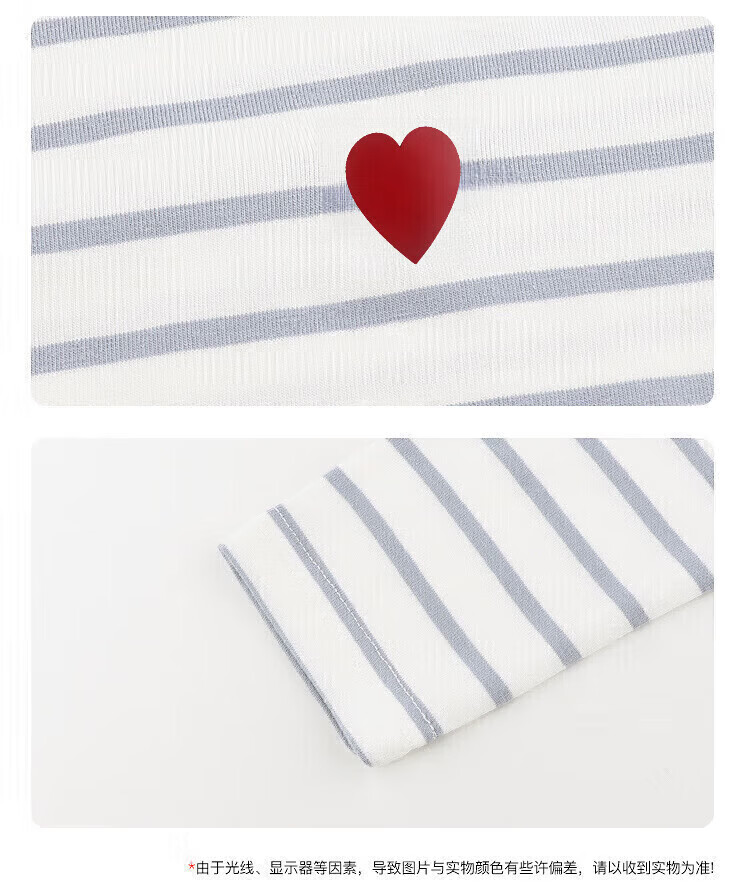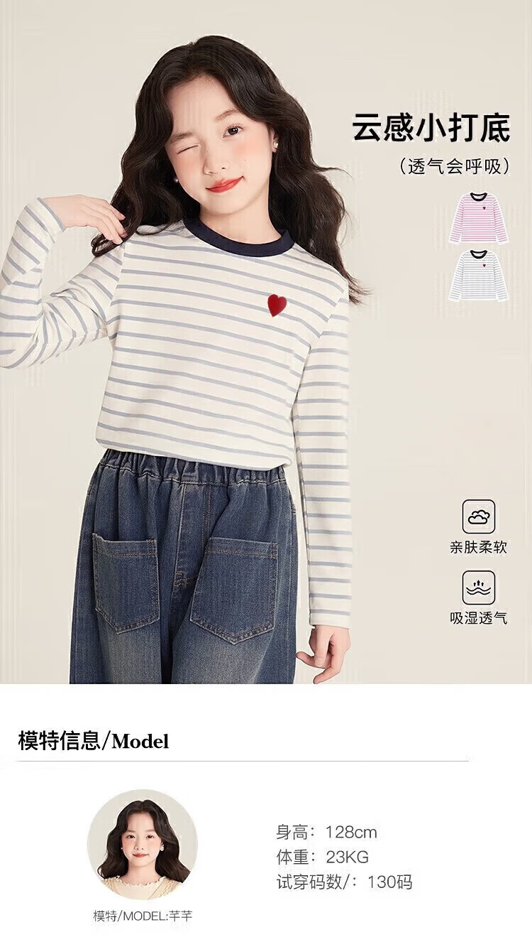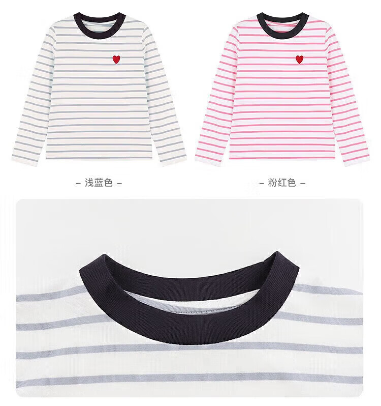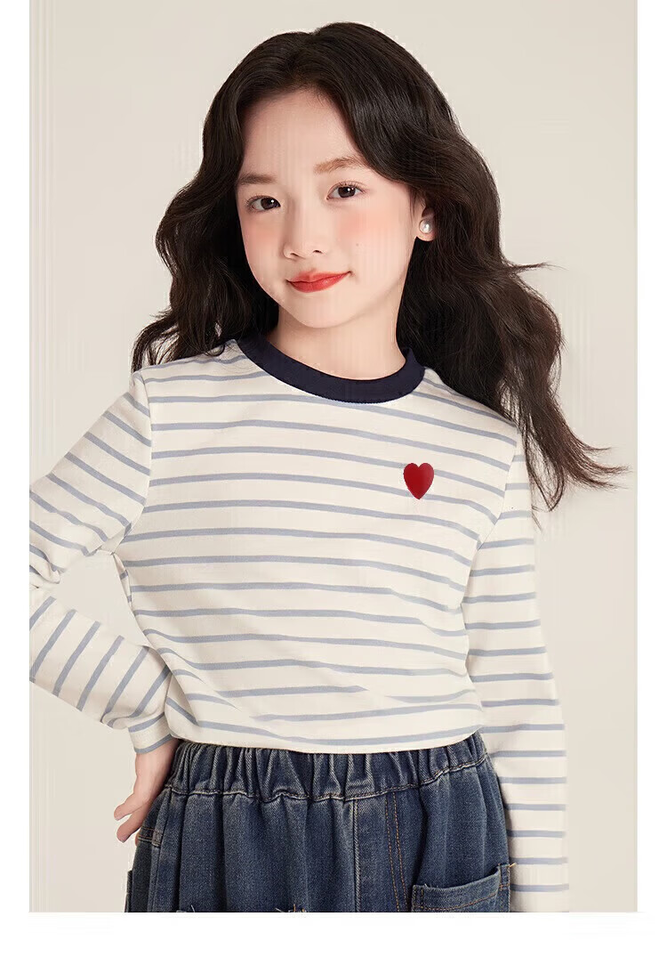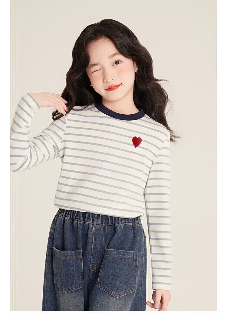 小猪班纳(PEPCO)女童条纹上衣春季2025新款韩版修身撞色条纹爱心圆领长袖T恤 灰蓝条纹 170 *建议身高160-165cm