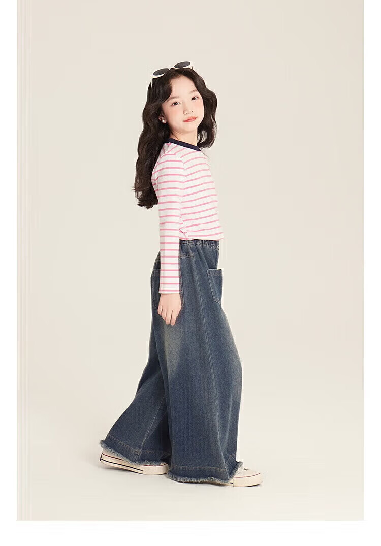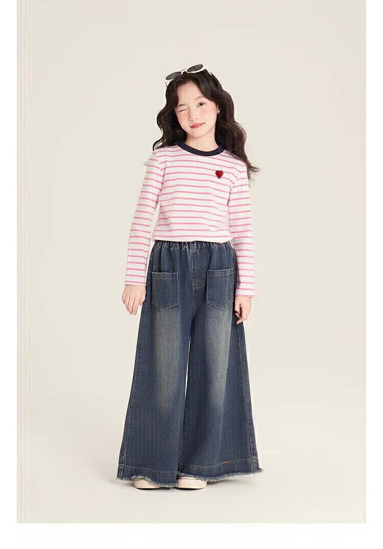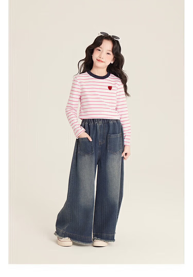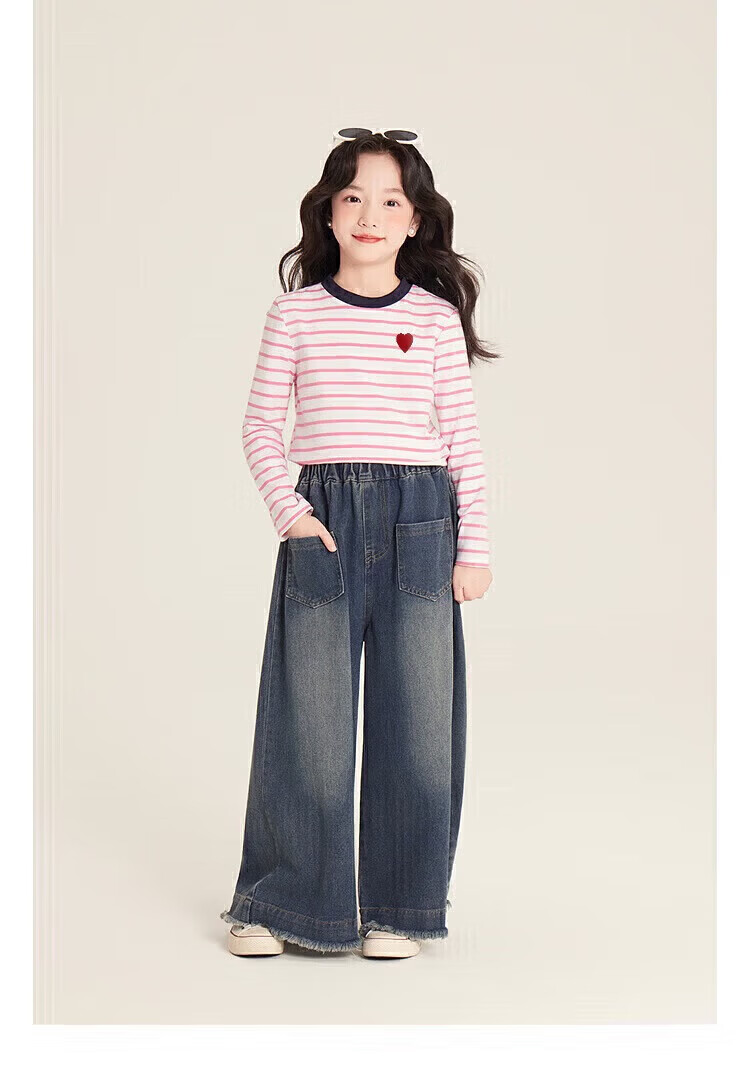 小猪班纳(PEPCO)女童条纹上衣春季2025新款韩版修身撞色条纹爱心圆领长袖T恤 灰蓝条纹 170 *建议身高160-165cm
