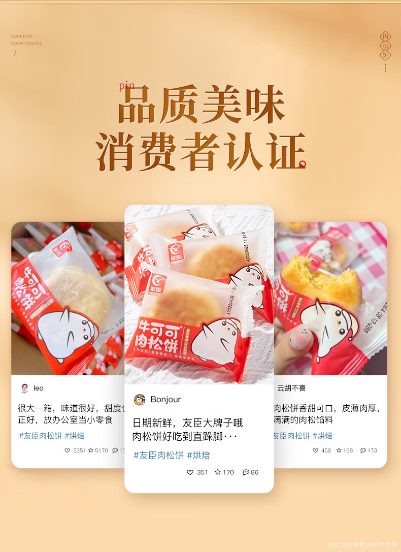 友臣(YOUCHEN)肉松饼干面包整箱送礼中秋礼盒糕点办公室解饿休闲零食小吃非油炸 1kg肉松饼原味-约28枚散装