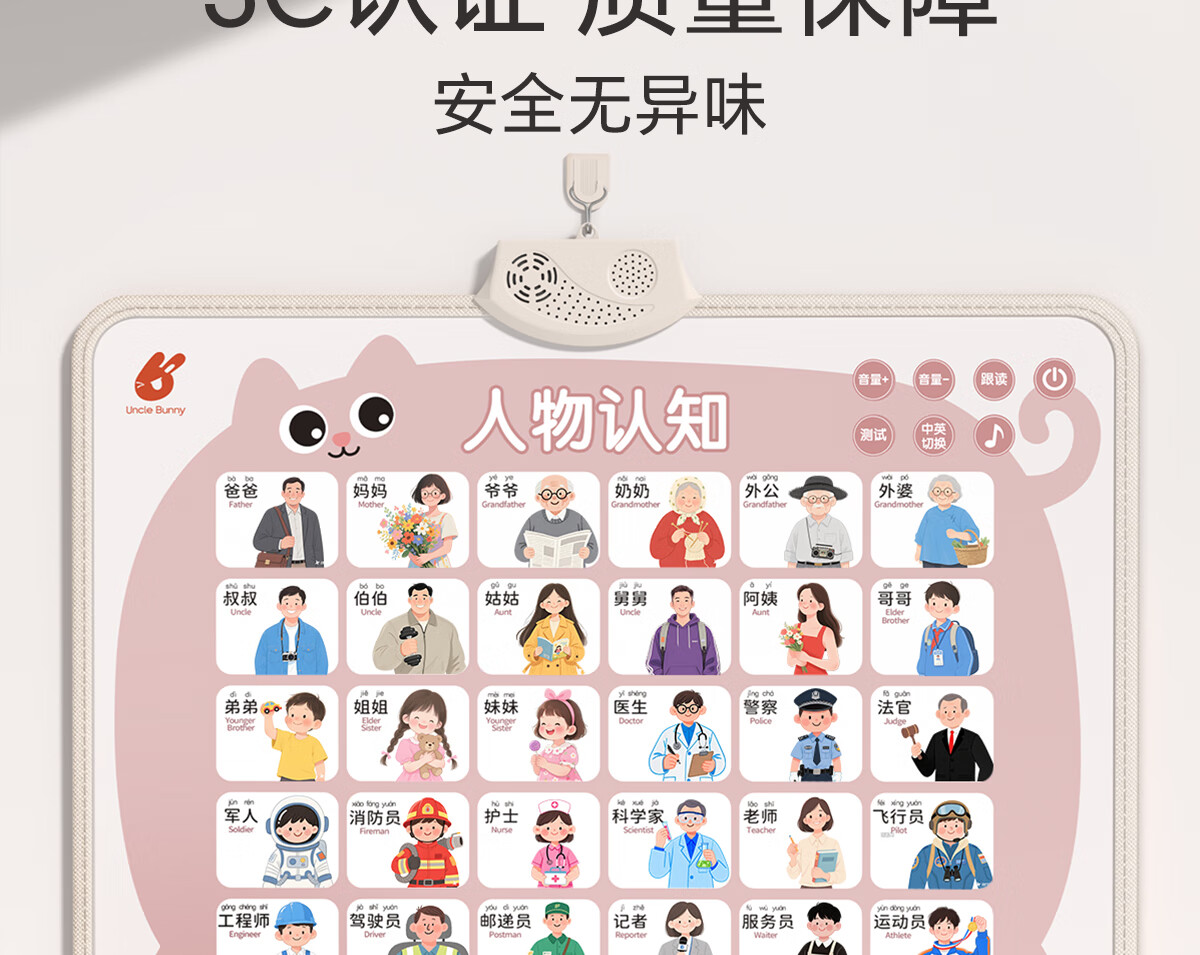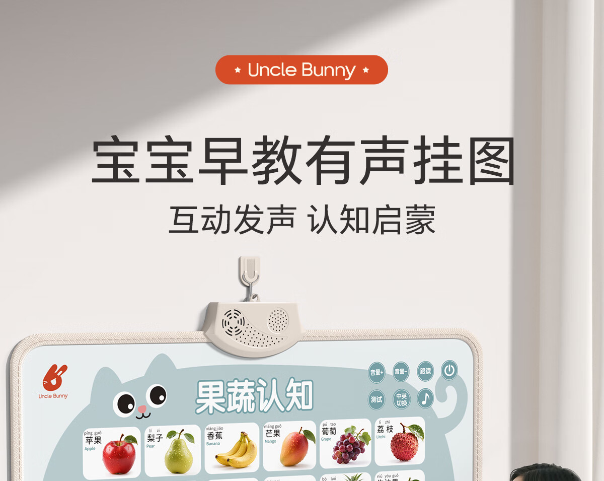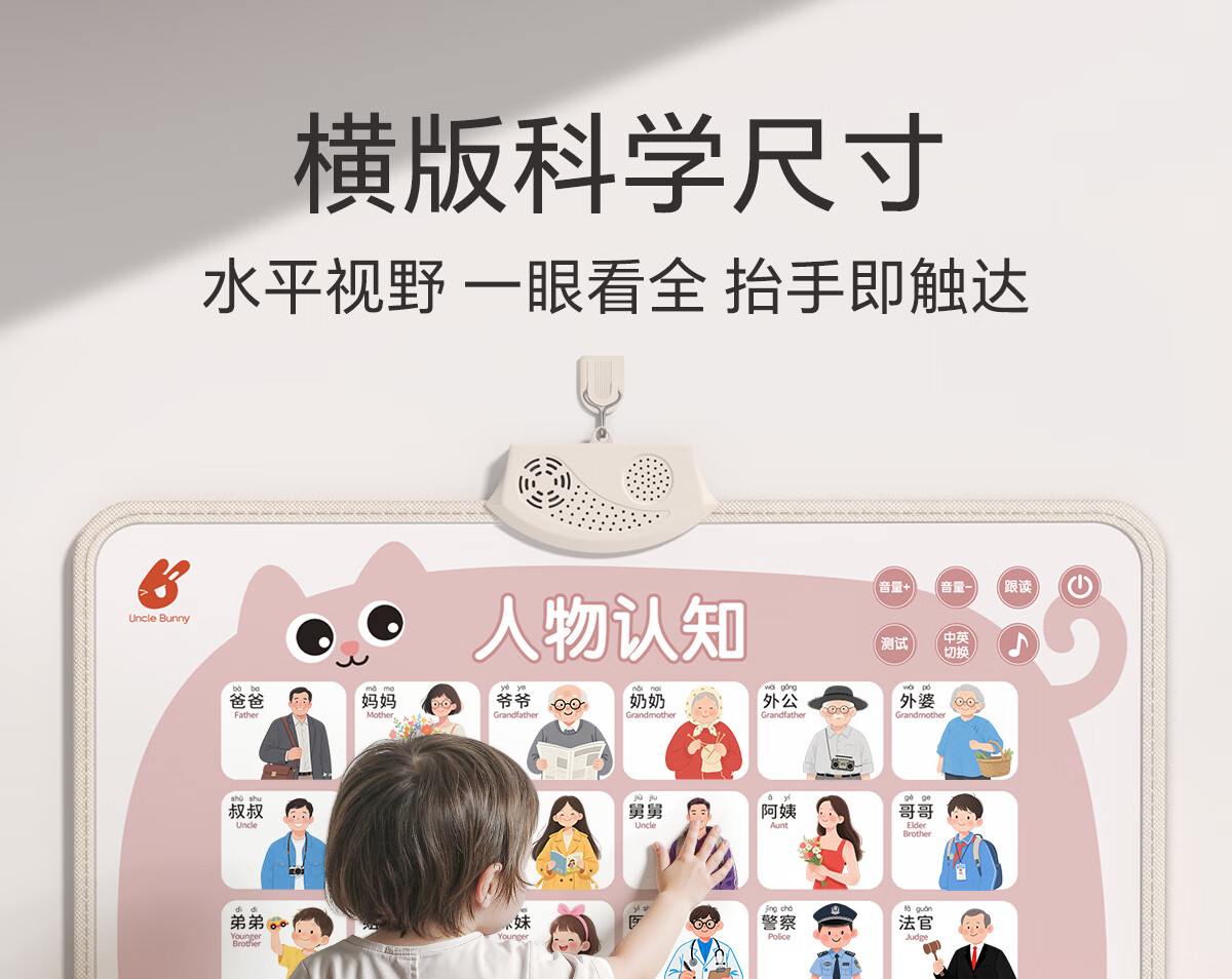 兔蜀蜀有声挂图早教认知0-3岁儿童玩具拼音点读发声墙贴宝宝新年礼物 【0-2岁推荐】人物+果蔬+动物+交通