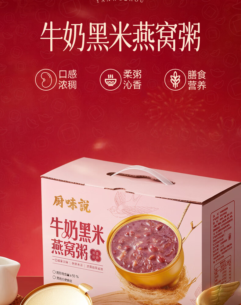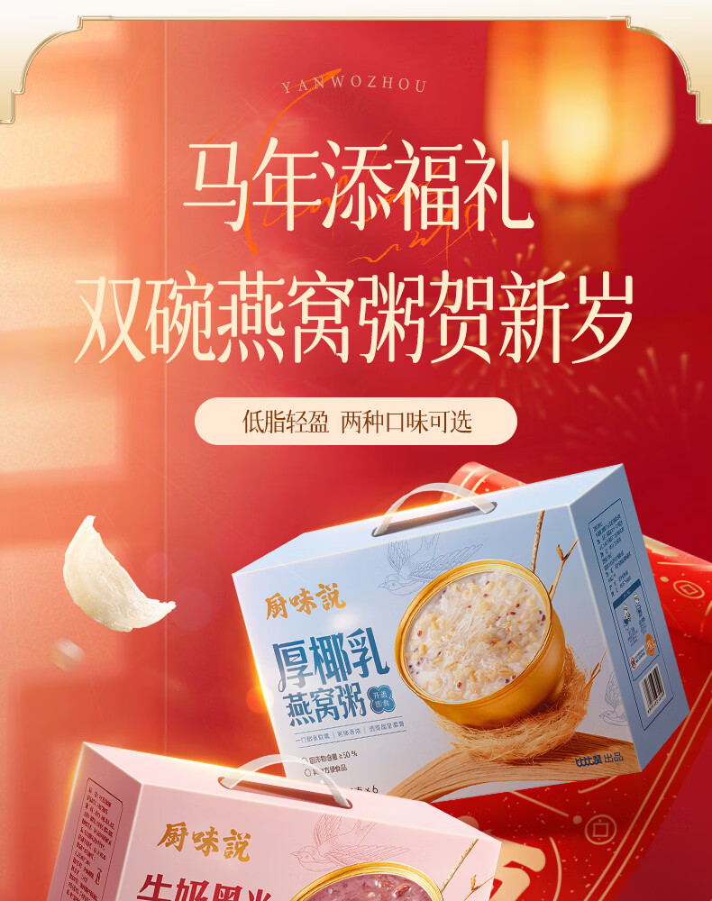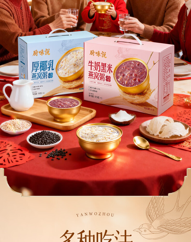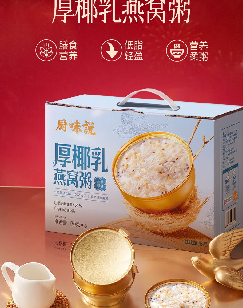 厨味说厚椰乳燕窝粥开盖即食170g*6碗年货礼盒送礼长辈牛奶黑米燕窝粥 厚椰乳燕窝粥1箱+牛奶黑米燕窝粥1箱