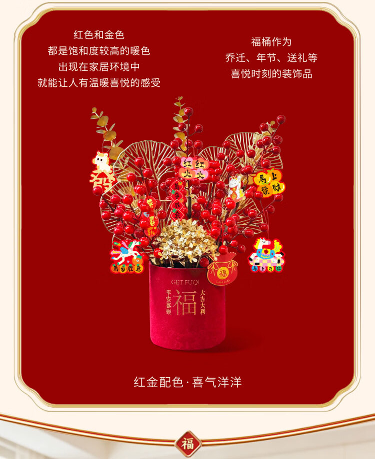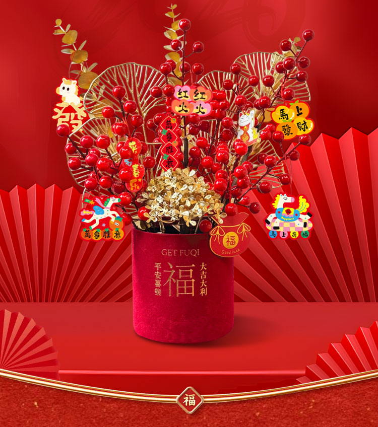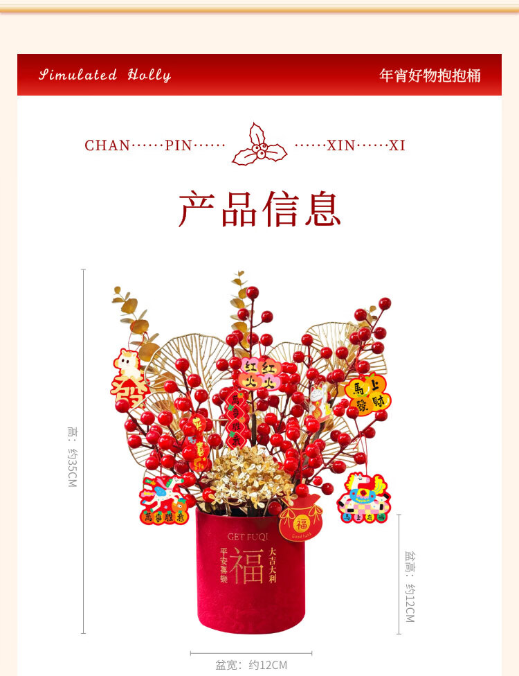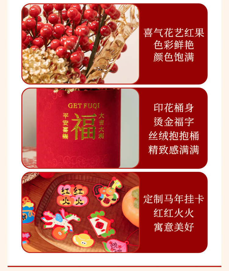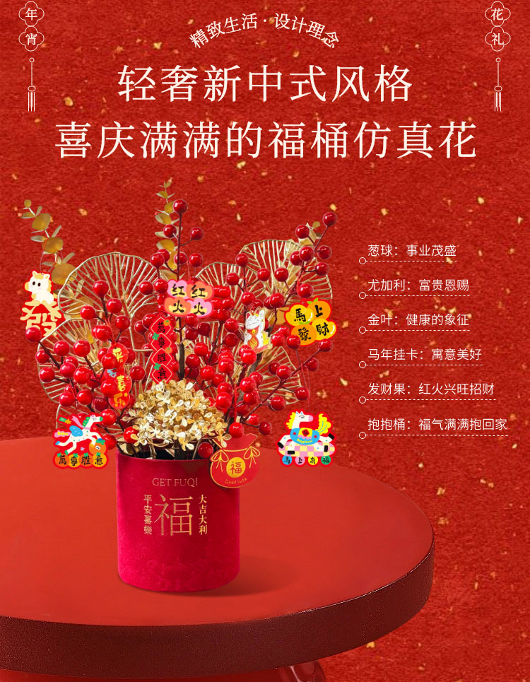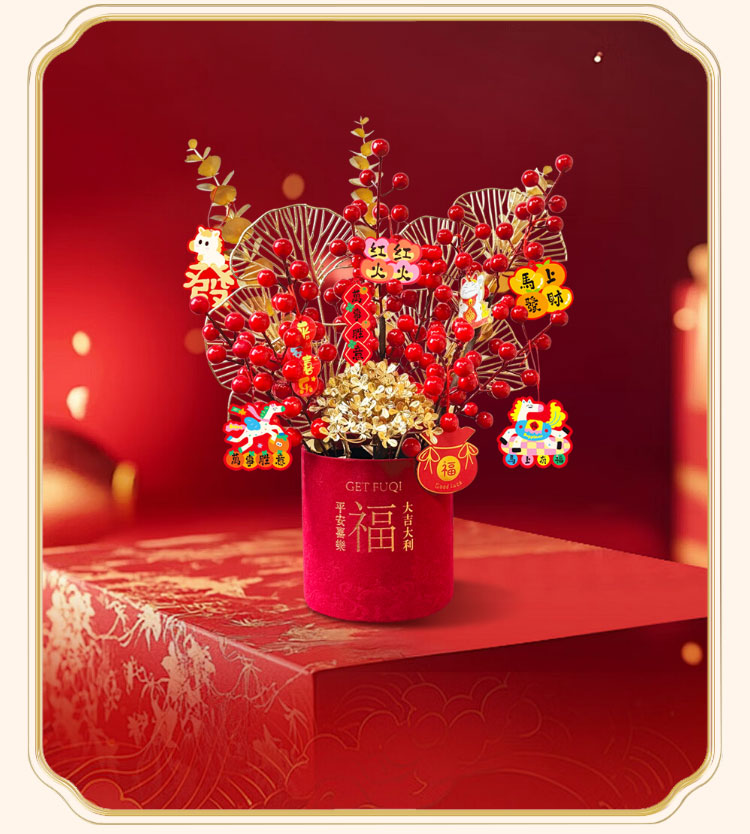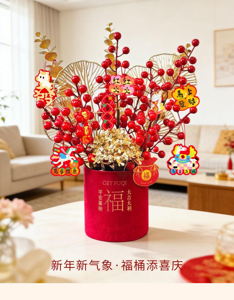 京东鲜花新年元旦装饰福桶摆件装饰冬红果福桶新居搬家年宵花摆件源头直发