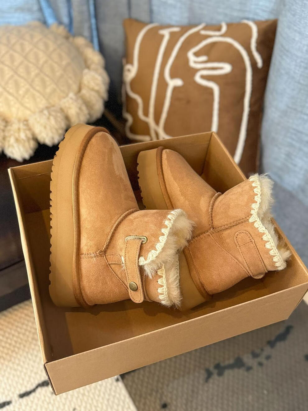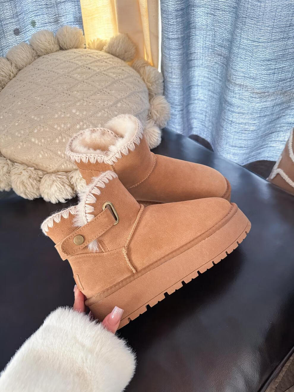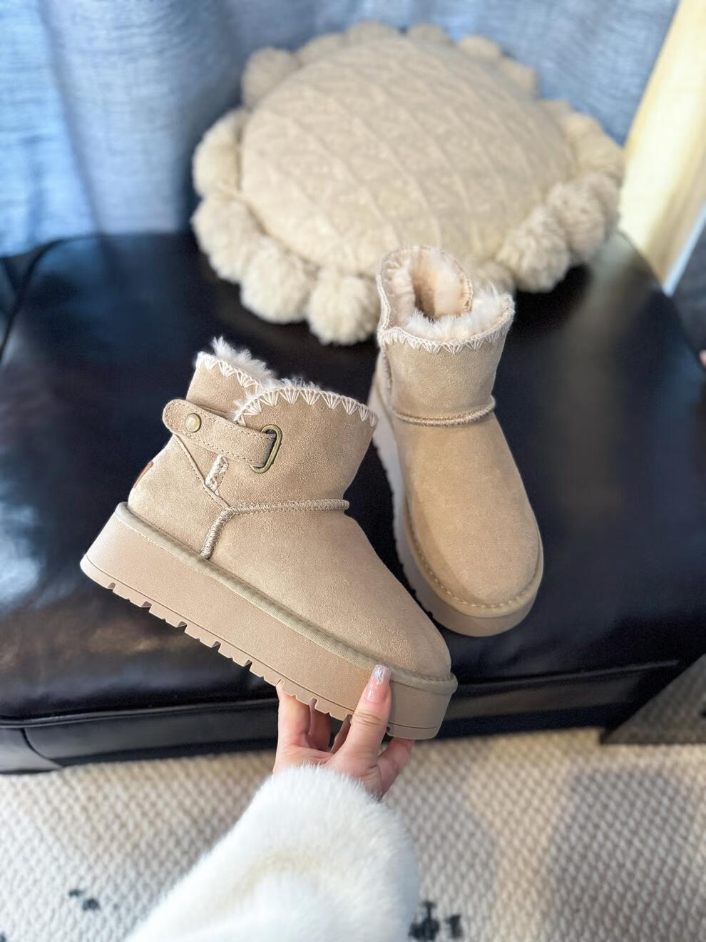 稻草人(MEXICAN)5CM增高厚底真皮雪地靴女冬季新款皮毛一体防滑棉鞋百搭毛毛短靴 栗色95%的选择【升级版】 35