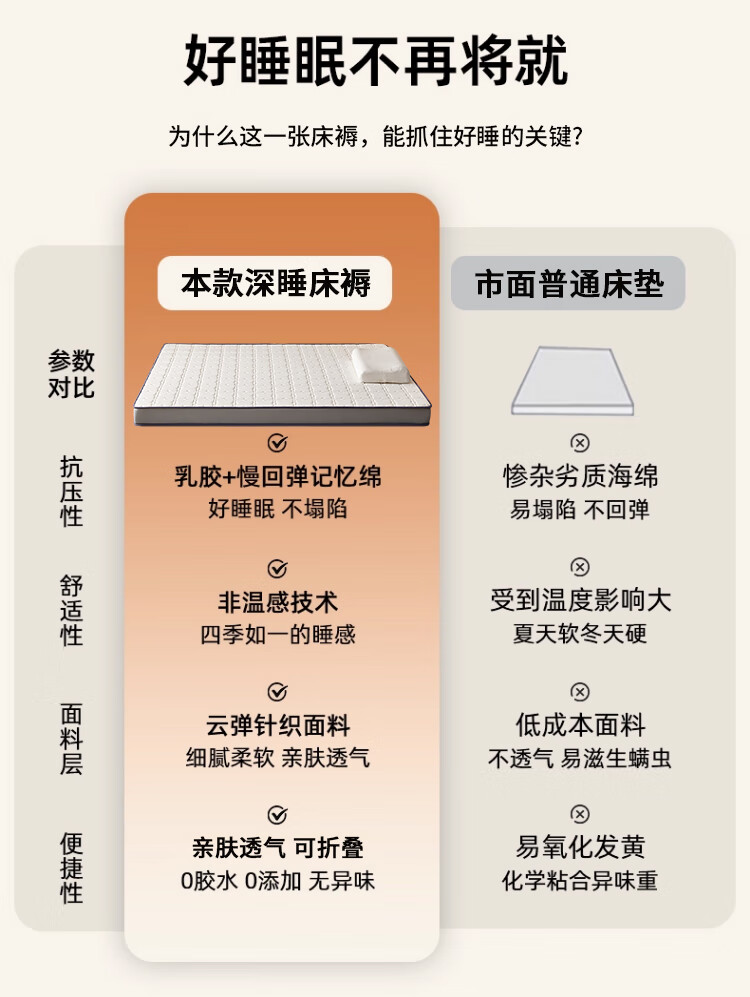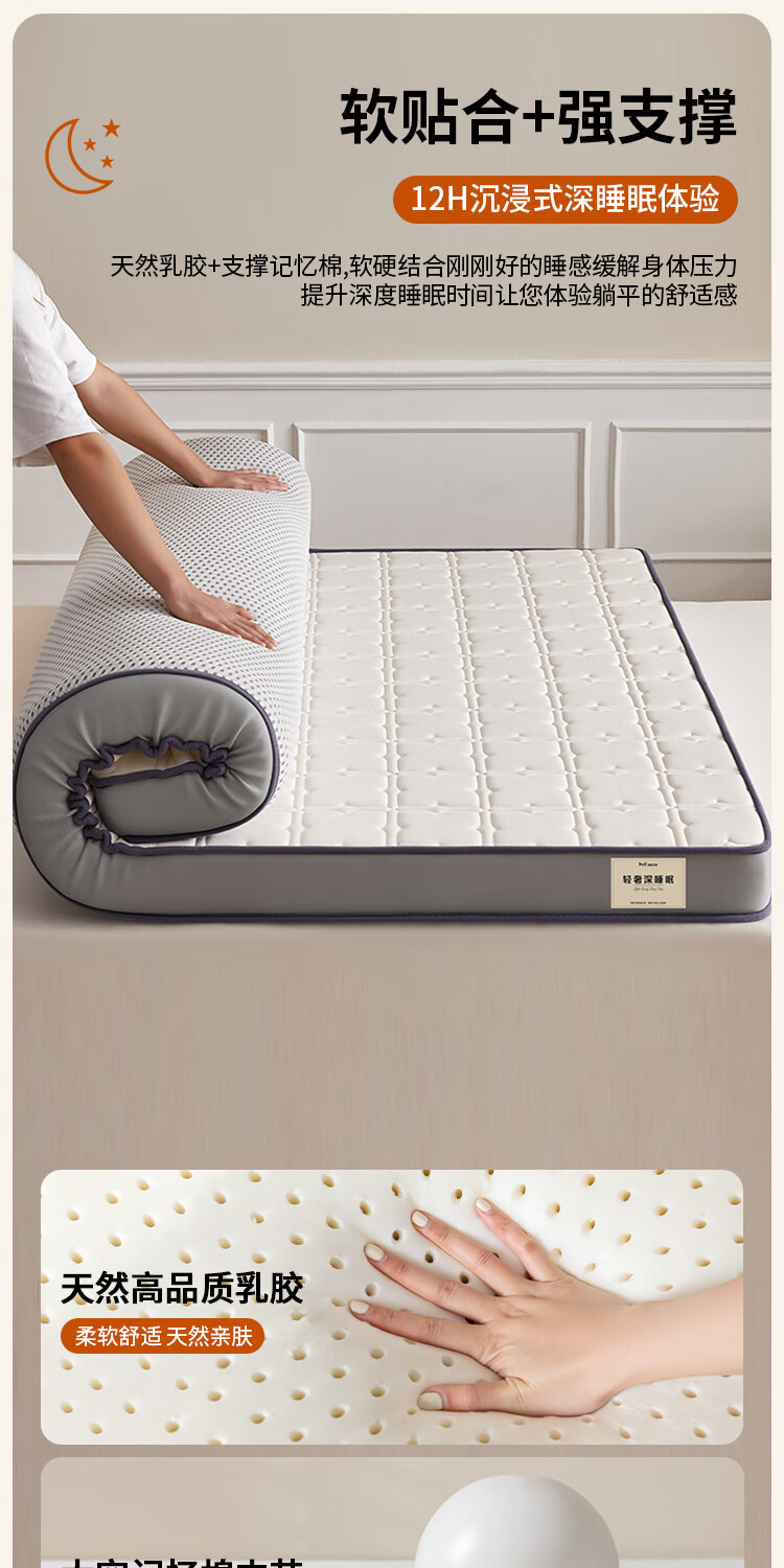 猫人(MiiOW)乳胶记忆棉床垫遮盖物家用卧室180x200软垫子宿舍单双人租房专用 【云感深睡】四菱格白/约6cm厚 80x190cm【A类面料丨释压深睡】