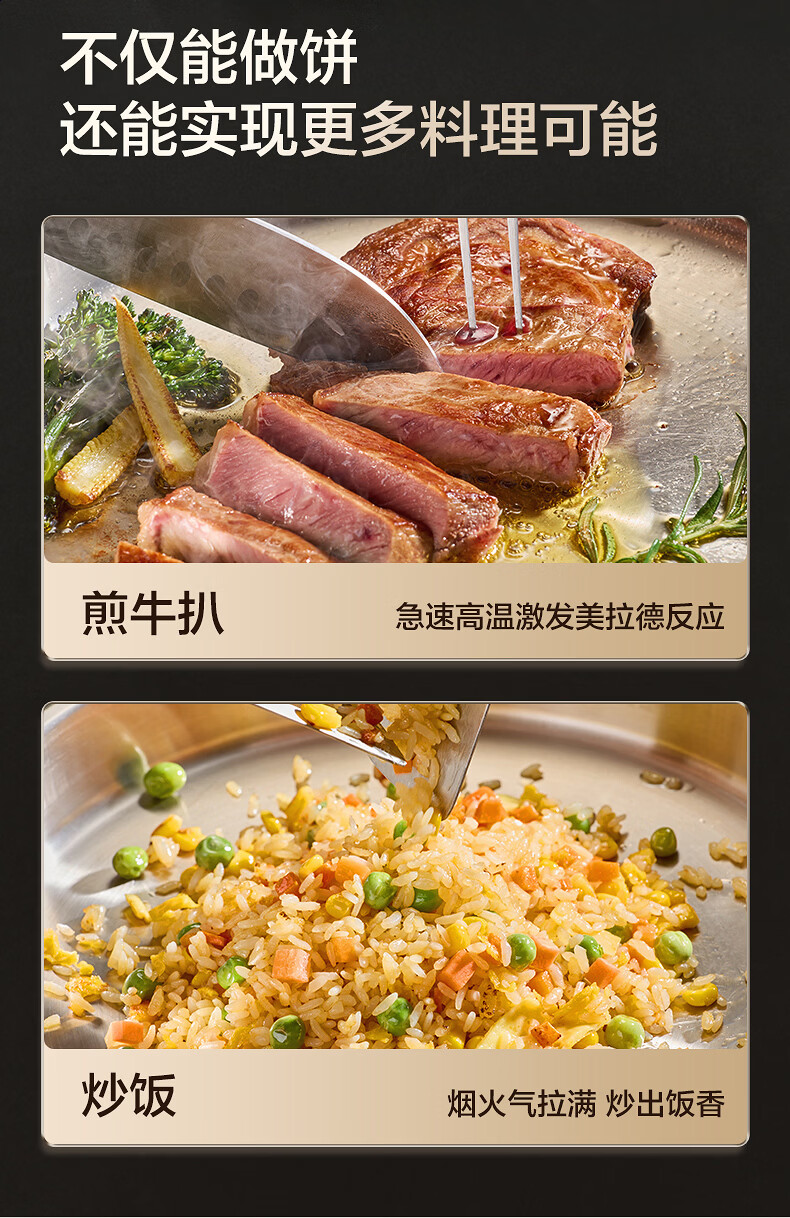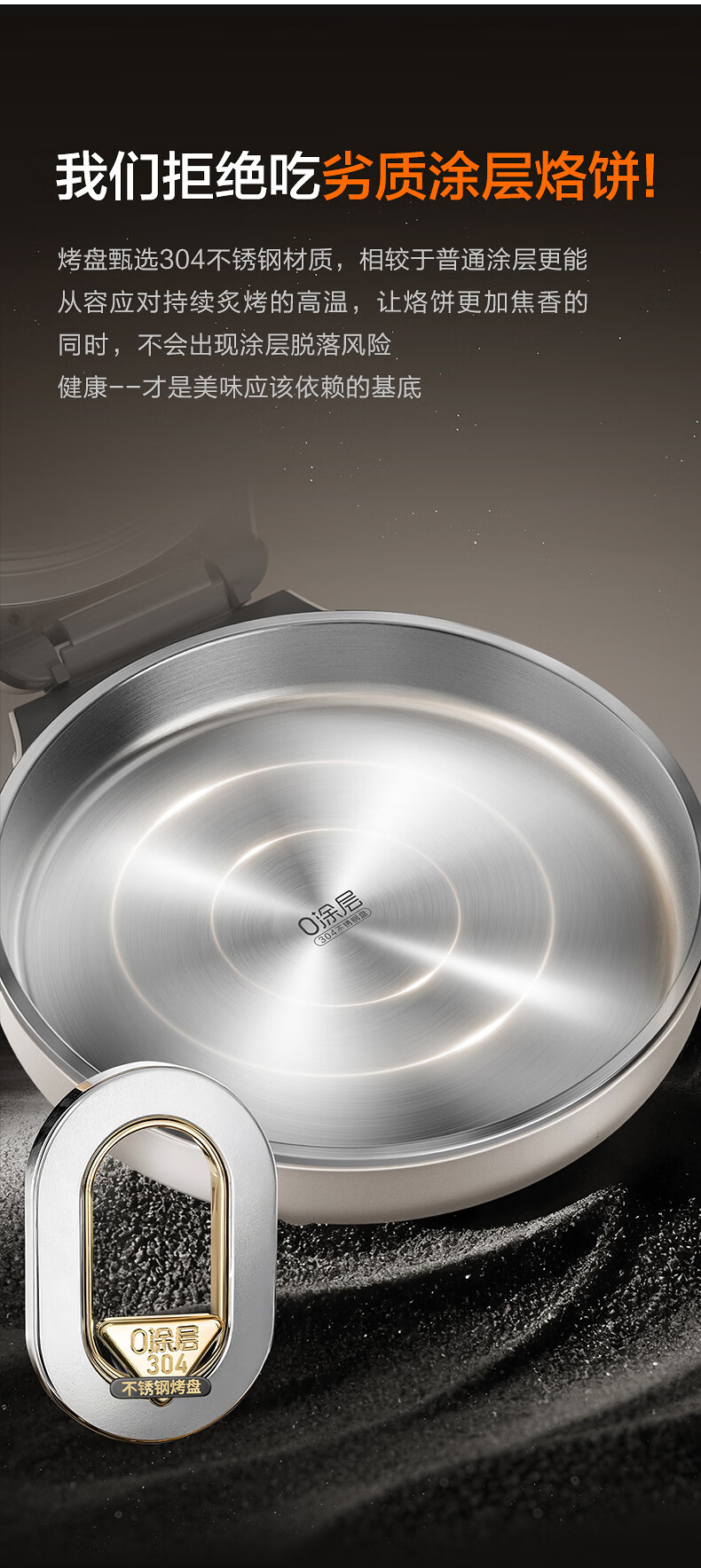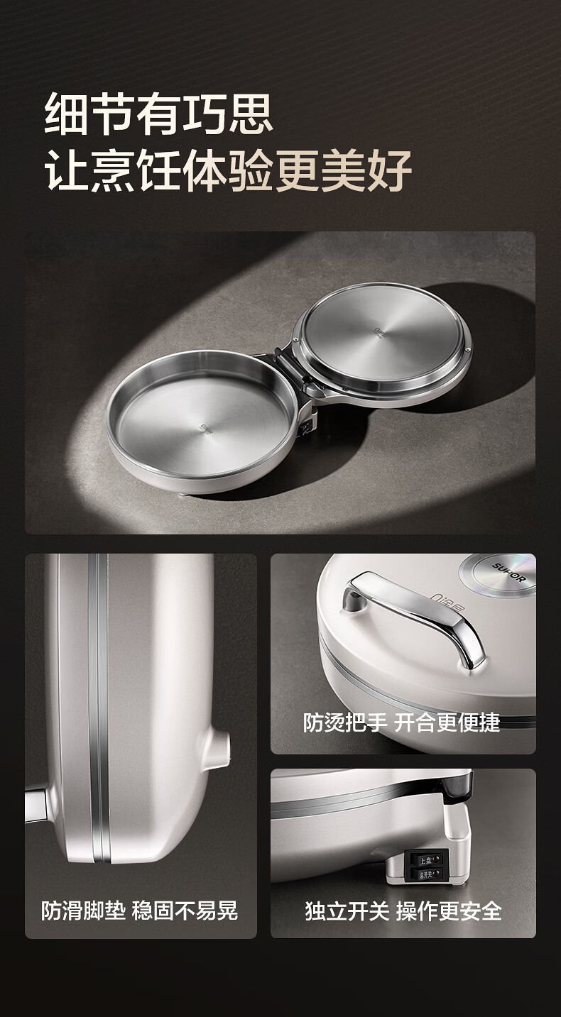 苏泊尔(SUPOR)电饼铛 0涂层304不锈钢 电饼档家用 煎饼锅烤肉锅 烙饼锅早餐机煎烤机 40mm加深 JJ30A830