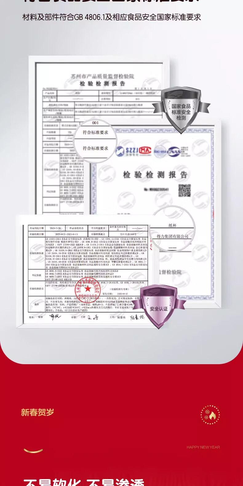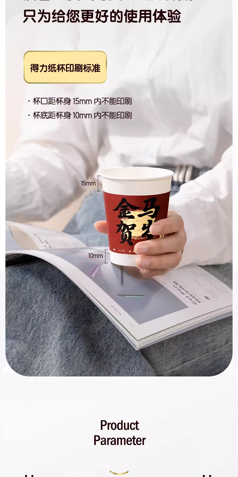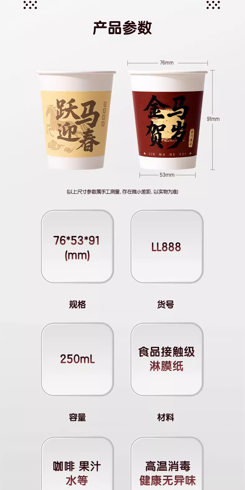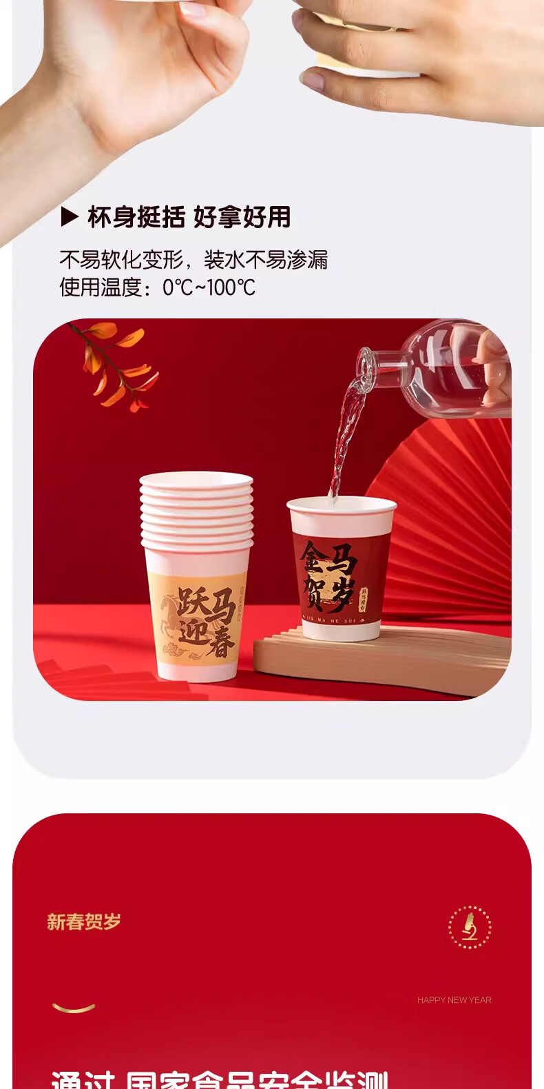 得力新年纸杯一次性红色2026马年茶水杯子加厚食品家用级热饮纸杯结婚 250ml新年加厚款50只装【金马贺春】