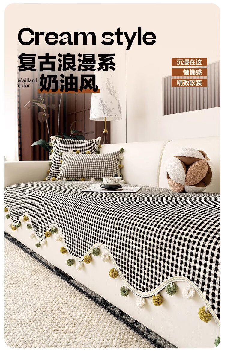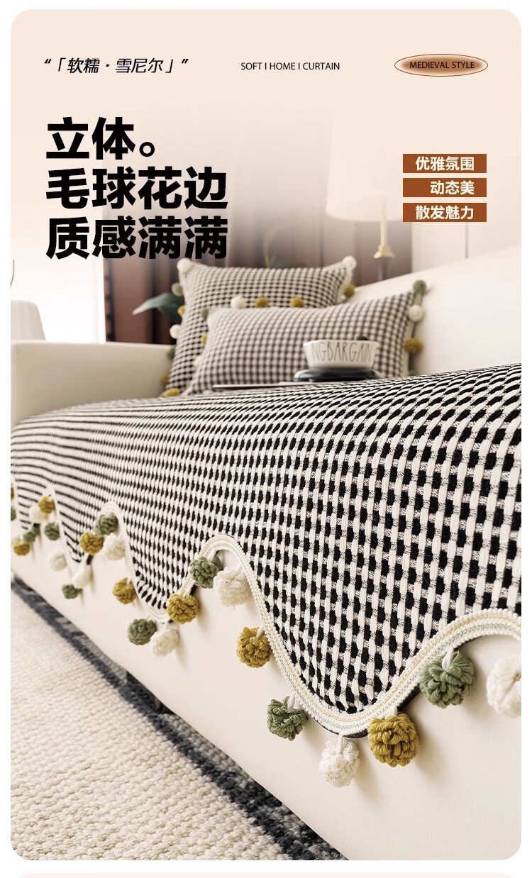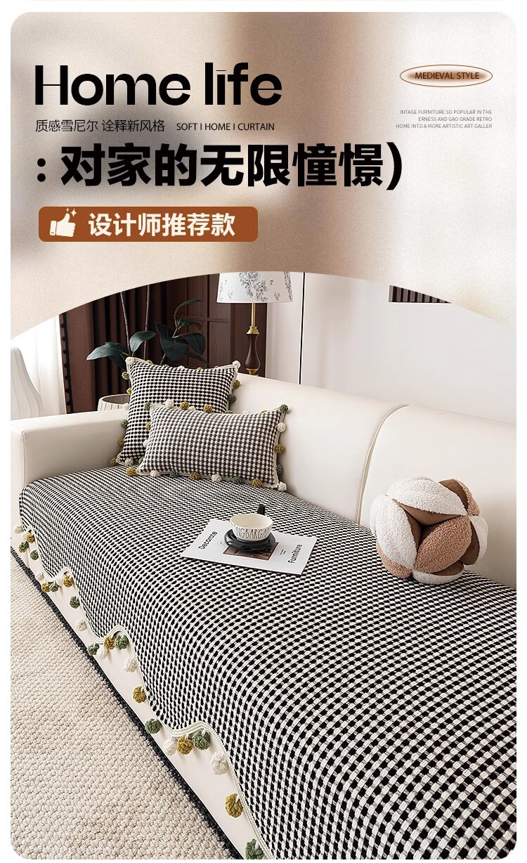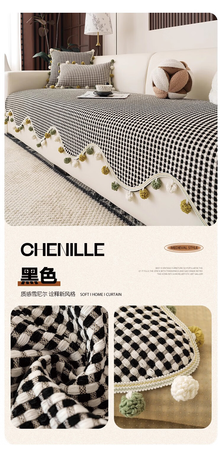 金拾美月复古雪尼尔沙发垫四季通用2026新款高级感固定防滑直排坐垫盖巾 异形素雅-黑色 70cm*70cm