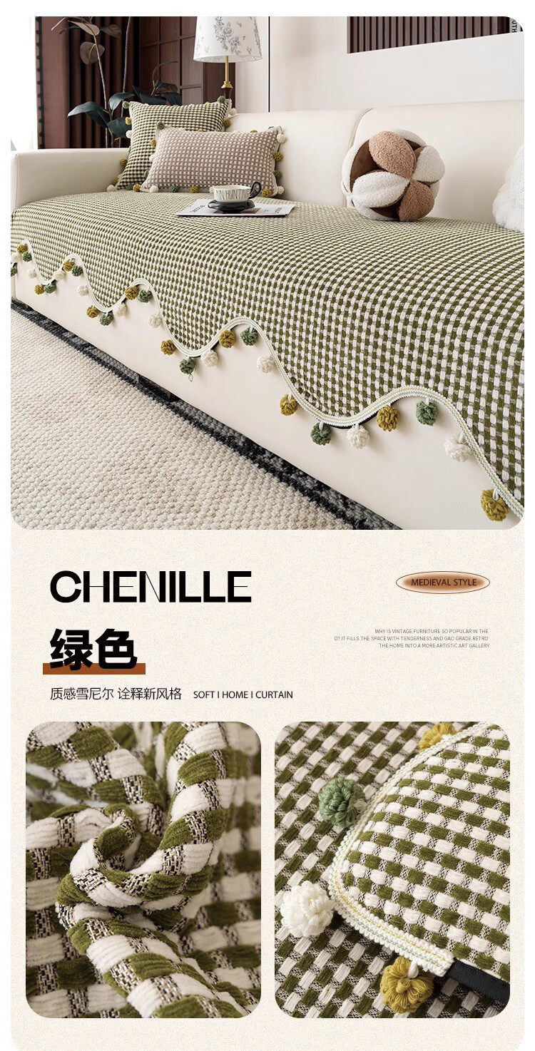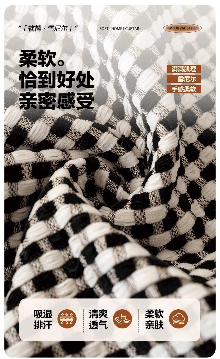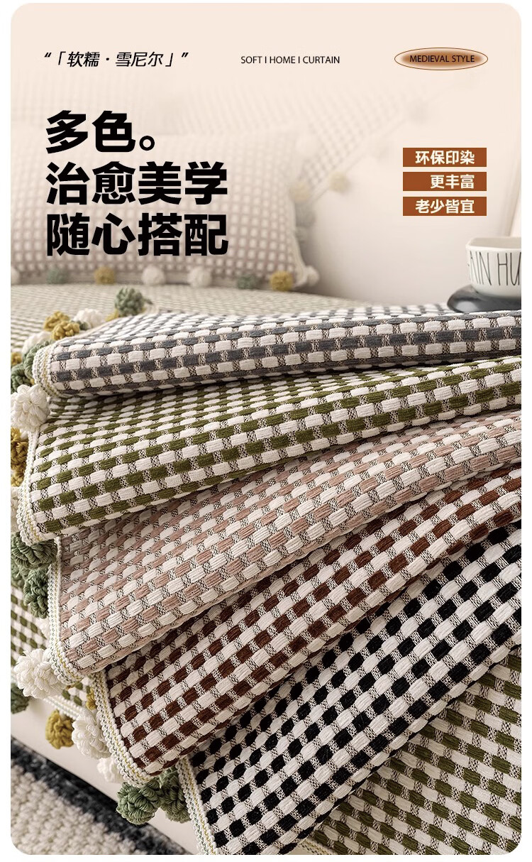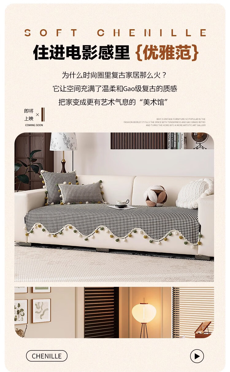 金拾美月复古雪尼尔沙发垫四季通用2026新款高级感固定防滑直排坐垫盖巾 异形素雅-黑色 70cm*70cm