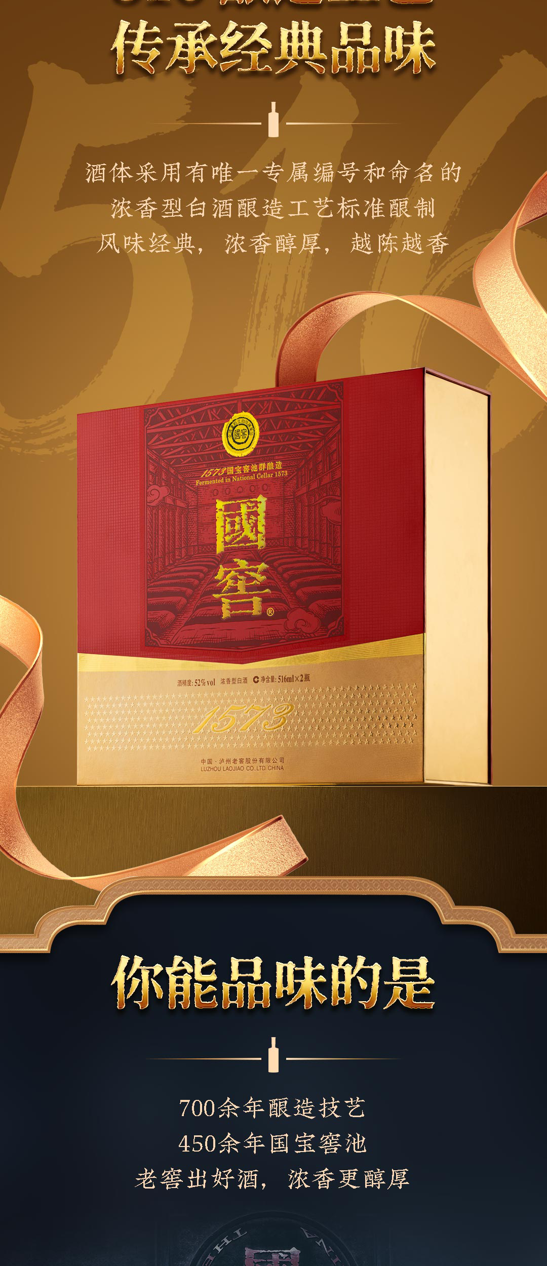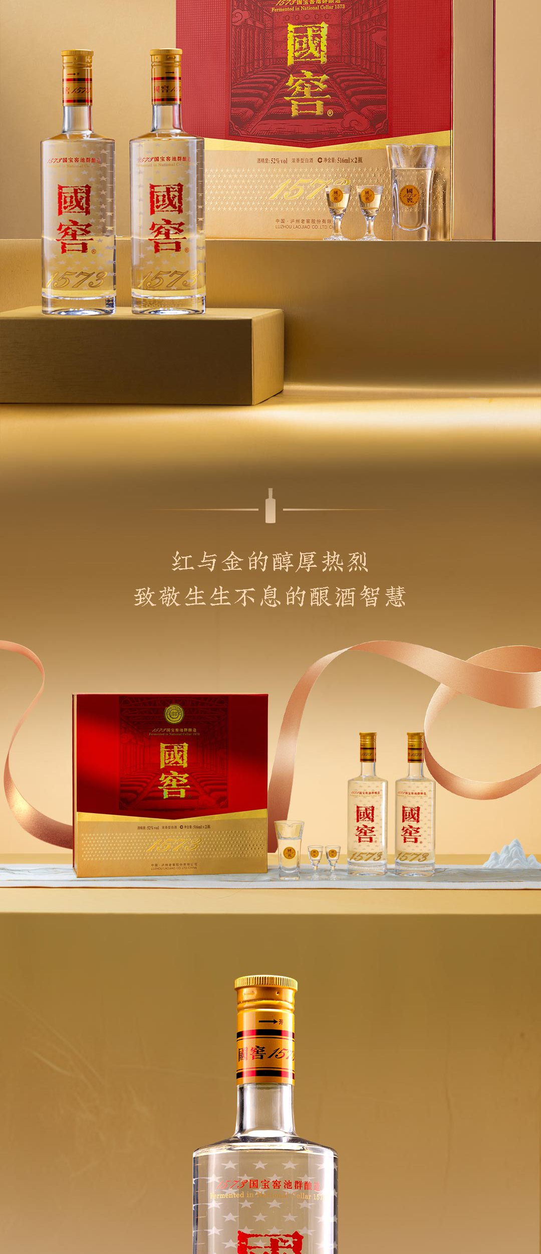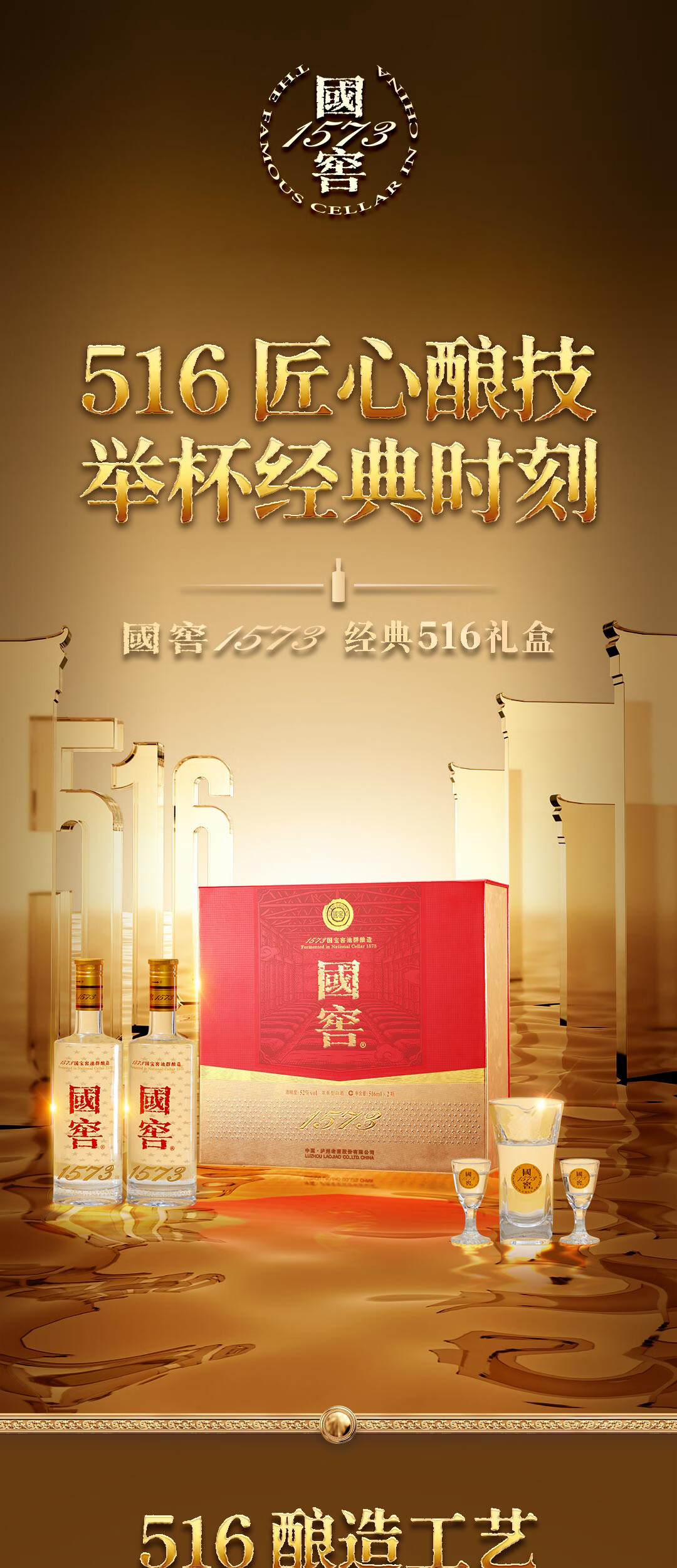 泸州老窖国窖1573 经典516礼盒 浓香型白酒 52度 516ml*2瓶*3盒 整箱装