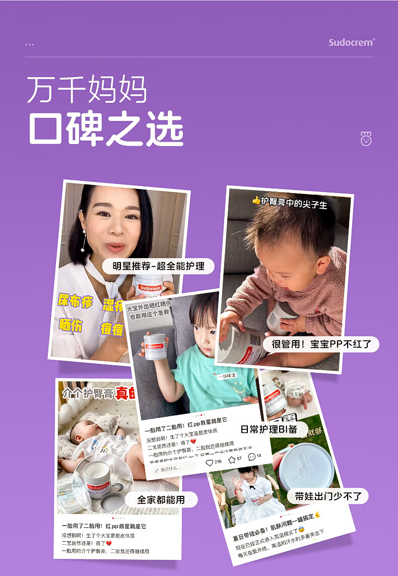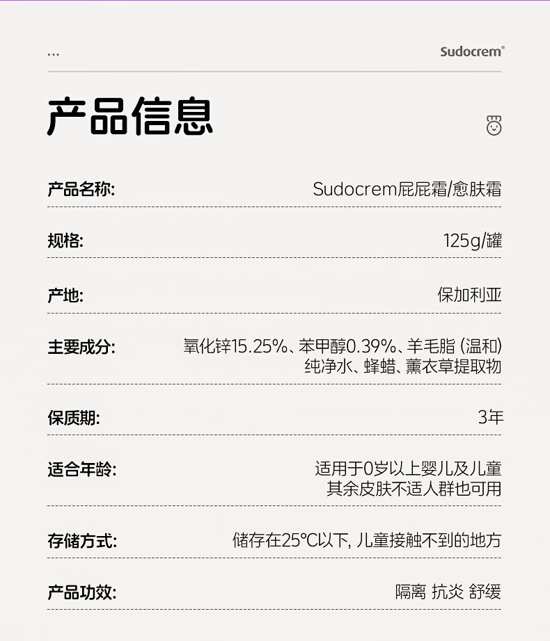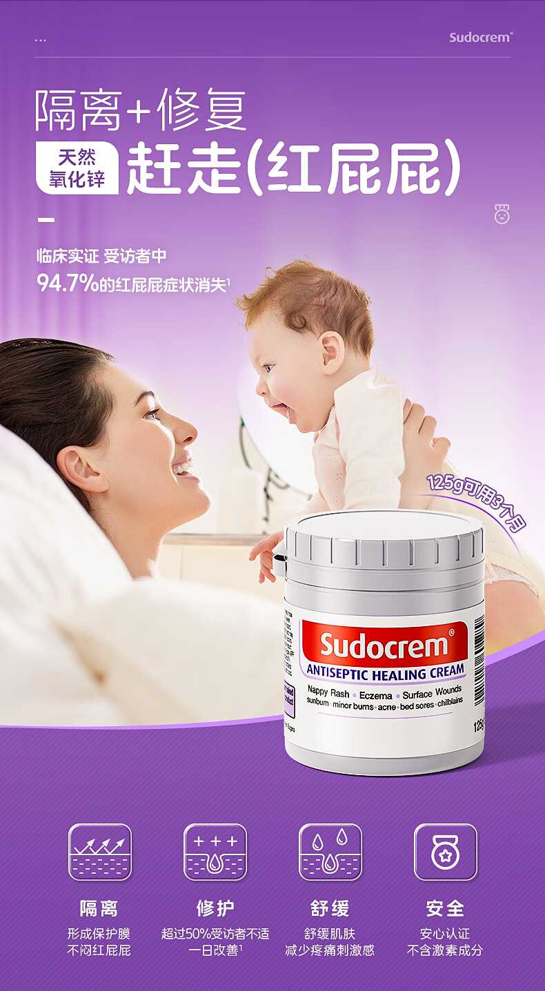 Sudocrem婴幼儿屁屁霜125g/罐屁屁乐PP霜护臀膏去黑头