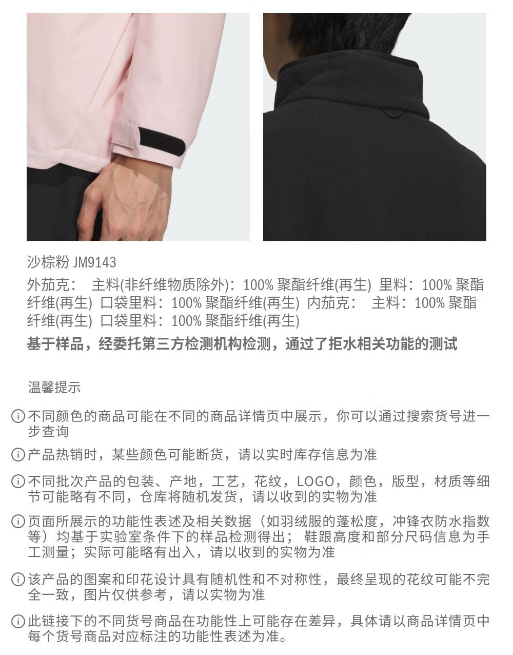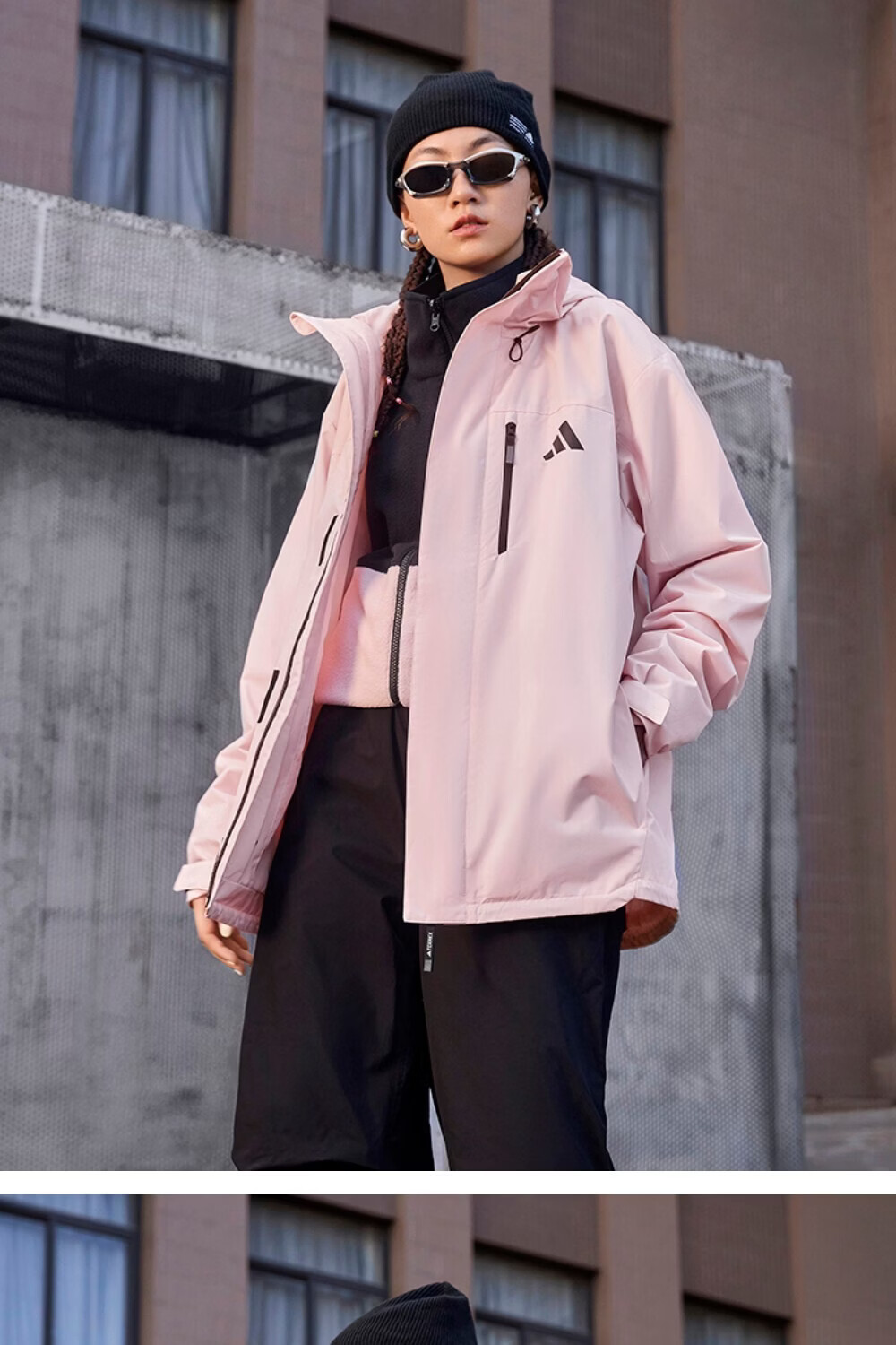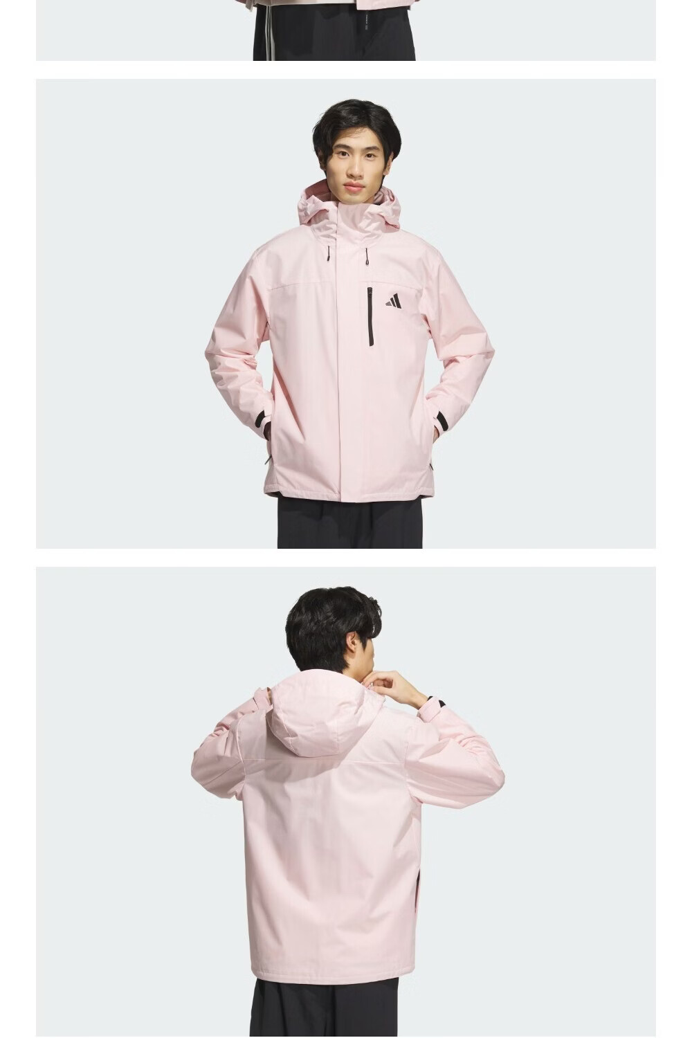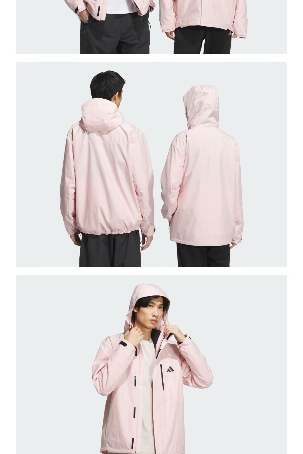 adidas拒水加绒内胆三合一连帽外套男女秋冬阿迪达斯官方轻运动 黑色 XL