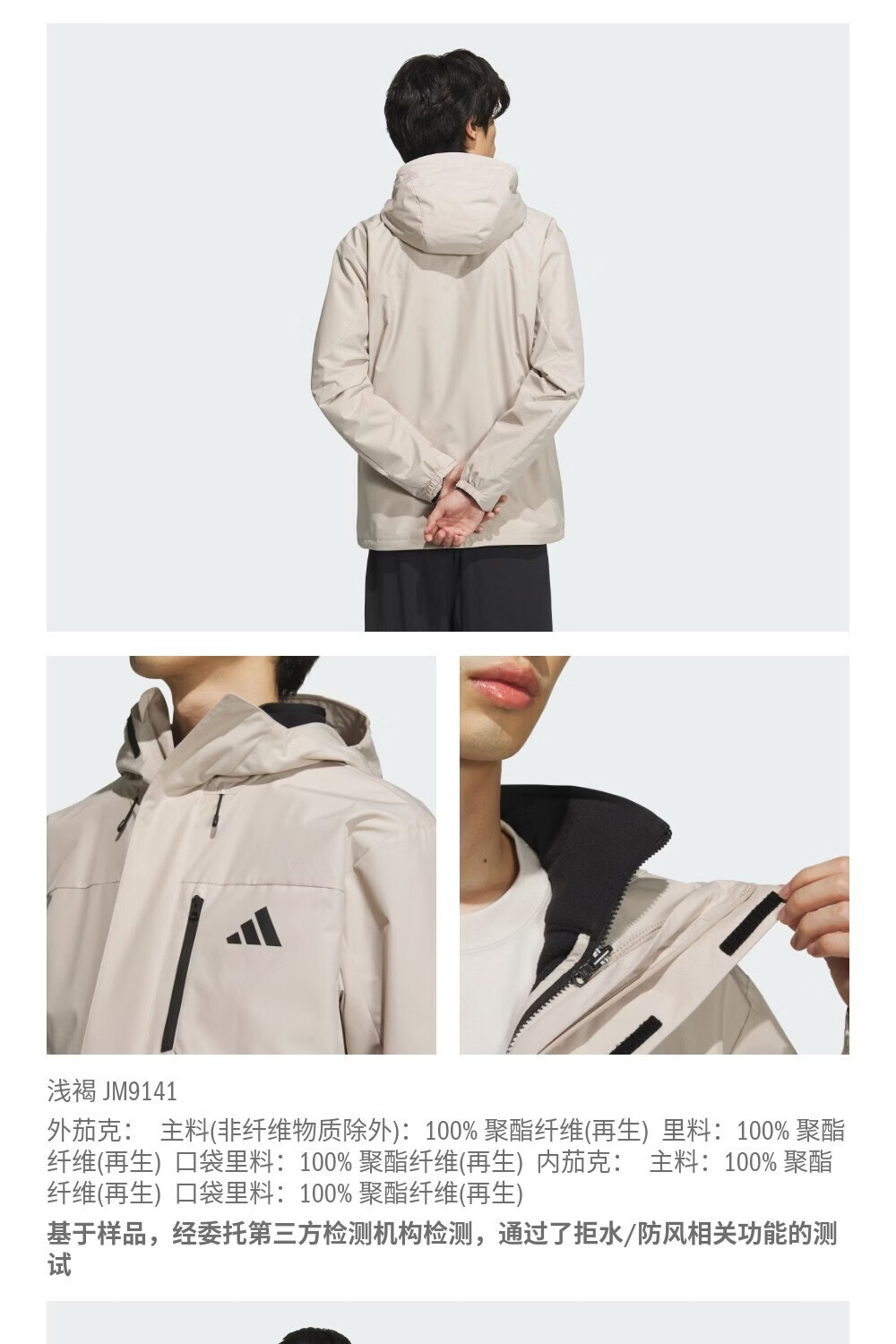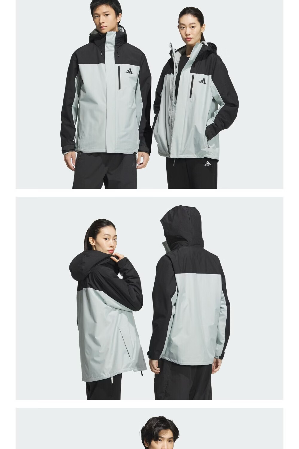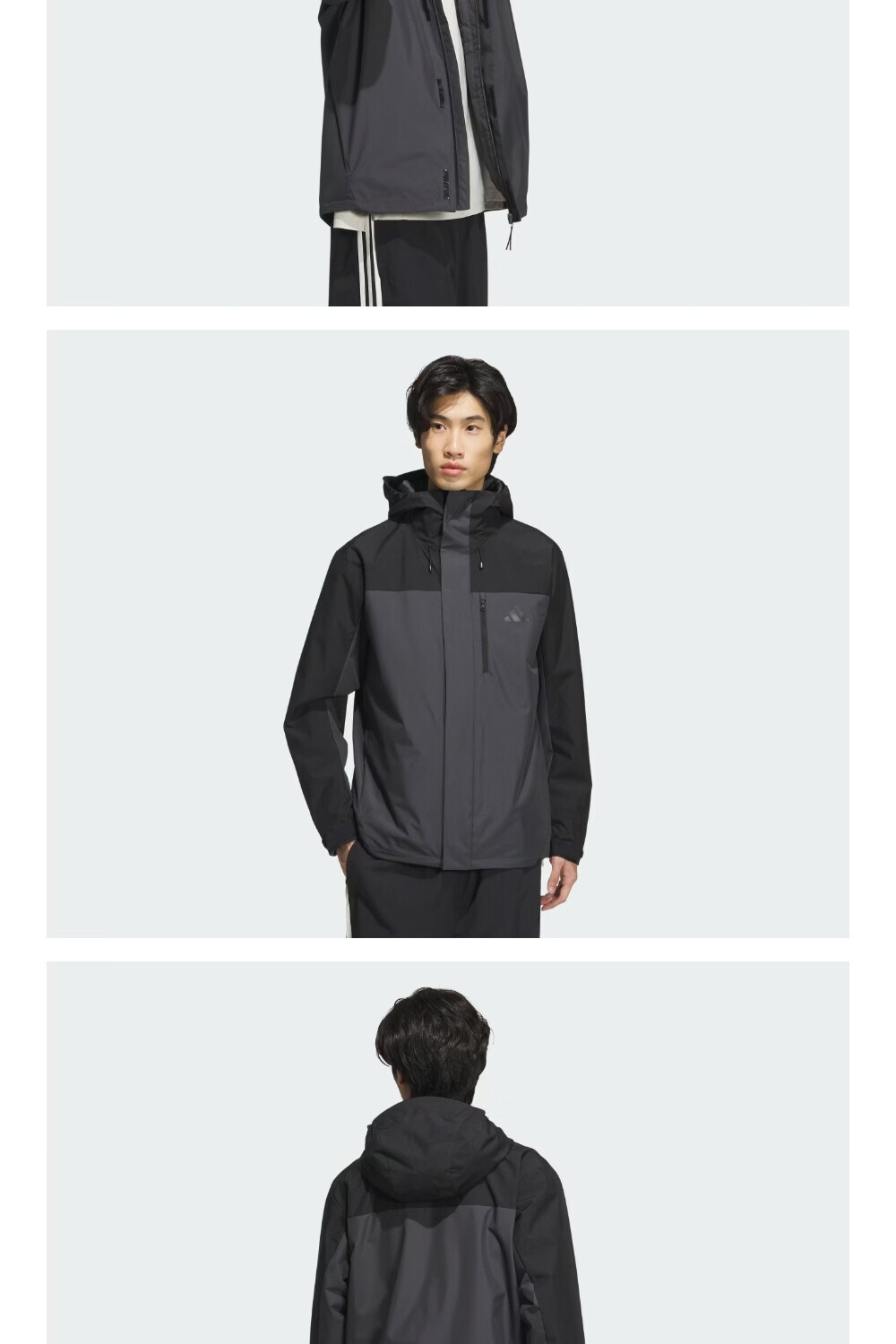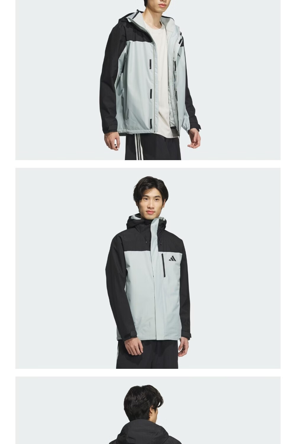 adidas拒水加绒内胆三合一连帽外套男女秋冬阿迪达斯官方轻运动 固态深灰 XL