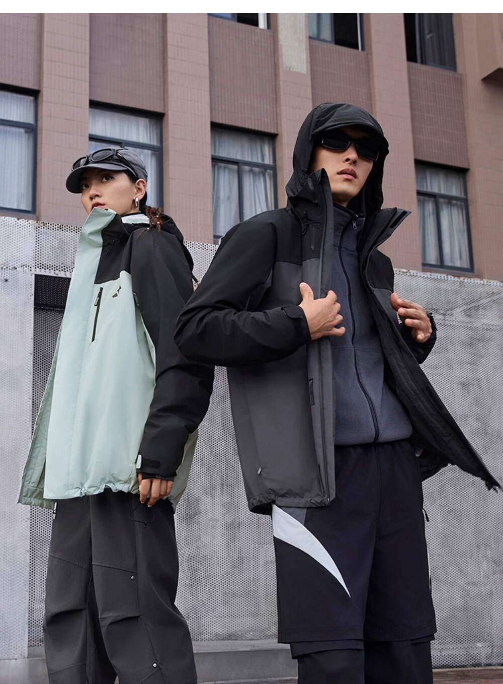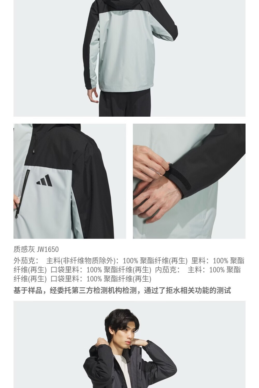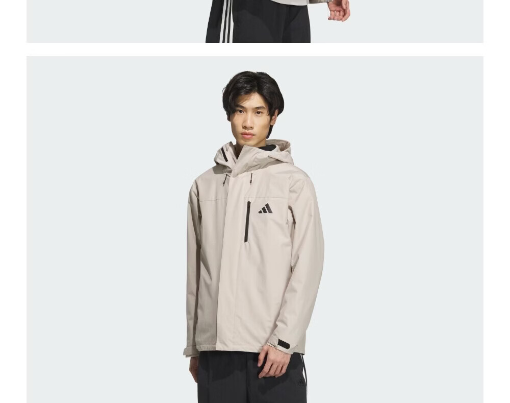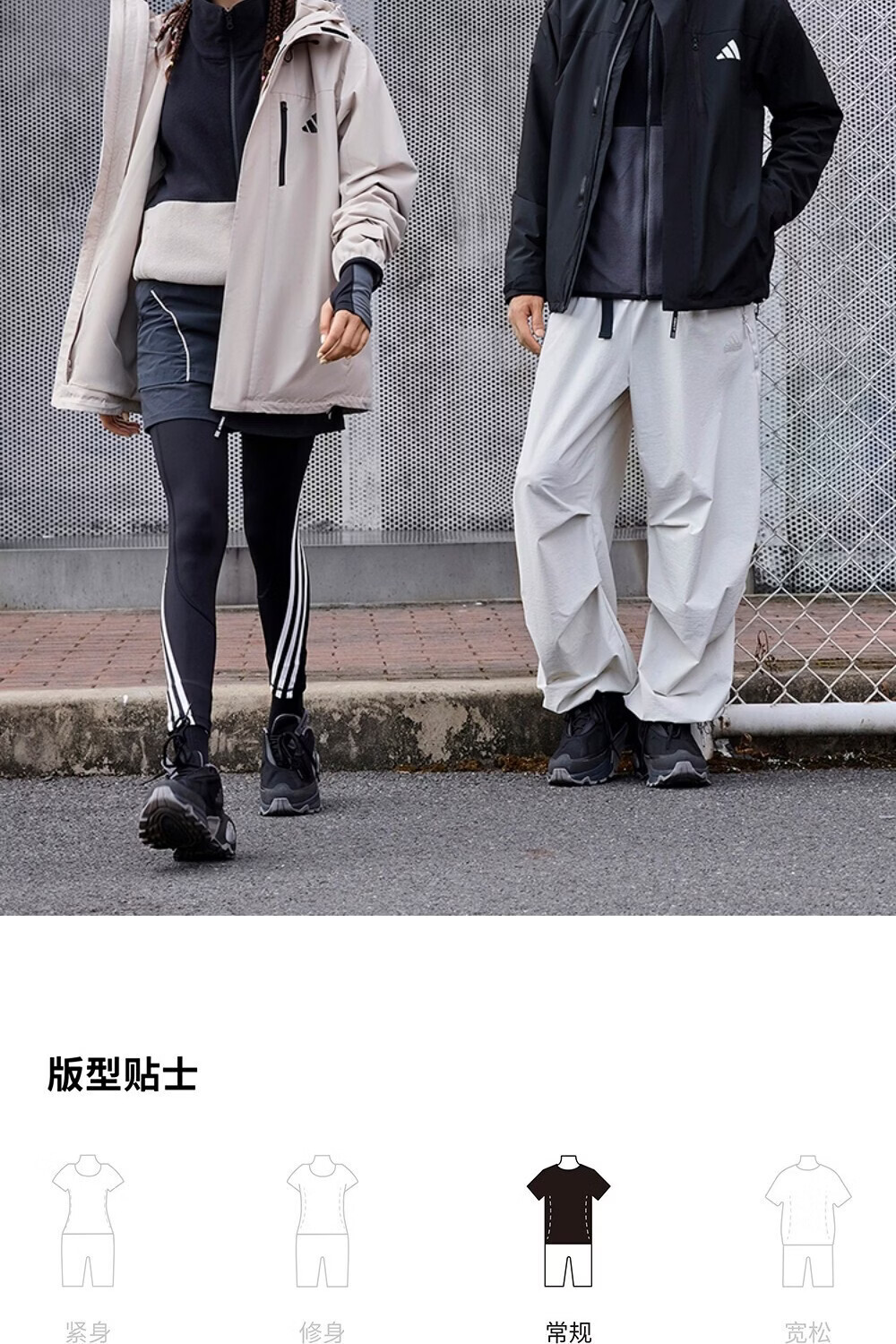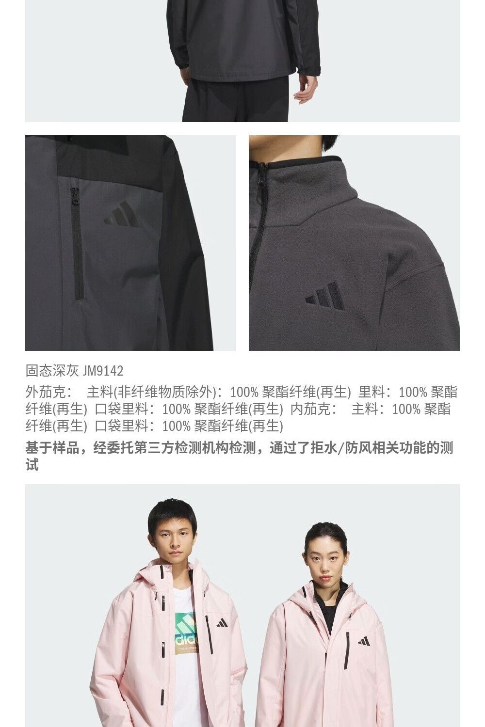 adidas拒水加绒内胆三合一连帽外套男女秋冬阿迪达斯官方轻运动 固态深灰 XL