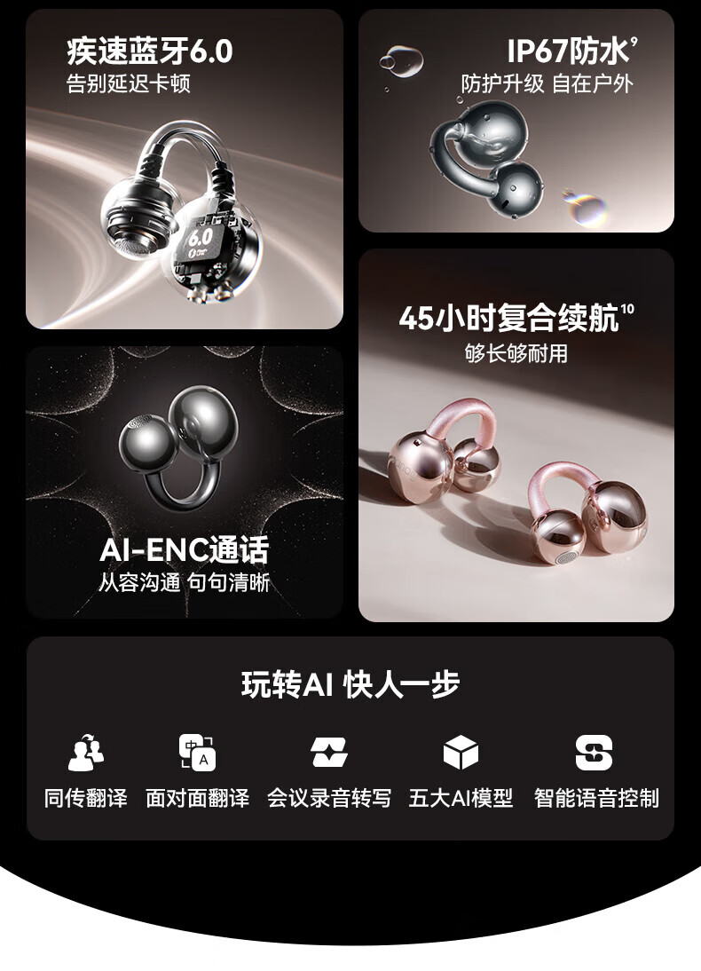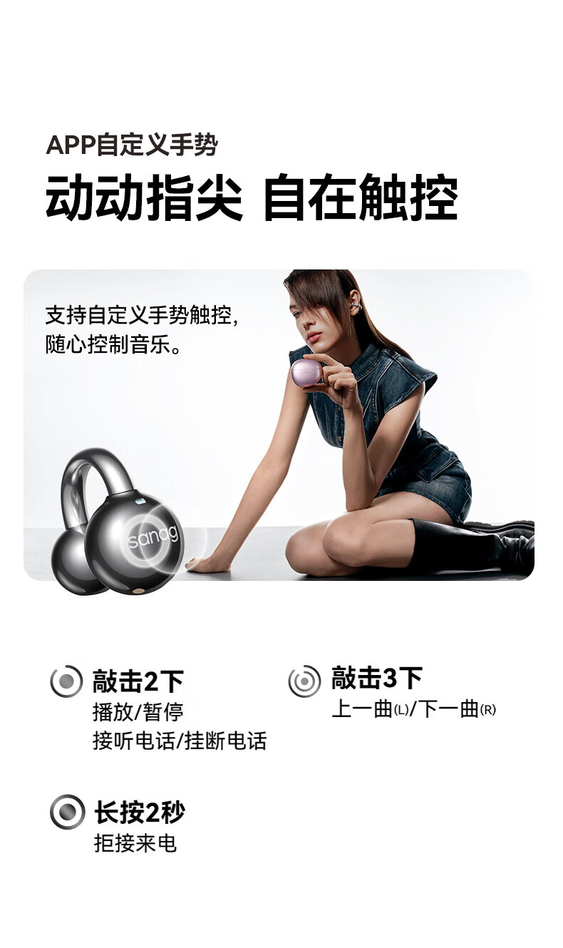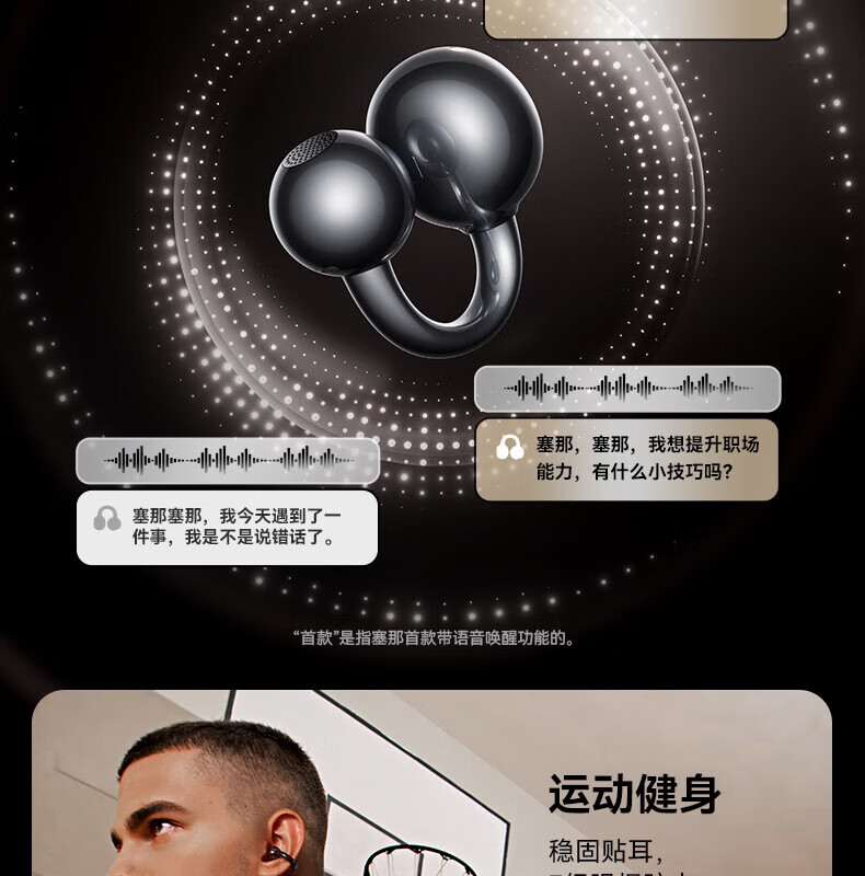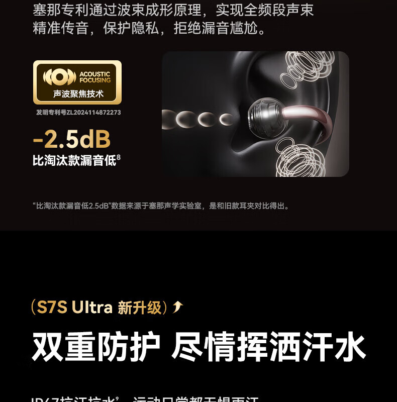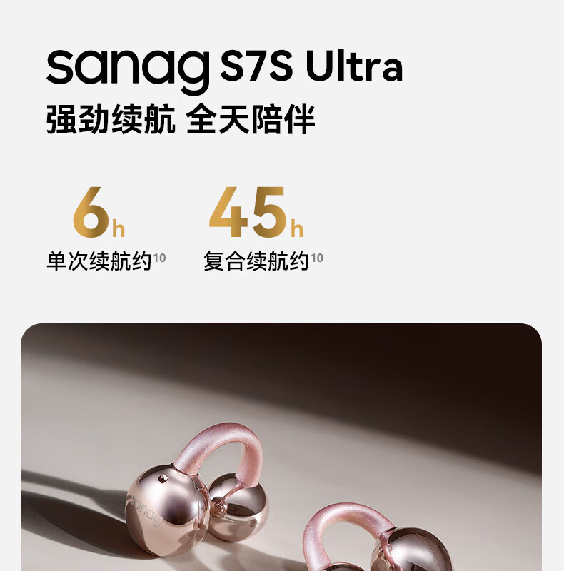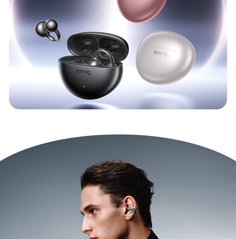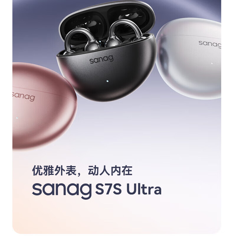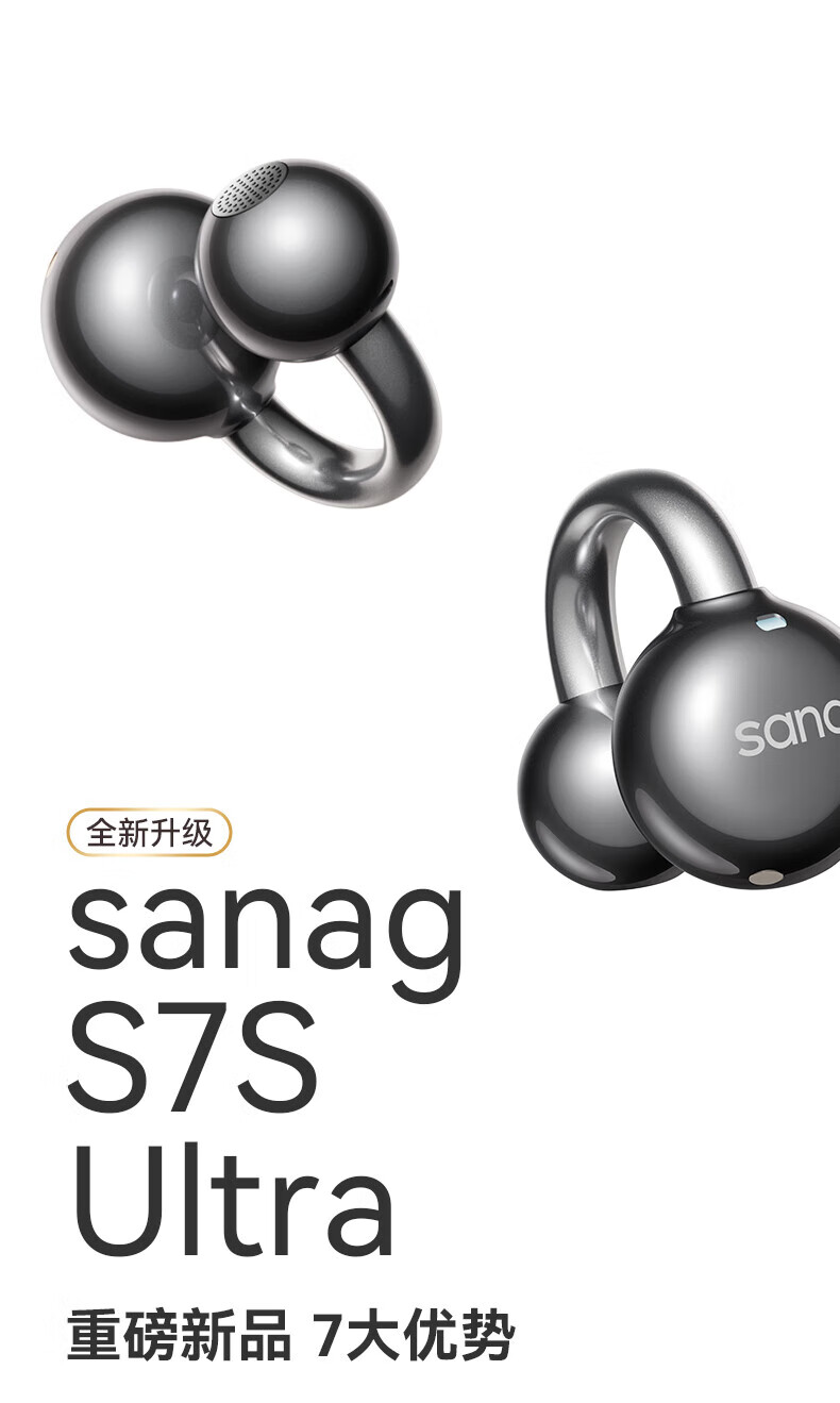 SANAG塞那S7SUltra 耳机耳夹式蓝牙耳机骨传导概念开放式不入耳运动跑步通话降噪适用小米苹果华为 幽雾黑