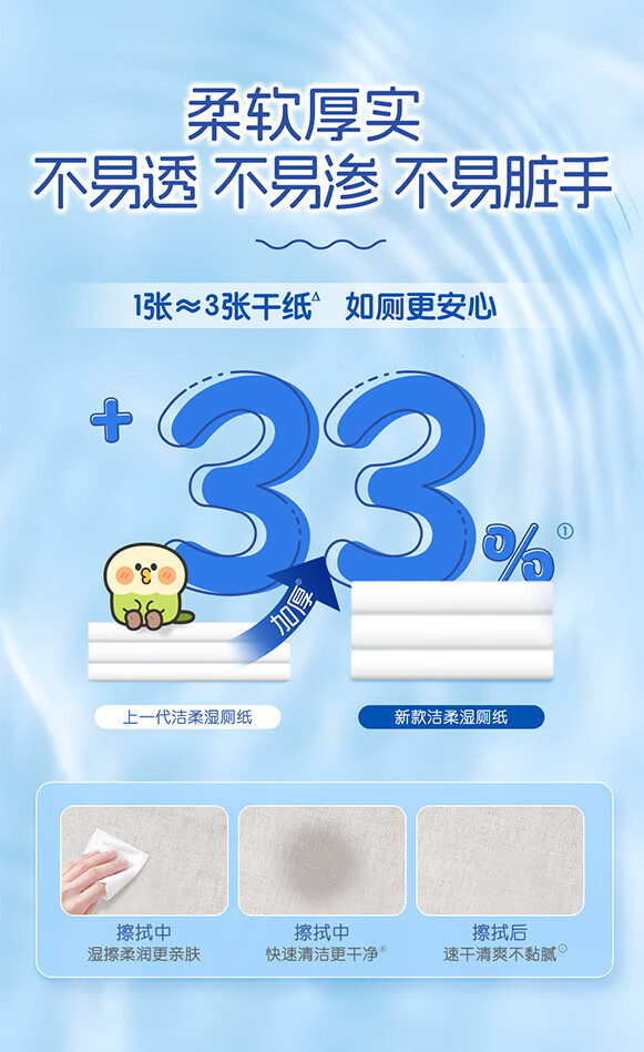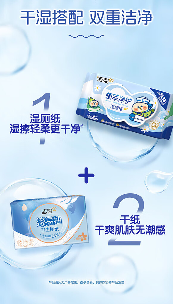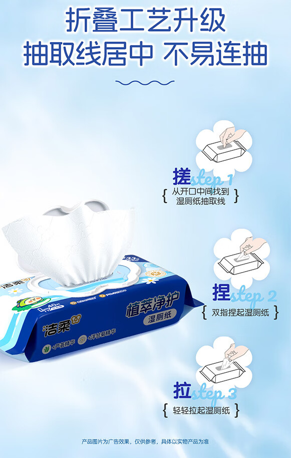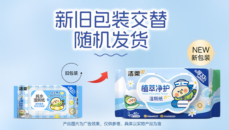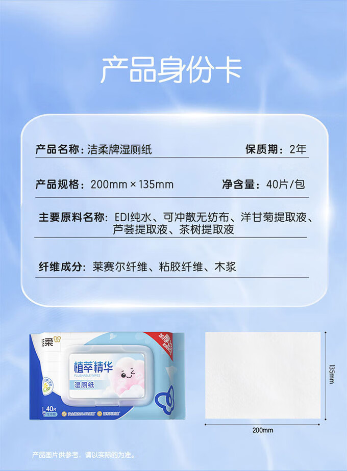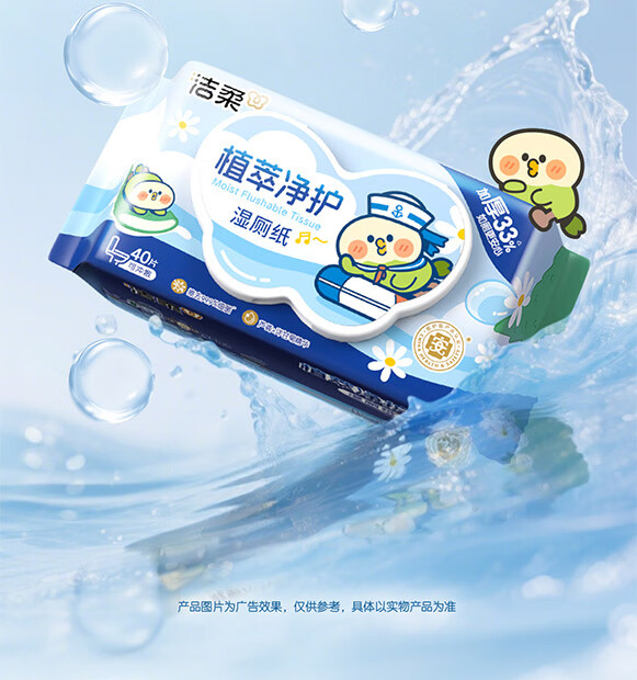 洁柔湿厕纸 加厚耐用清洁湿纸巾 易分解可冲马桶便携卫生 40抽*1包 【植萃系列】