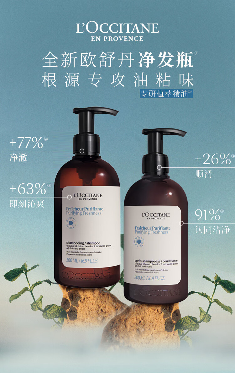 欧舒丹草本平衡洗发水500ml+护发素250ml蓬松控油生日礼物三八节女神