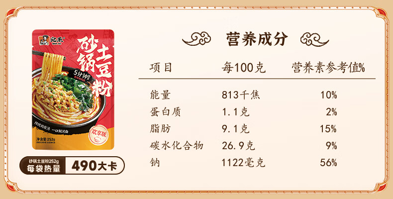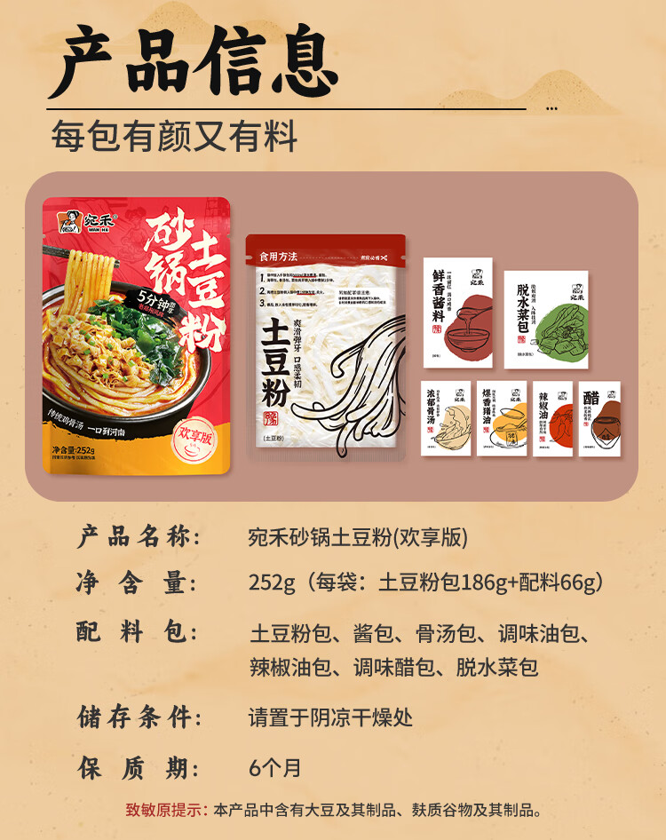 宛禾砂锅土豆粉速食食品米粉米线懒人夜宵速食带料包欢享款 252g*5袋