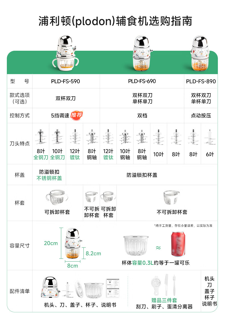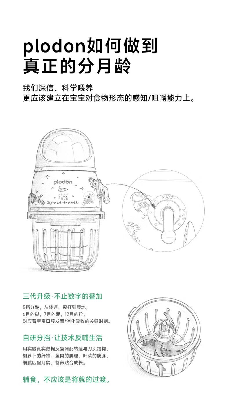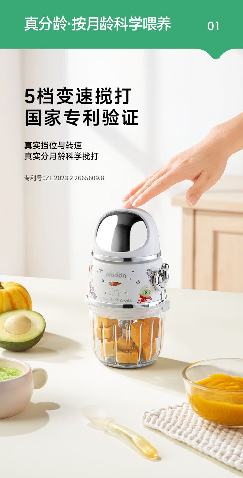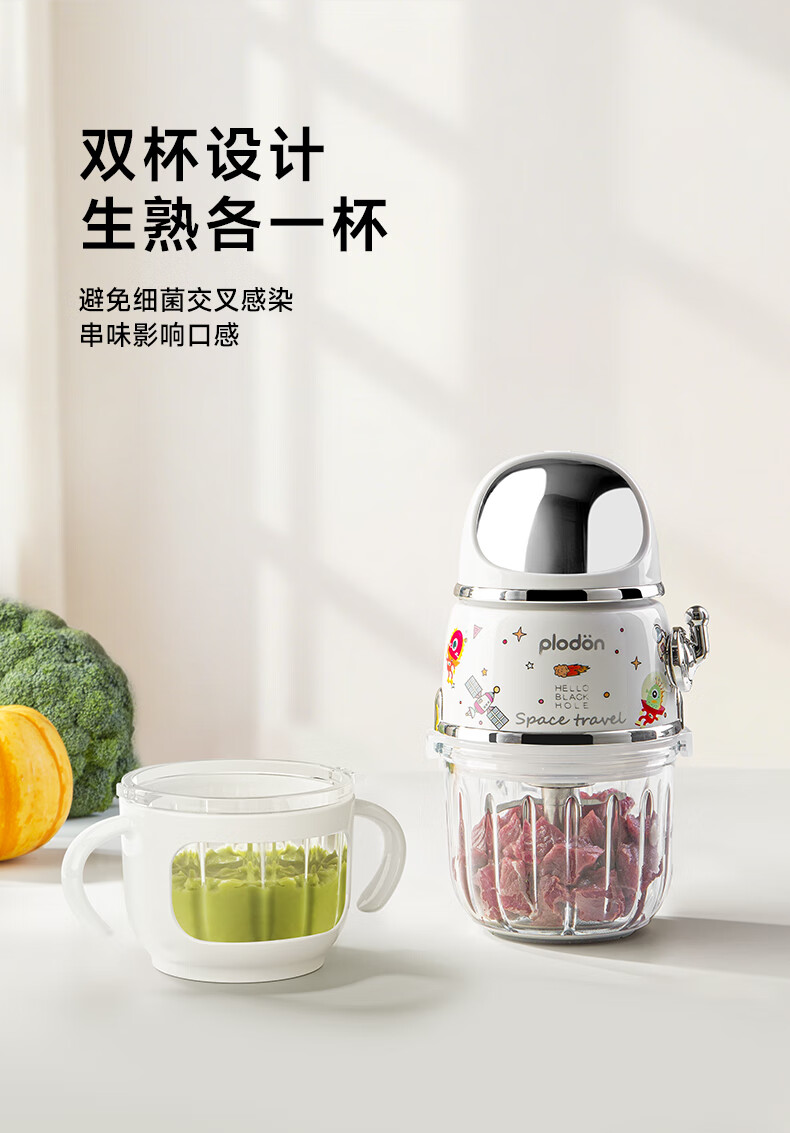 浦利顿(PLODON)辅食料理机 婴儿打泥机宝宝辅食工具多档 双杯316钢盖全钢轴10刀