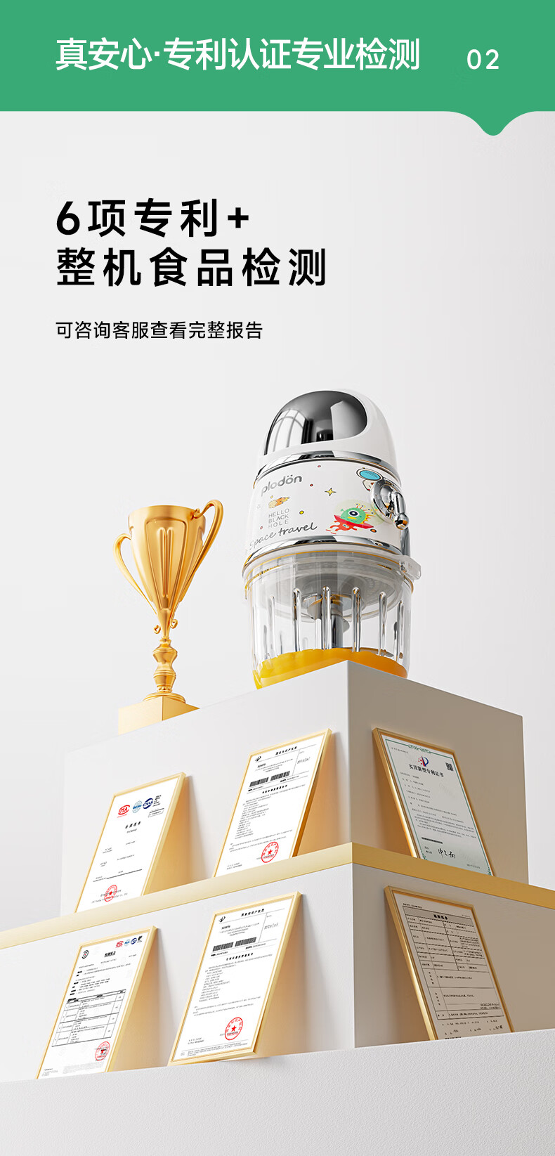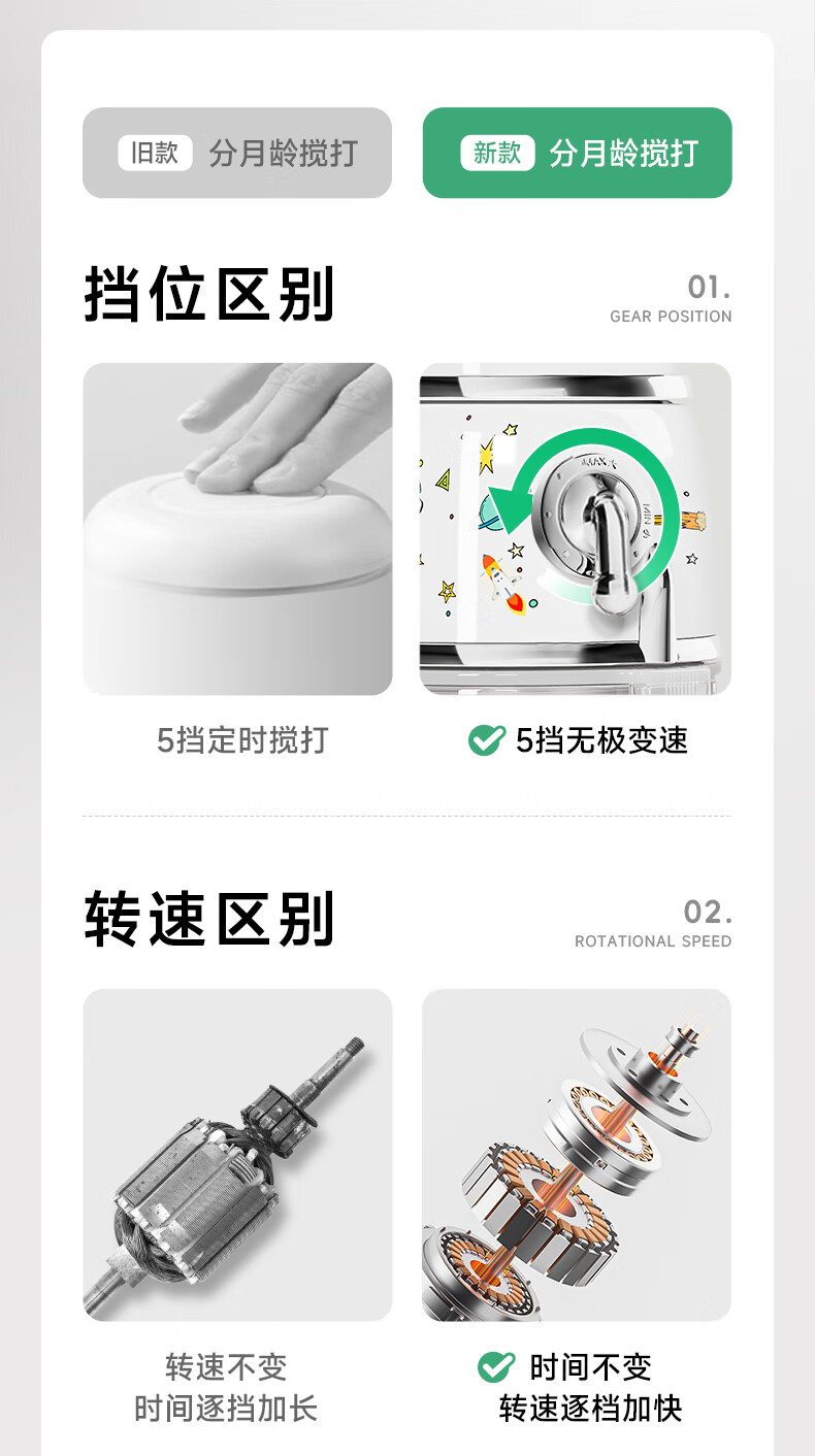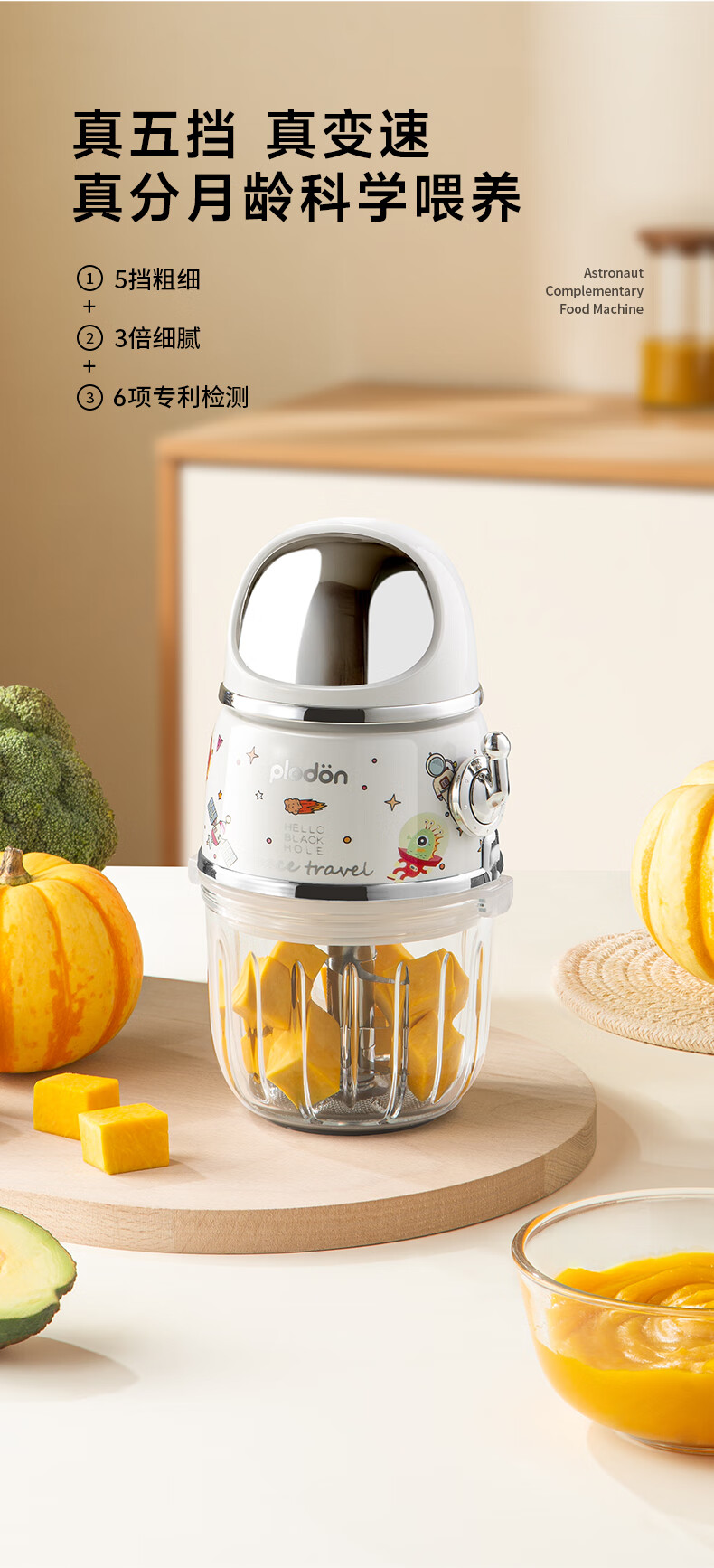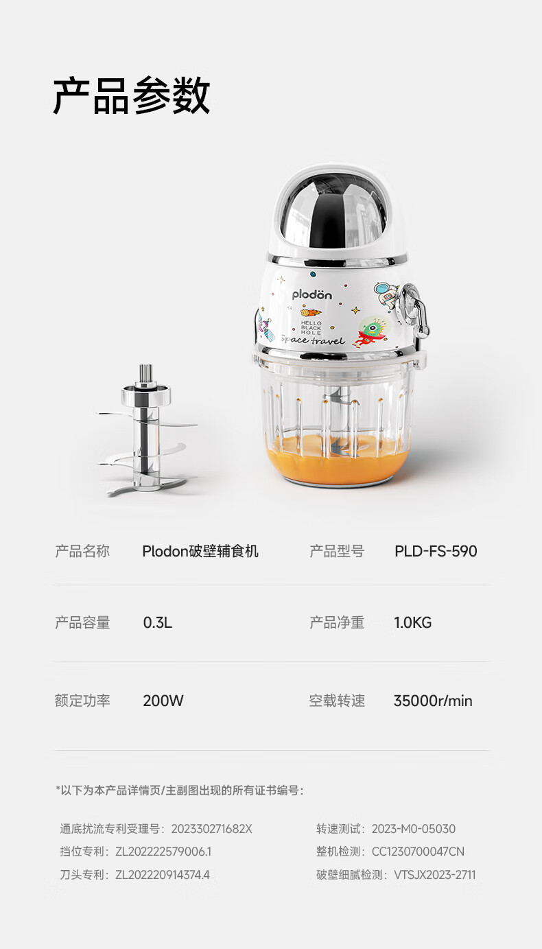 浦利顿(PLODON)辅食料理机 婴儿打泥机宝宝辅食工具多档 双杯316钢盖全钢轴10刀