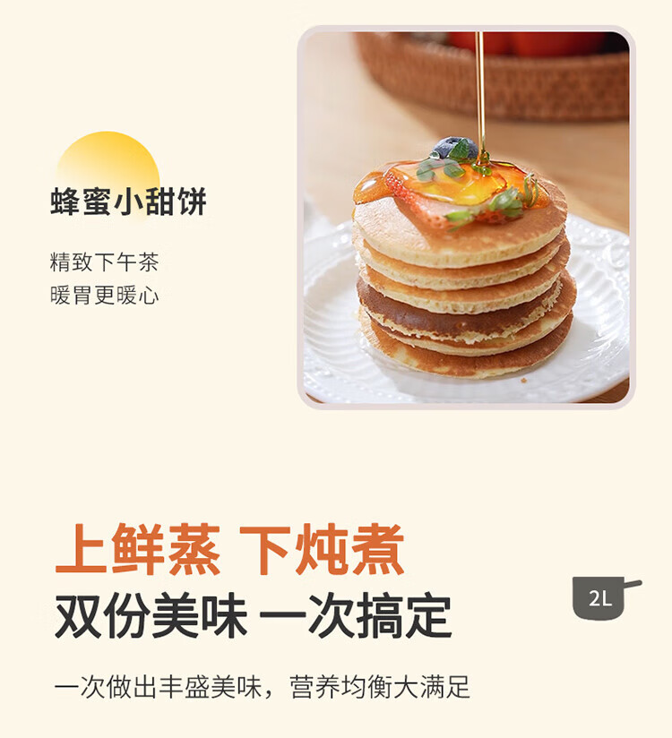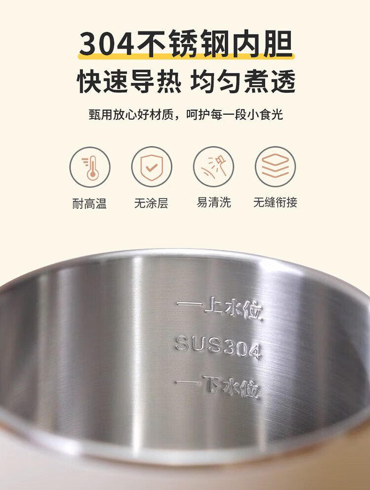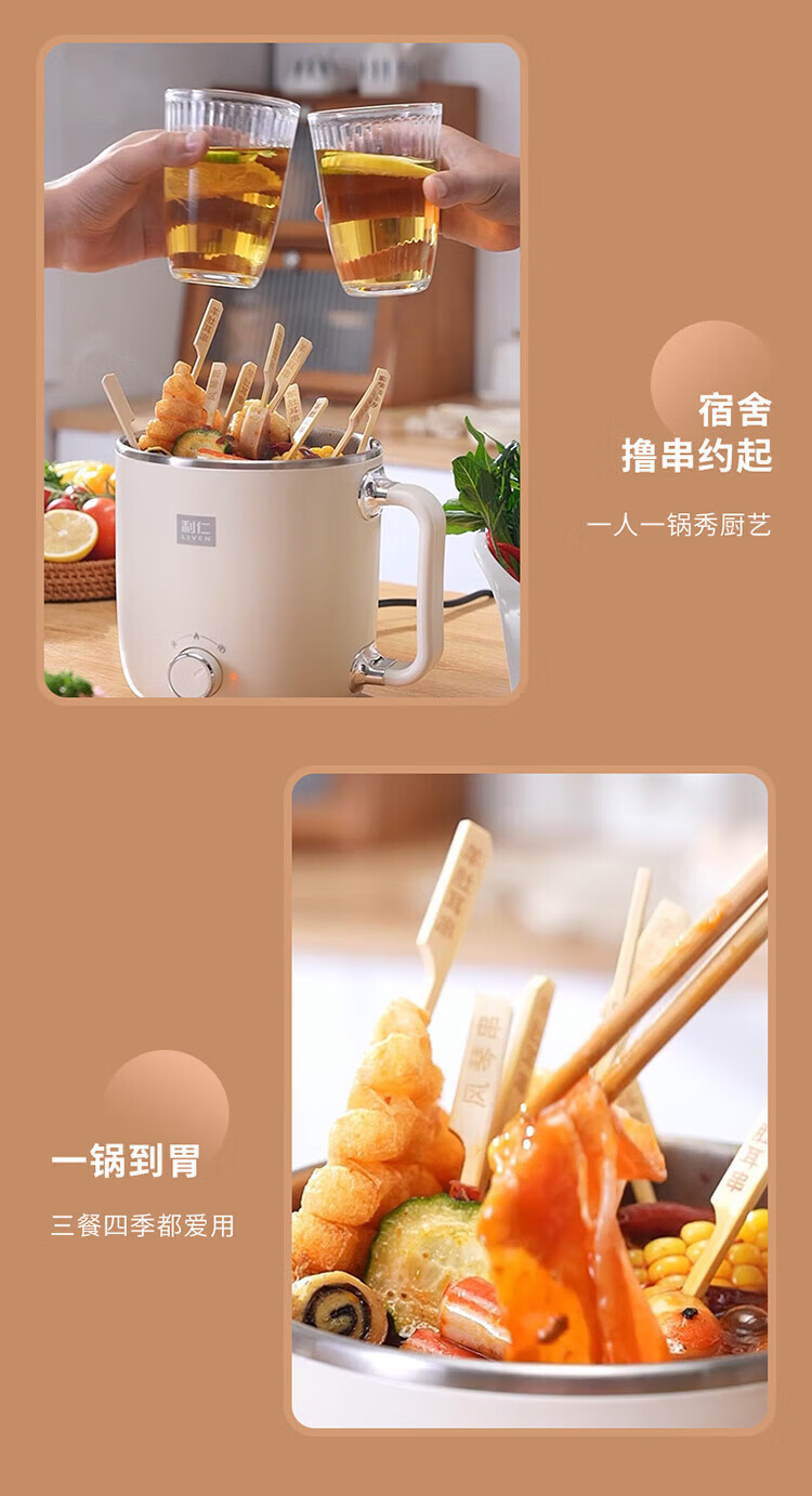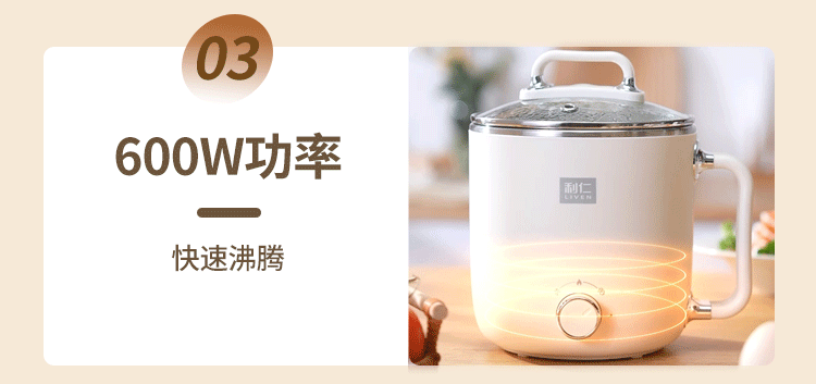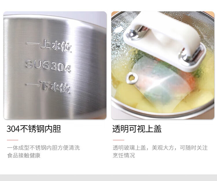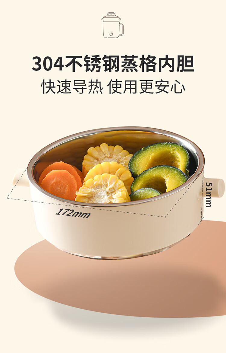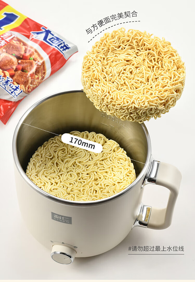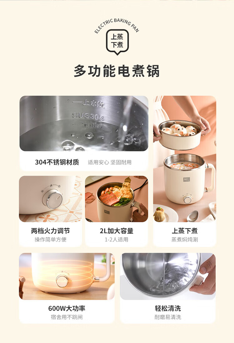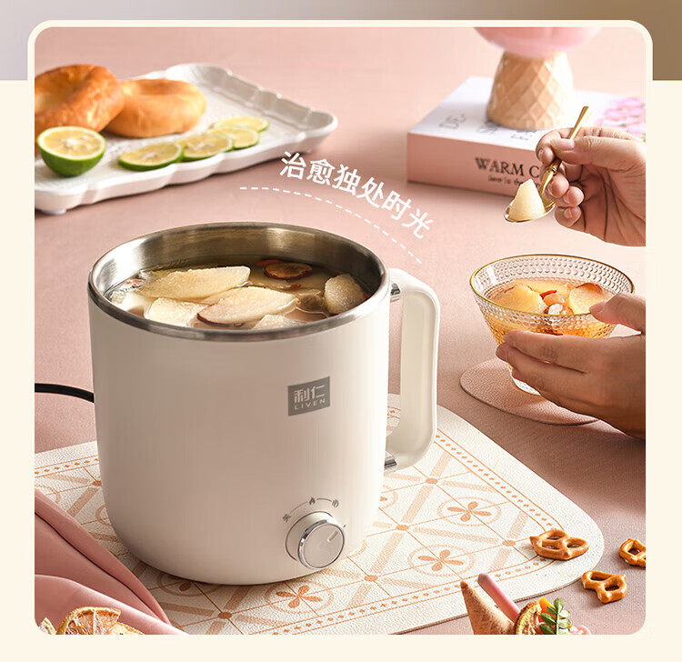利仁(Liven)电煮锅电热锅304不锈钢0涂层内胆宿舍小电锅电蒸锅学生一体泡面锅多功能小火锅2升带蒸屉DHG-B205