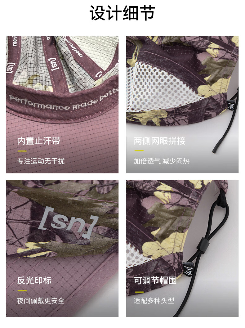 SN【春夏新品】户外速干越野帽男女轻量凉感透气防晒棒球帽可调节 玫灰色 均码可调节