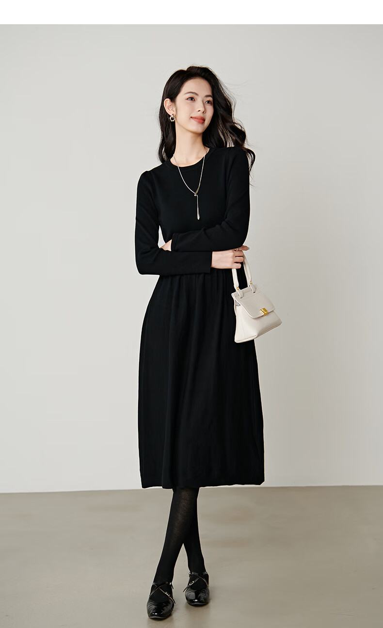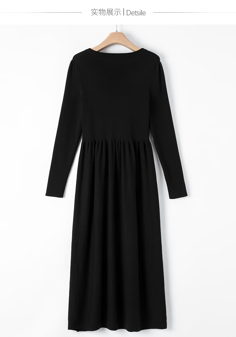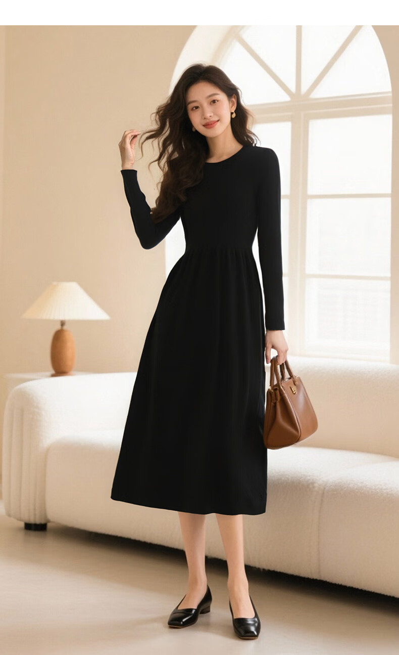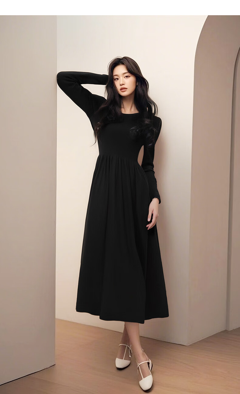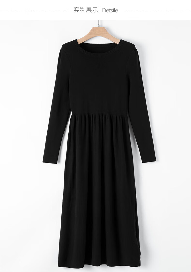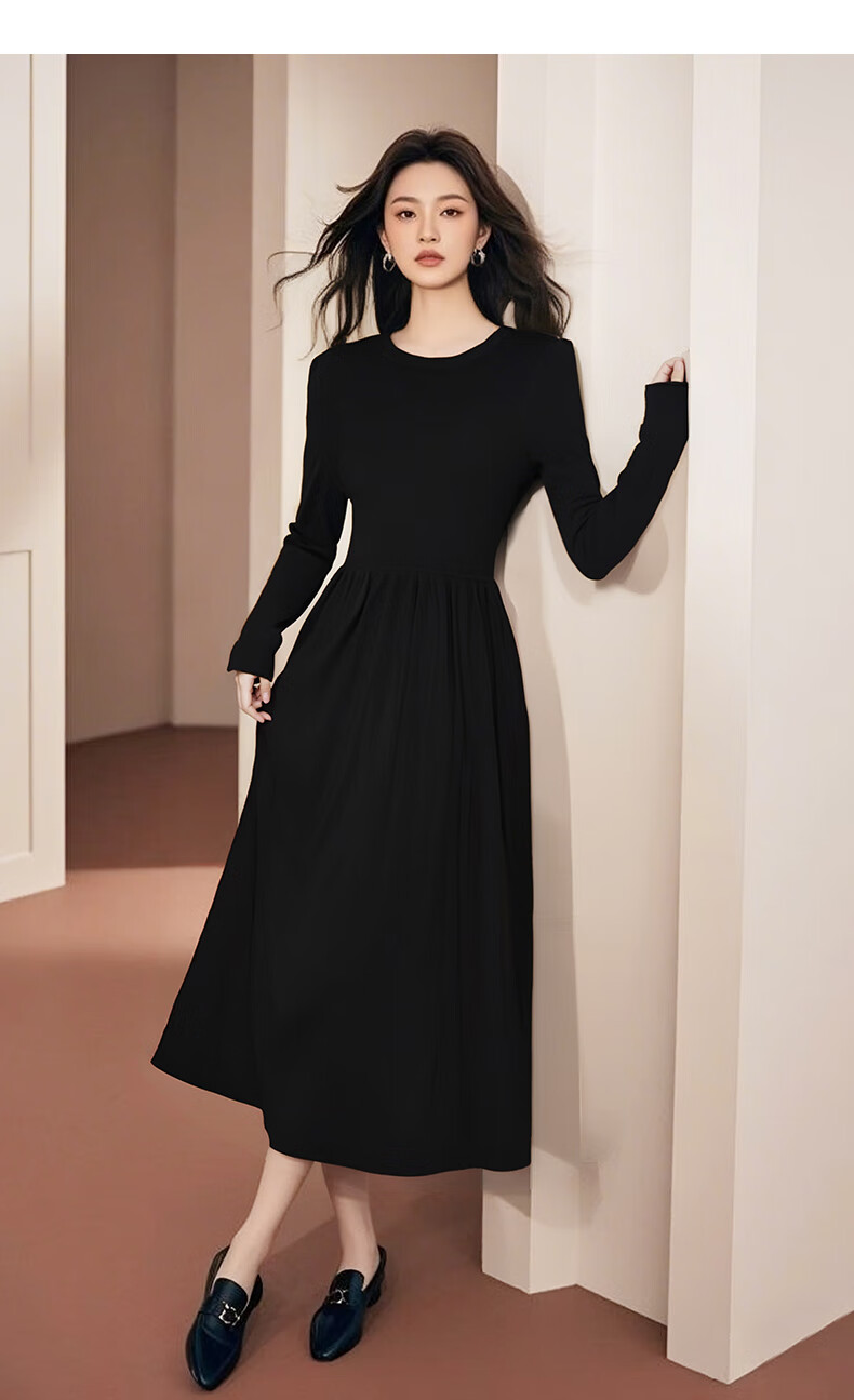 晚白【新品】纸片人长裙内搭可外穿2026春款气质百搭直筒棉针织连衣裙 黑色 S