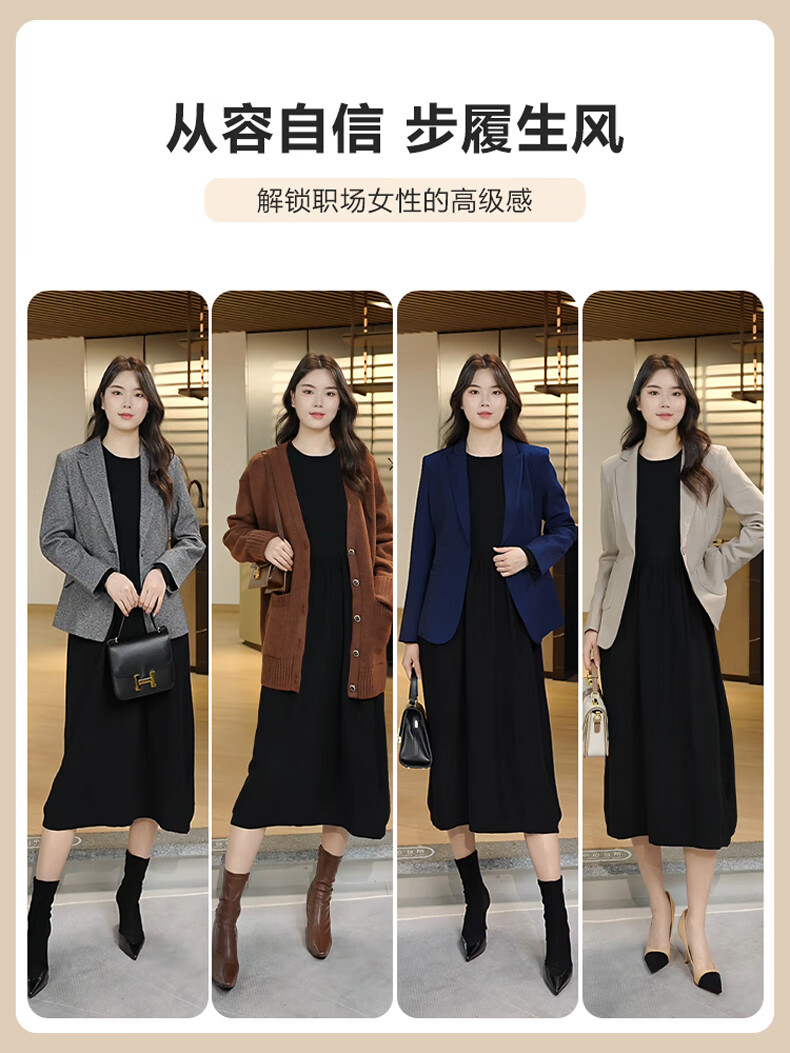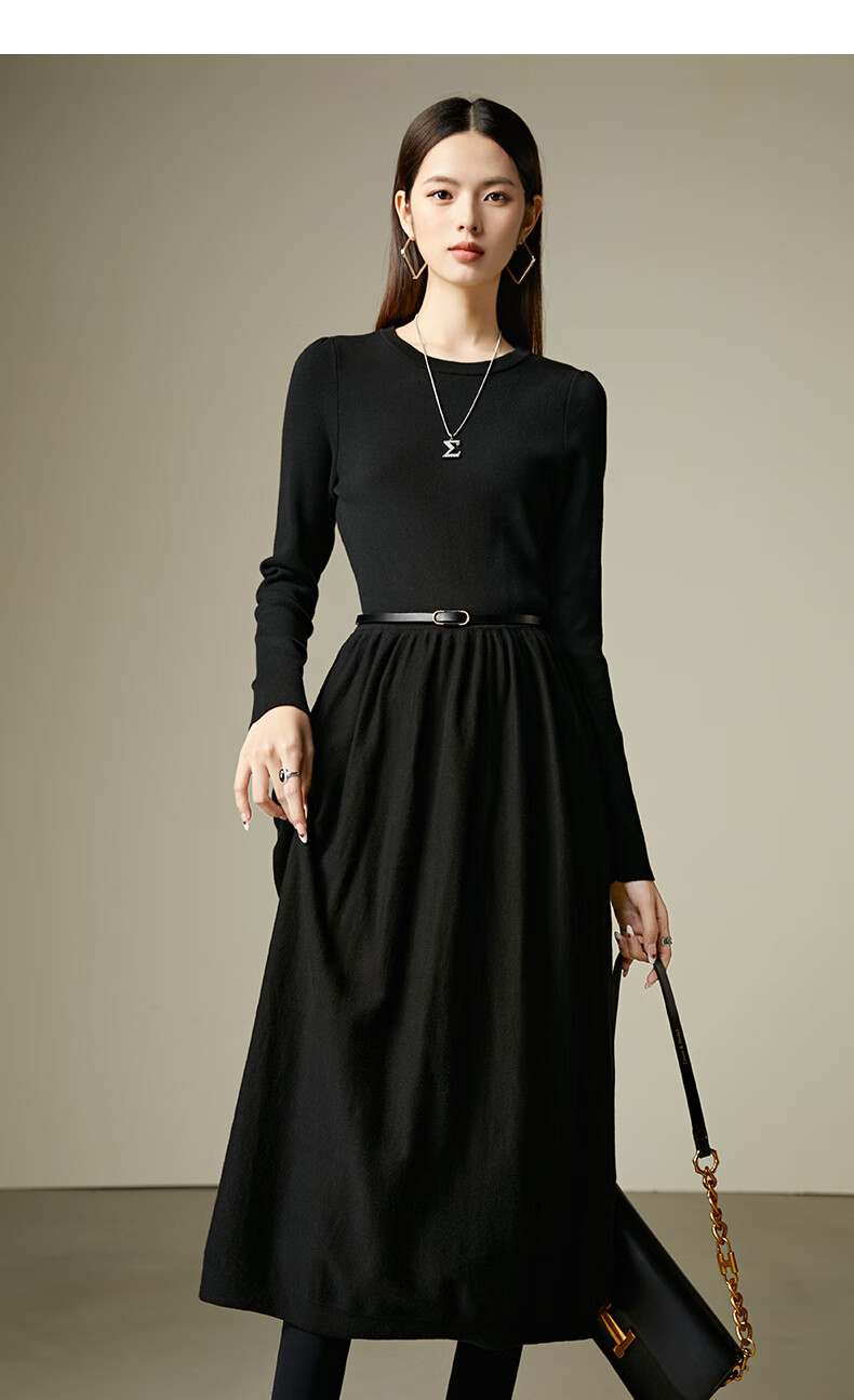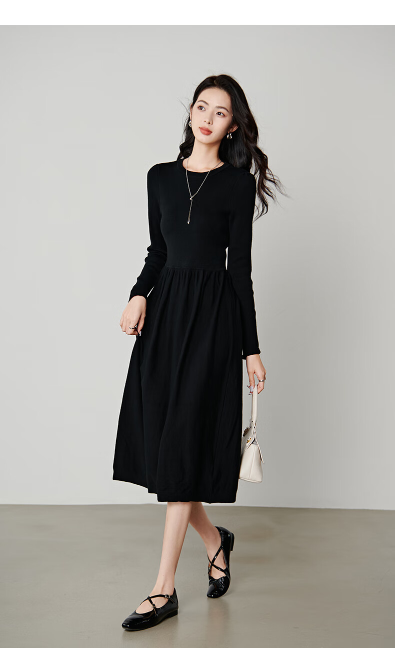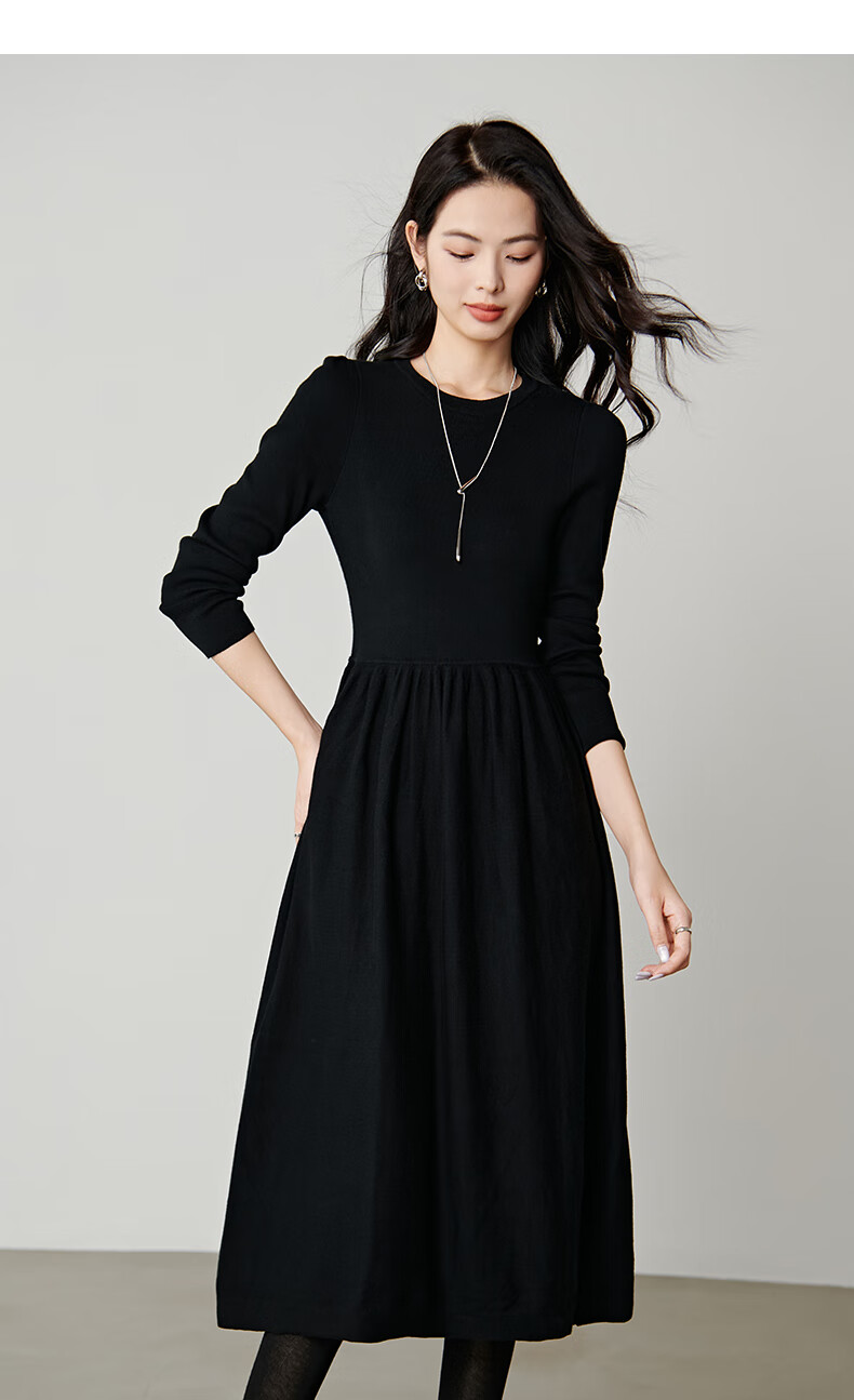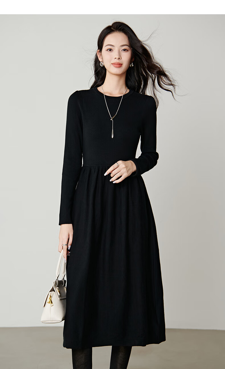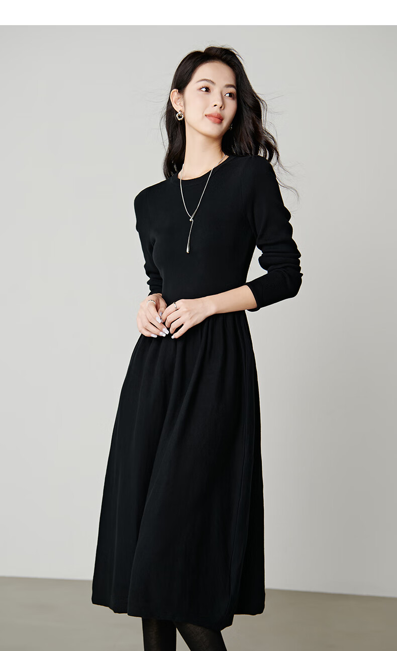 晚白【新品】纸片人长裙内搭可外穿2026春款气质百搭直筒棉针织连衣裙 黑色 S