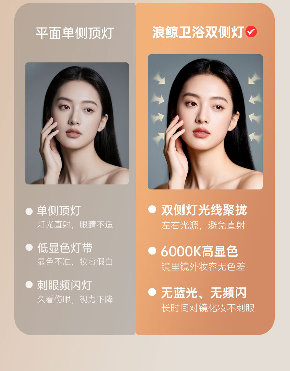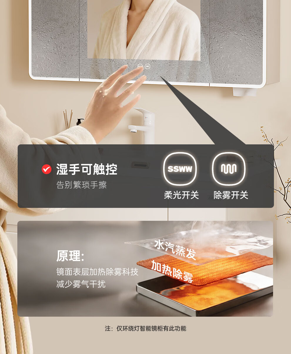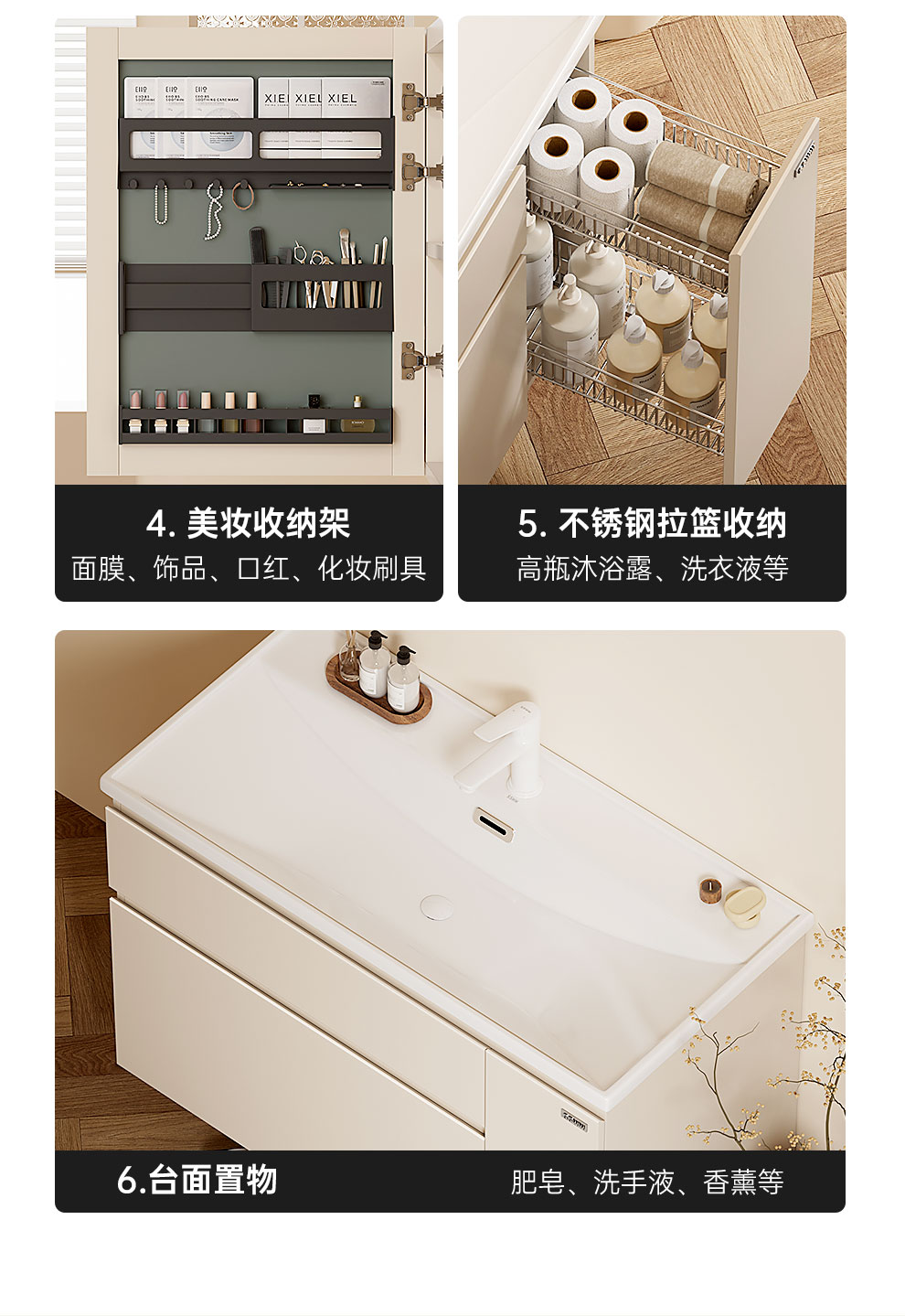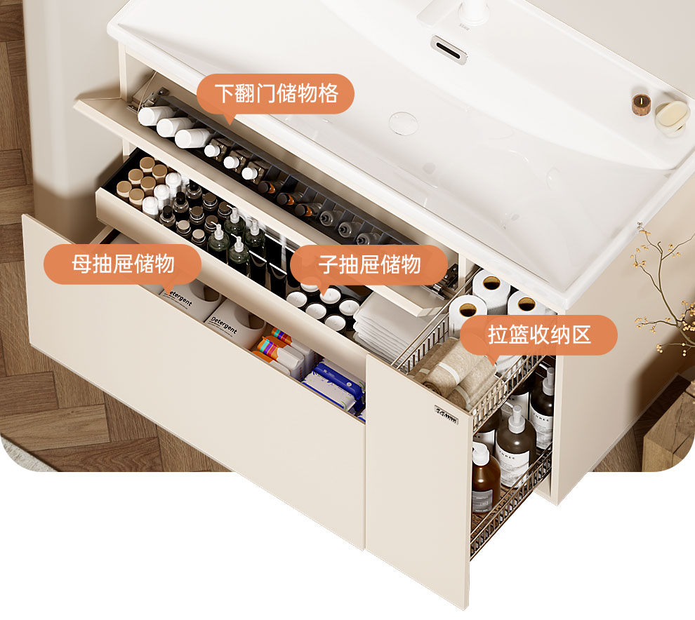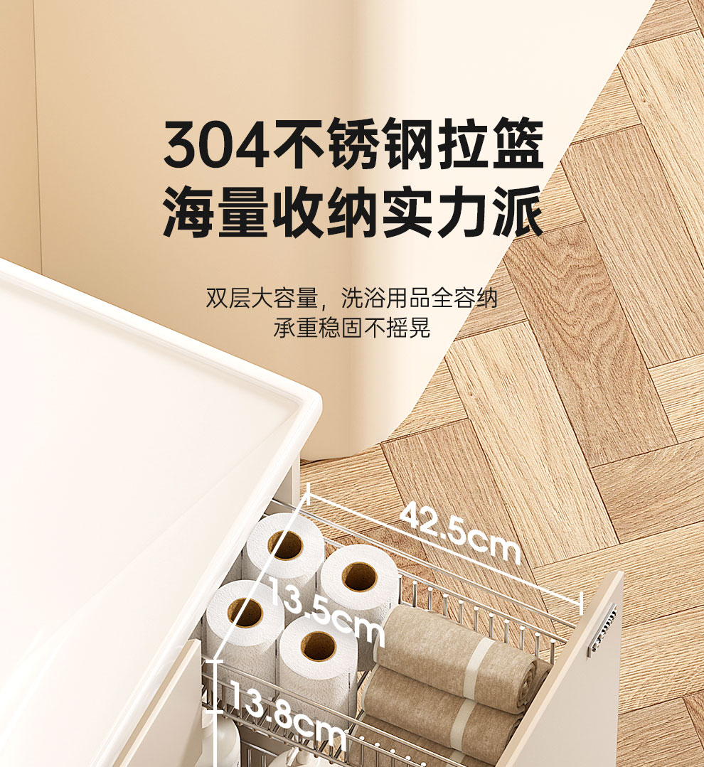 浪鲸(SSWW)卫浴新款日式浴室柜奶油风实木盆柜组合一体不锈钢拉篮浴室柜460 90cm【环绕灯智能美妆镜柜+除雾+海洋盆】 【不含龙头】