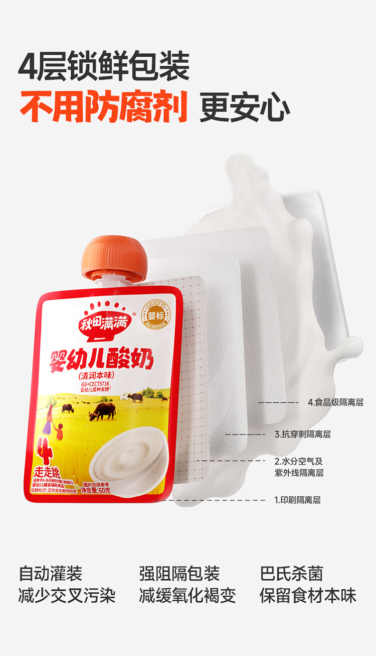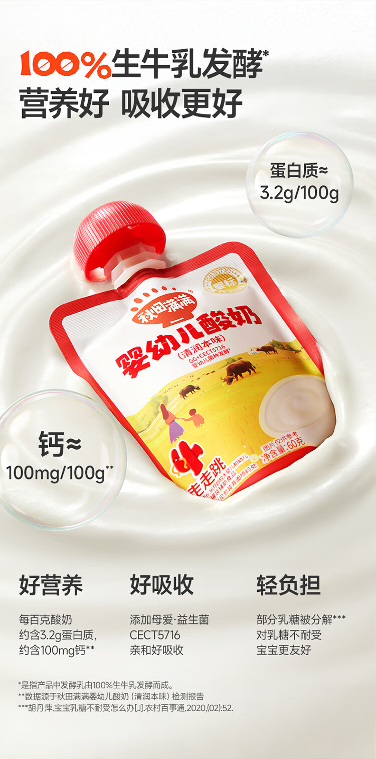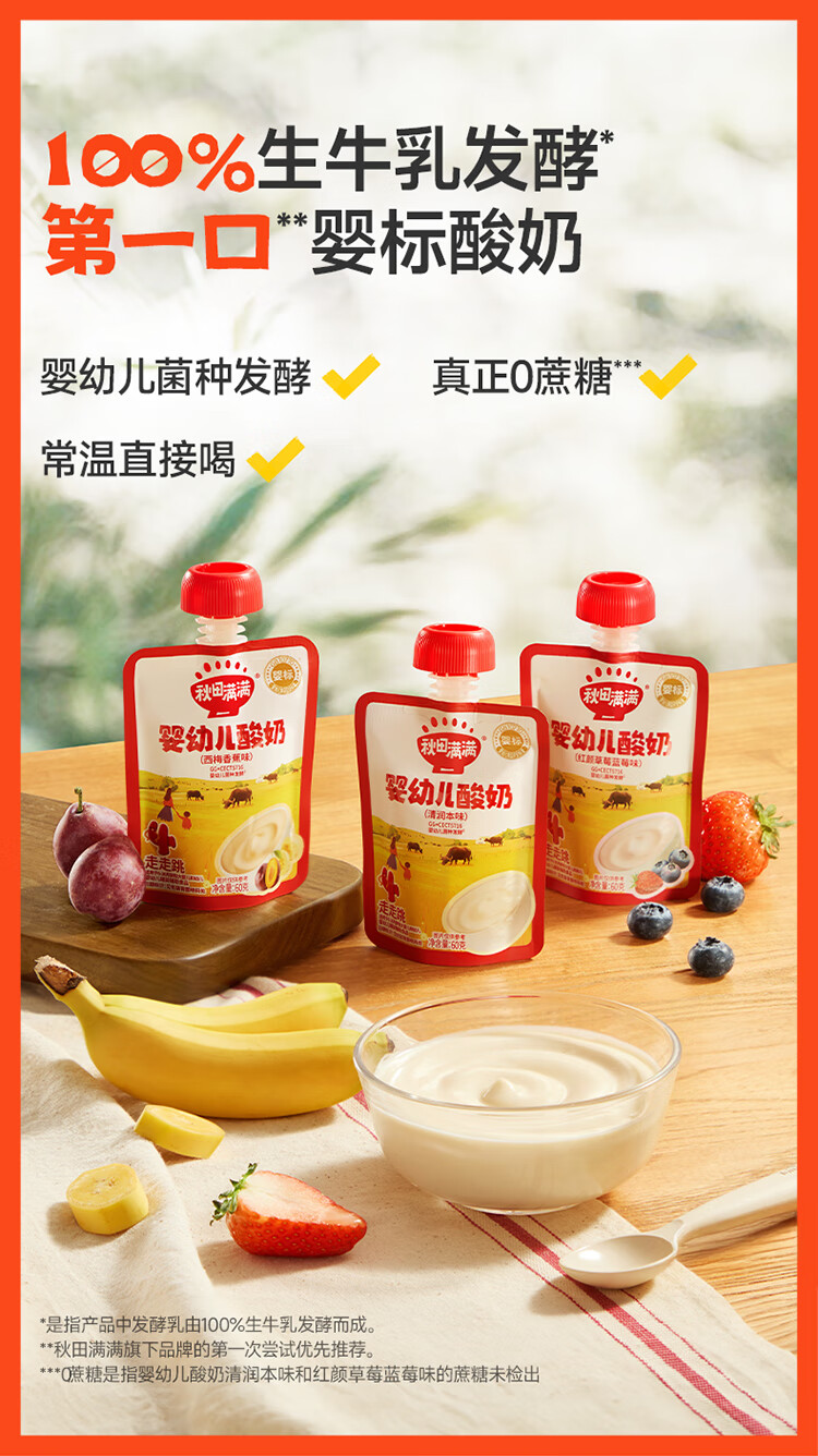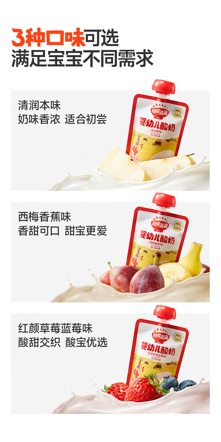 秋田满满婴幼儿酸奶 不添加白砂糖宝宝酸奶 婴标儿童辅食饮品 【三种口味组合】婴幼儿酸奶60g*3袋