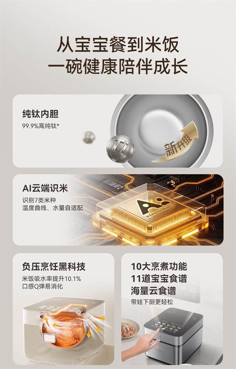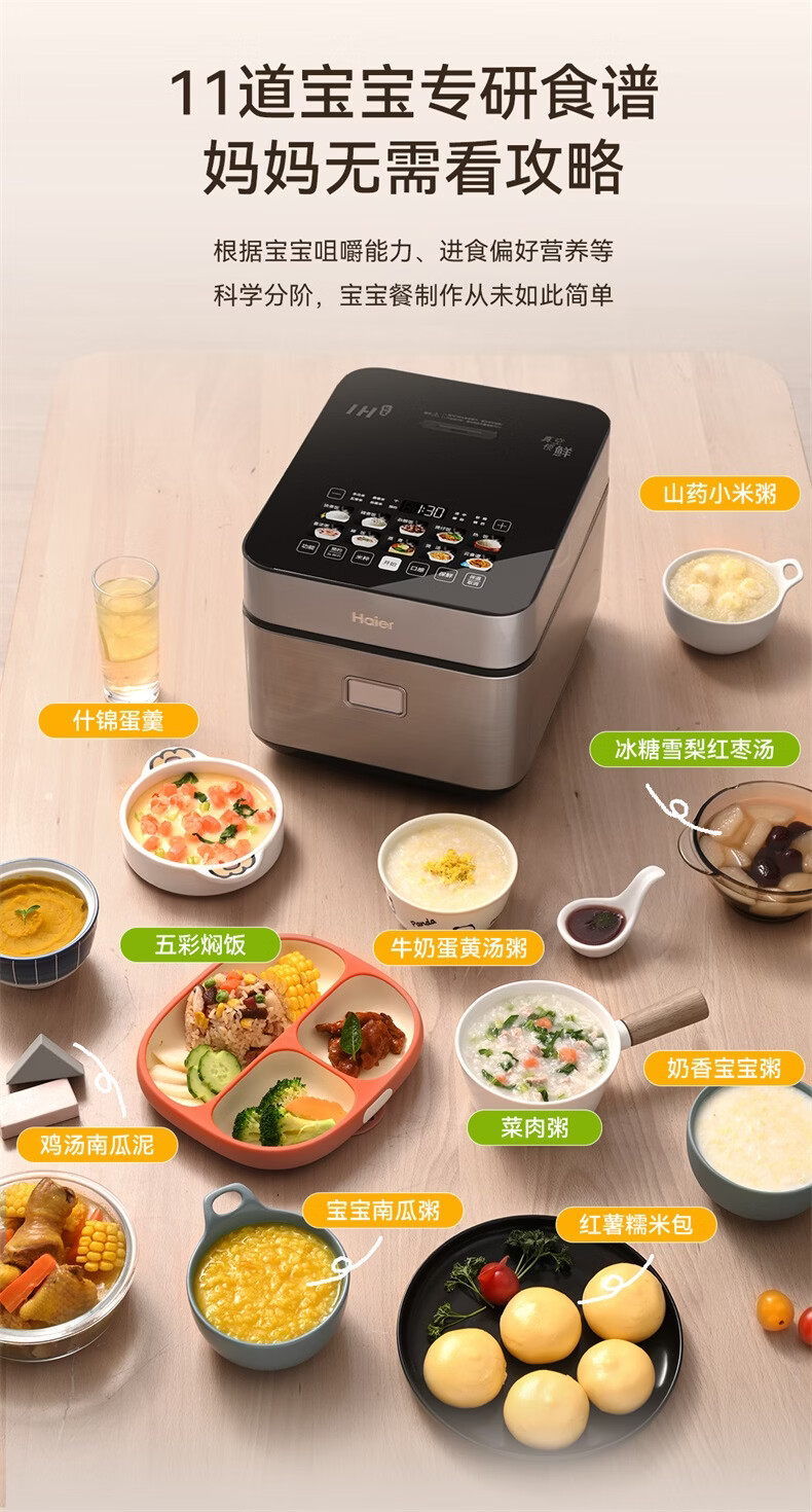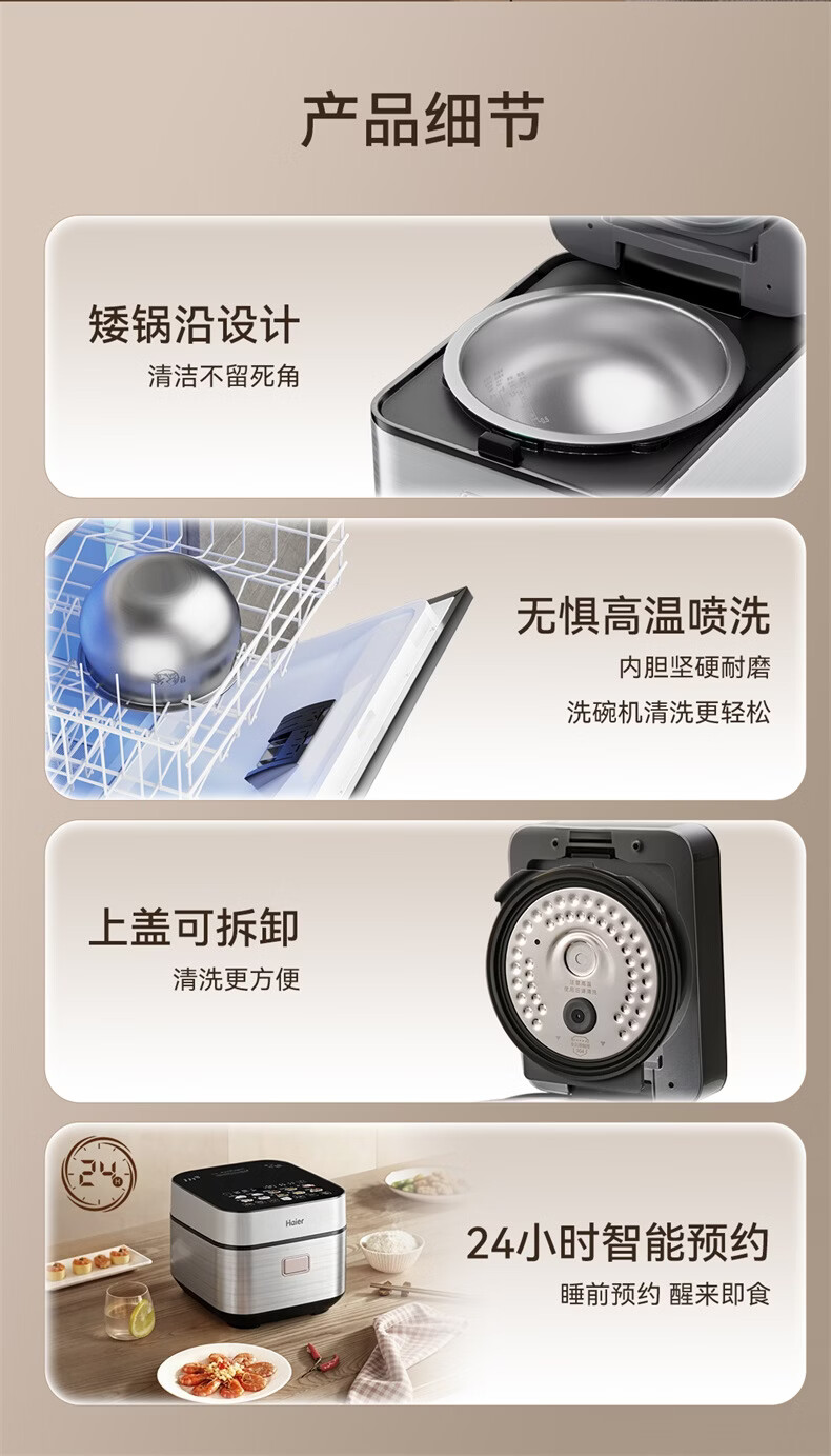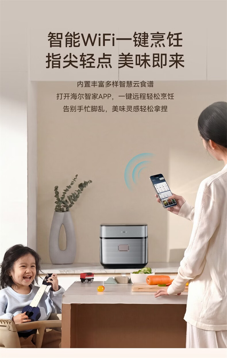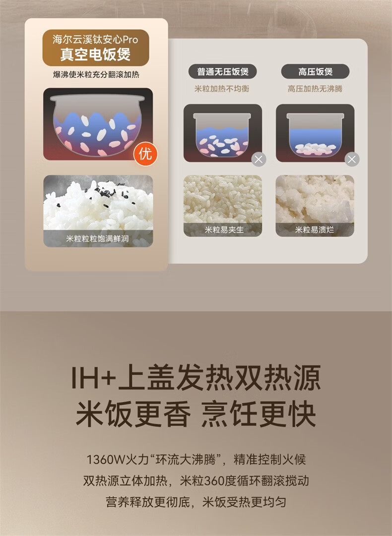 海尔云溪电饭煲4升高纯钛内胆0涂层不粘锅3-4人 IH加热 AI智能识米 WIFI操作真空微压保鲜HRC-I54ZDBU1
