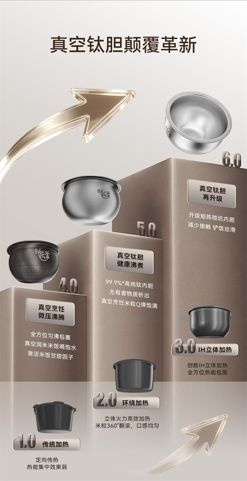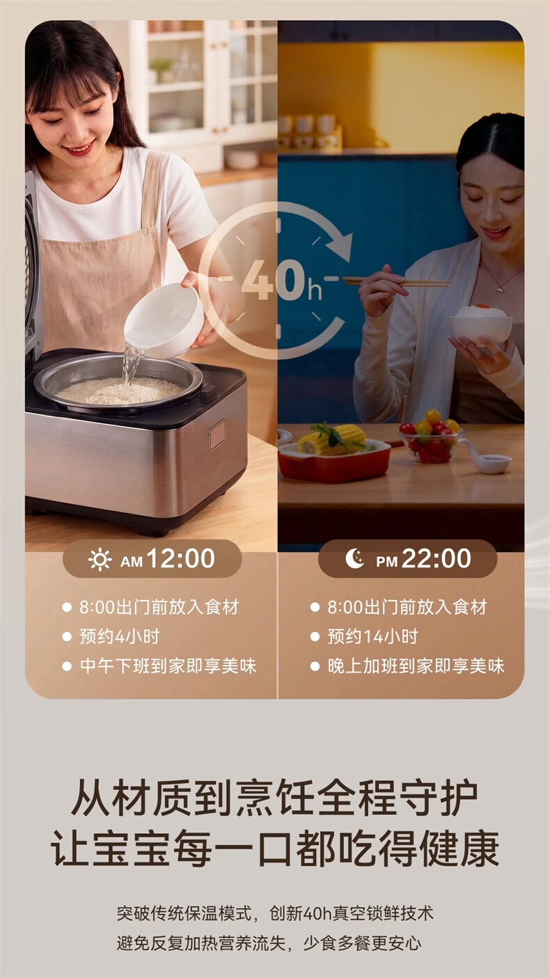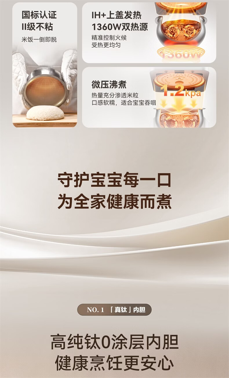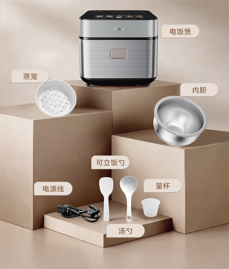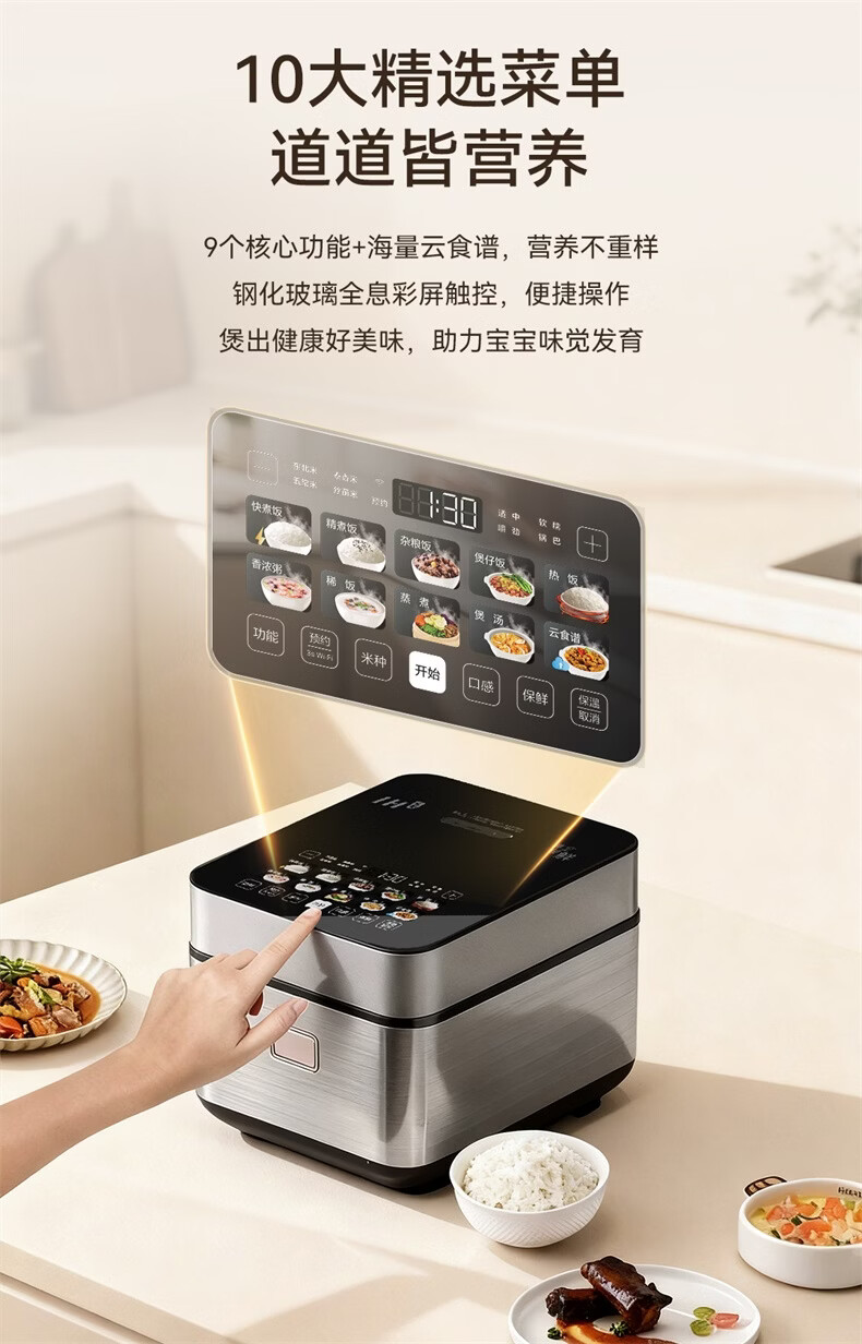 海尔云溪电饭煲4升高纯钛内胆0涂层不粘锅3-4人 IH加热 AI智能识米 WIFI操作真空微压保鲜HRC-I54ZDBU1