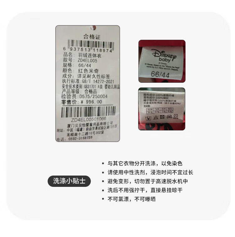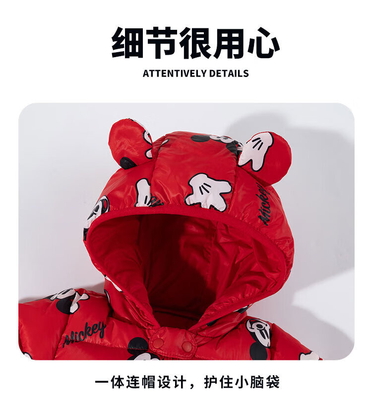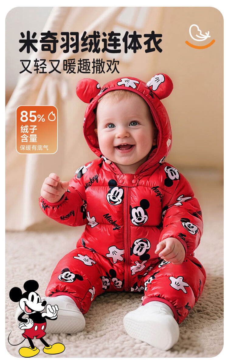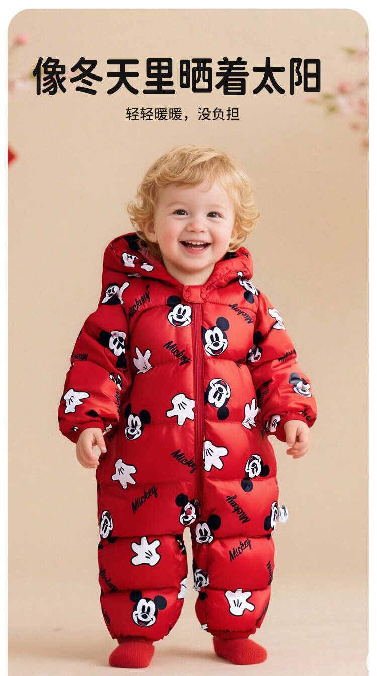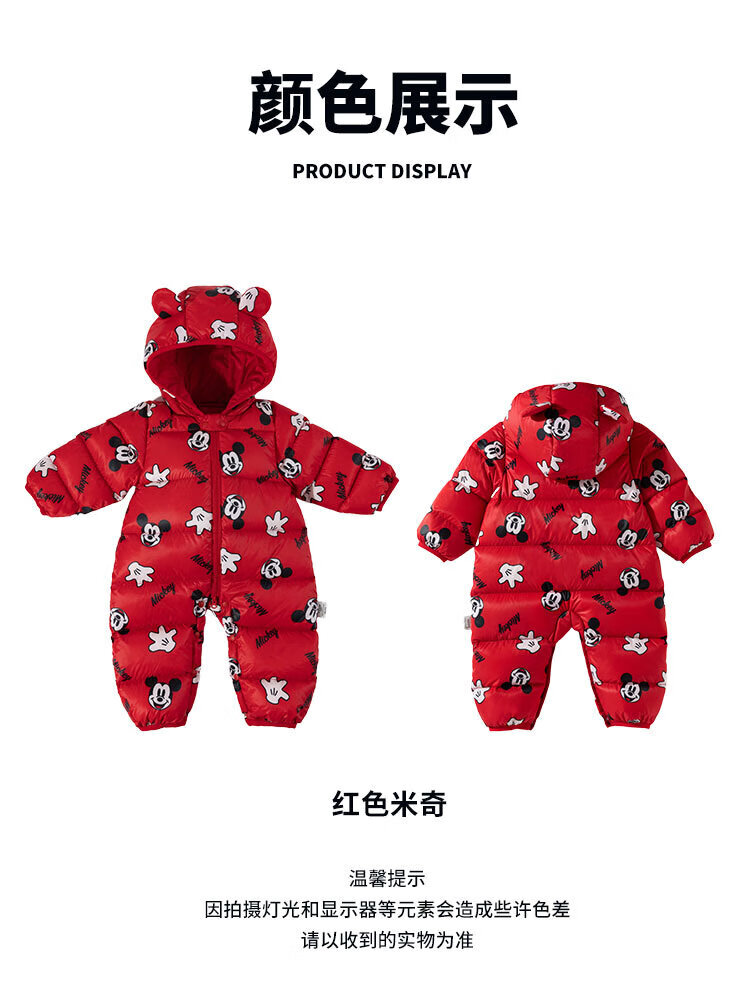 迪士尼(Disney)童装男童女童新年红色羽绒连体衣婴幼童米奇卡通舒适保暖冬季新款 红色米奇 80 (建议9-15个月身高73-80cm)