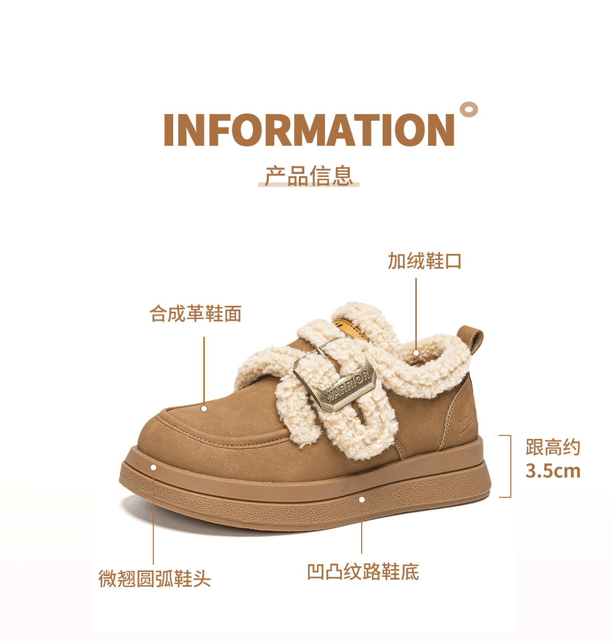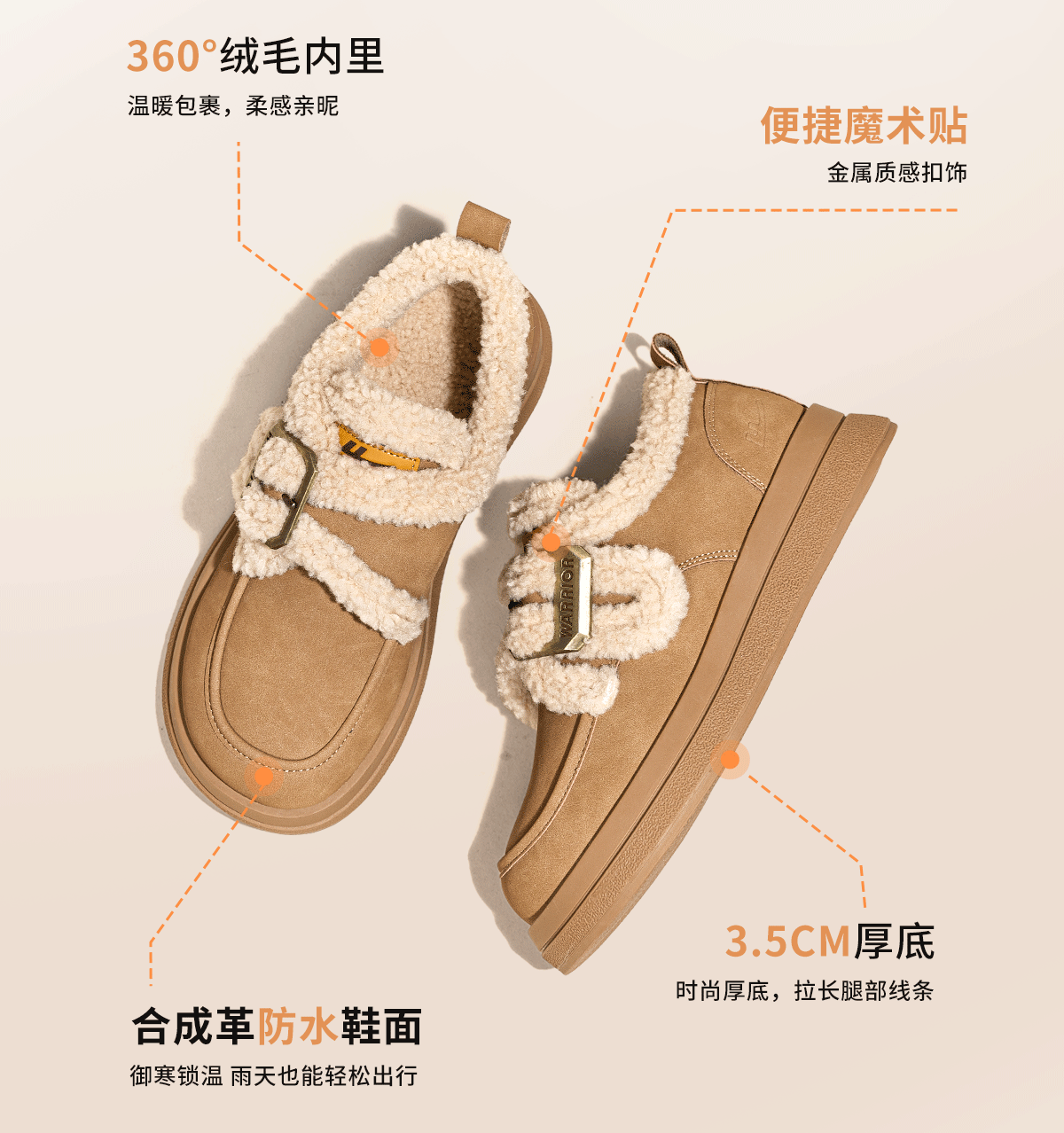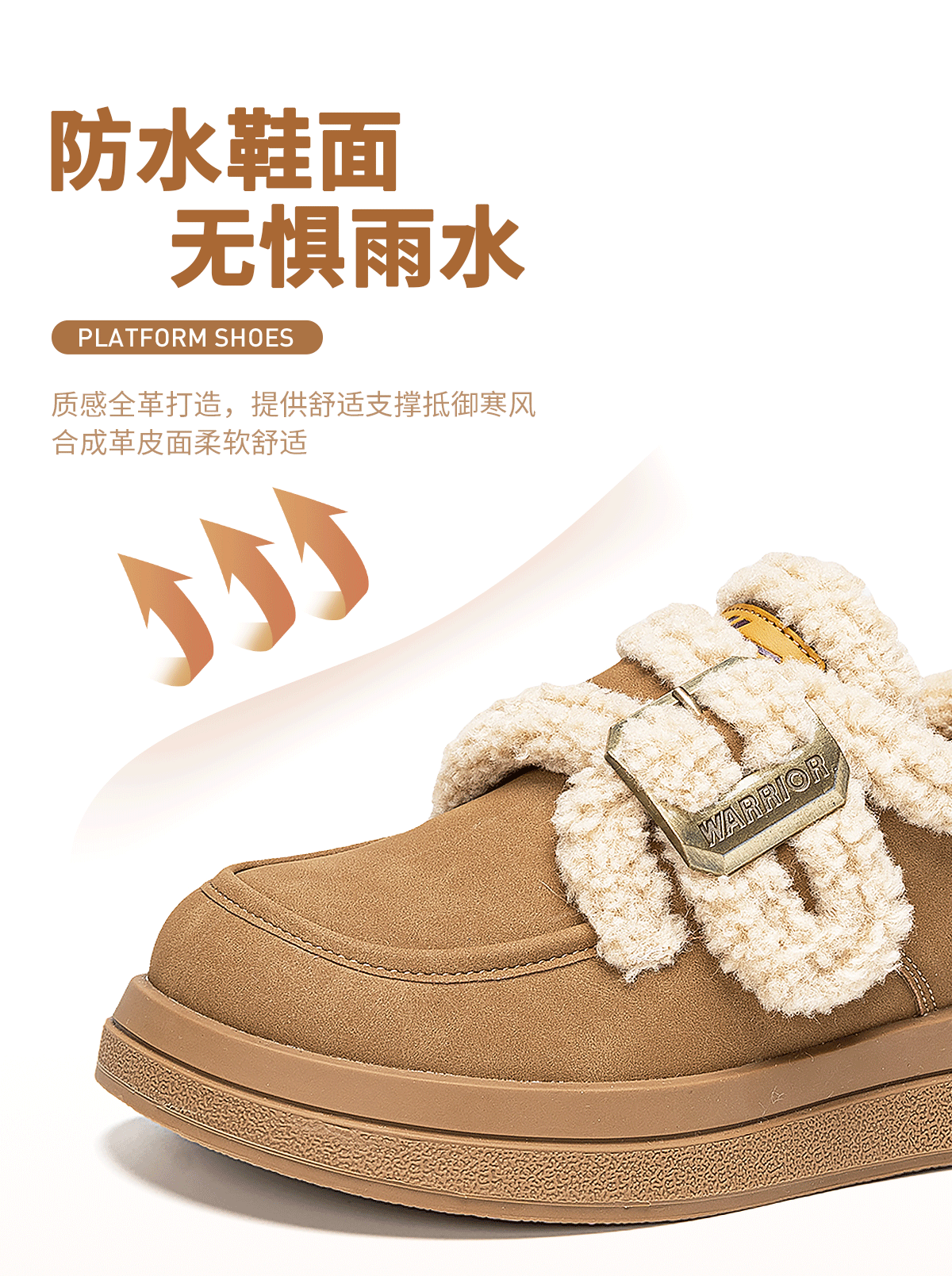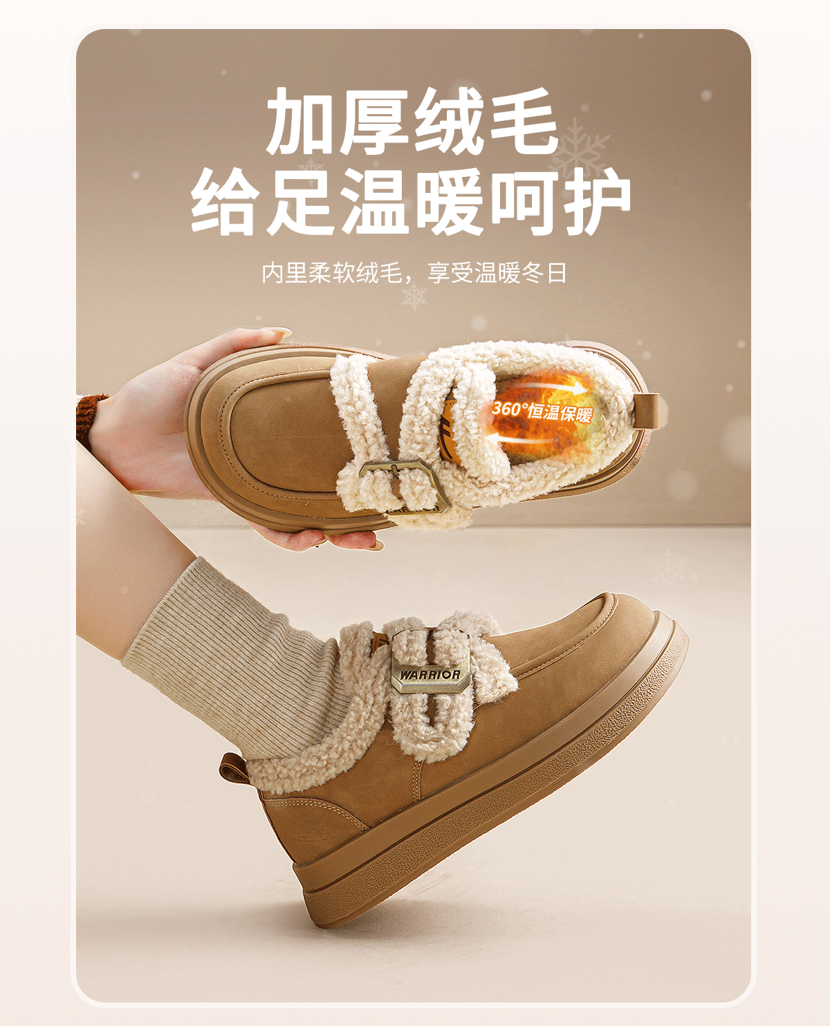 回力厚底棉鞋2025新款加绒秋冬爆款毛毛羊羔保暖雪地加厚百搭舒适女鞋 棕色 35