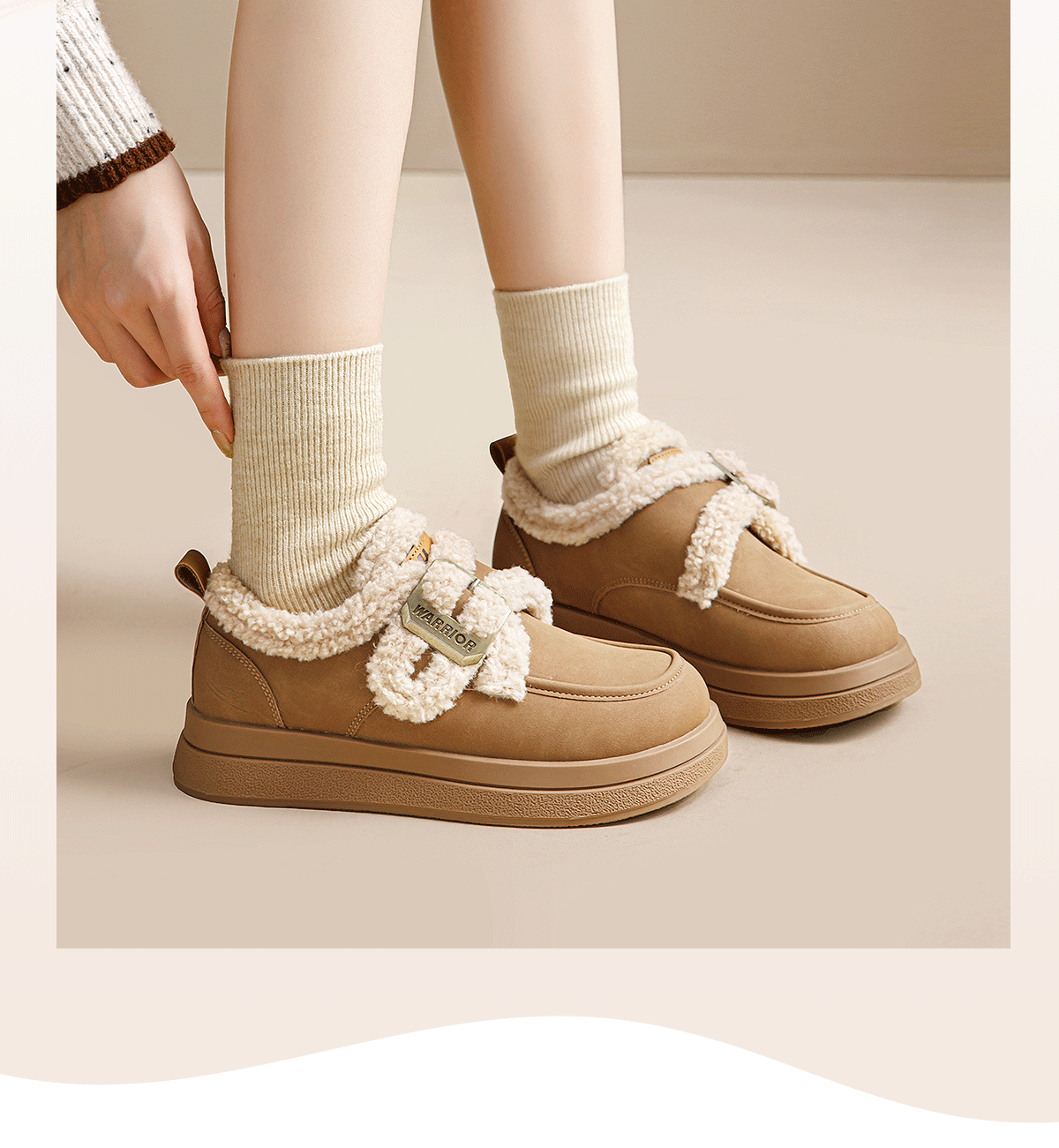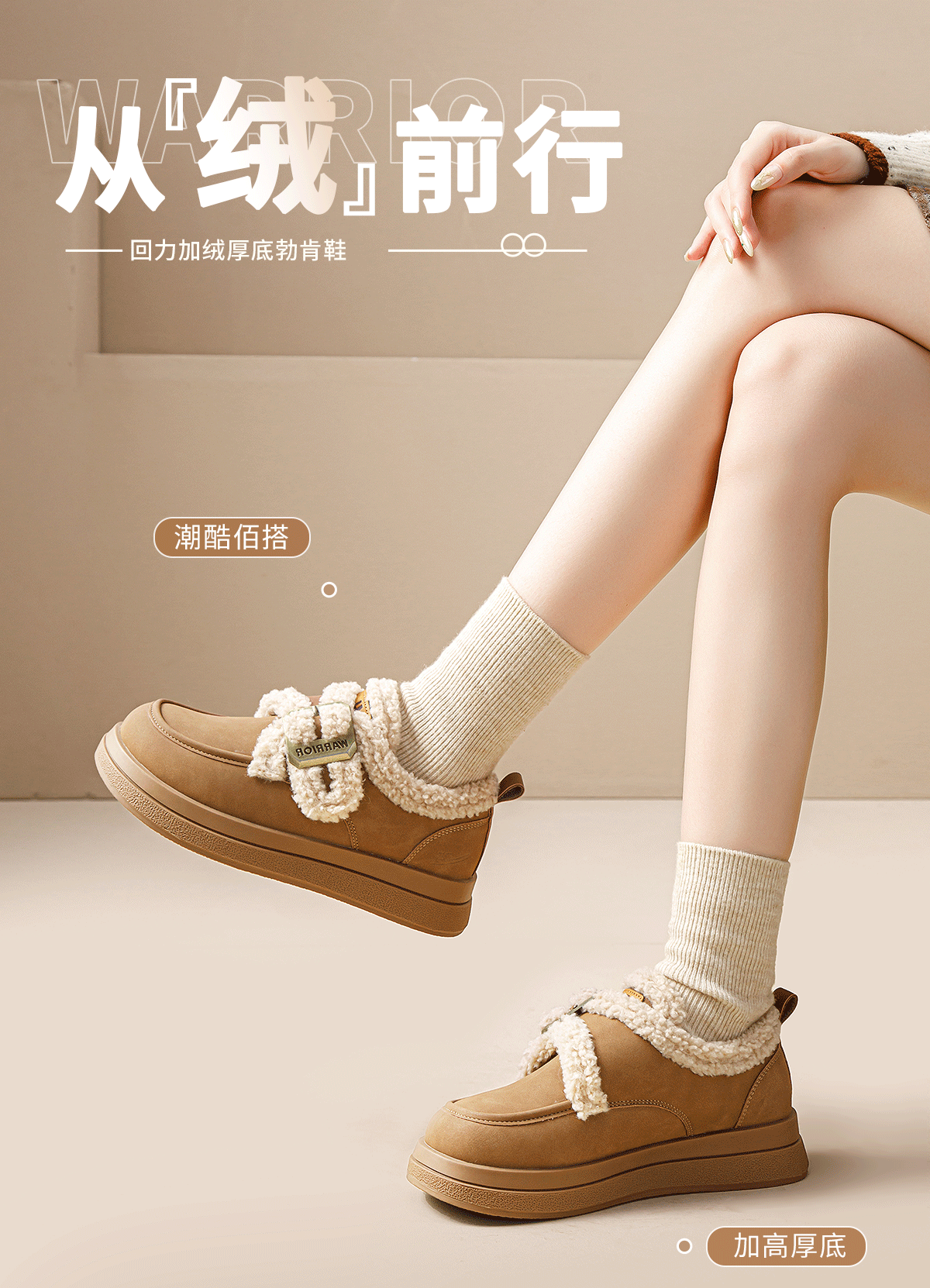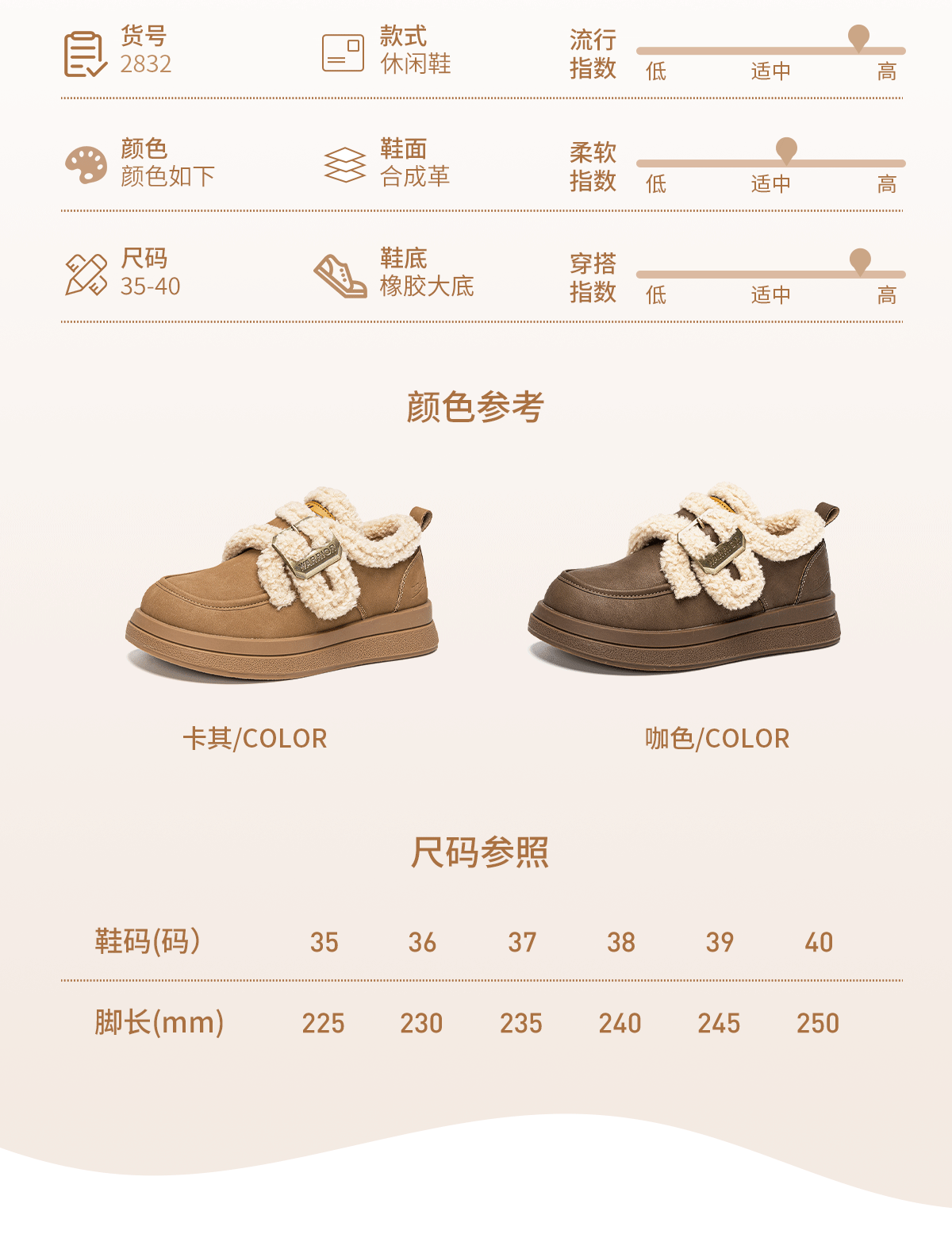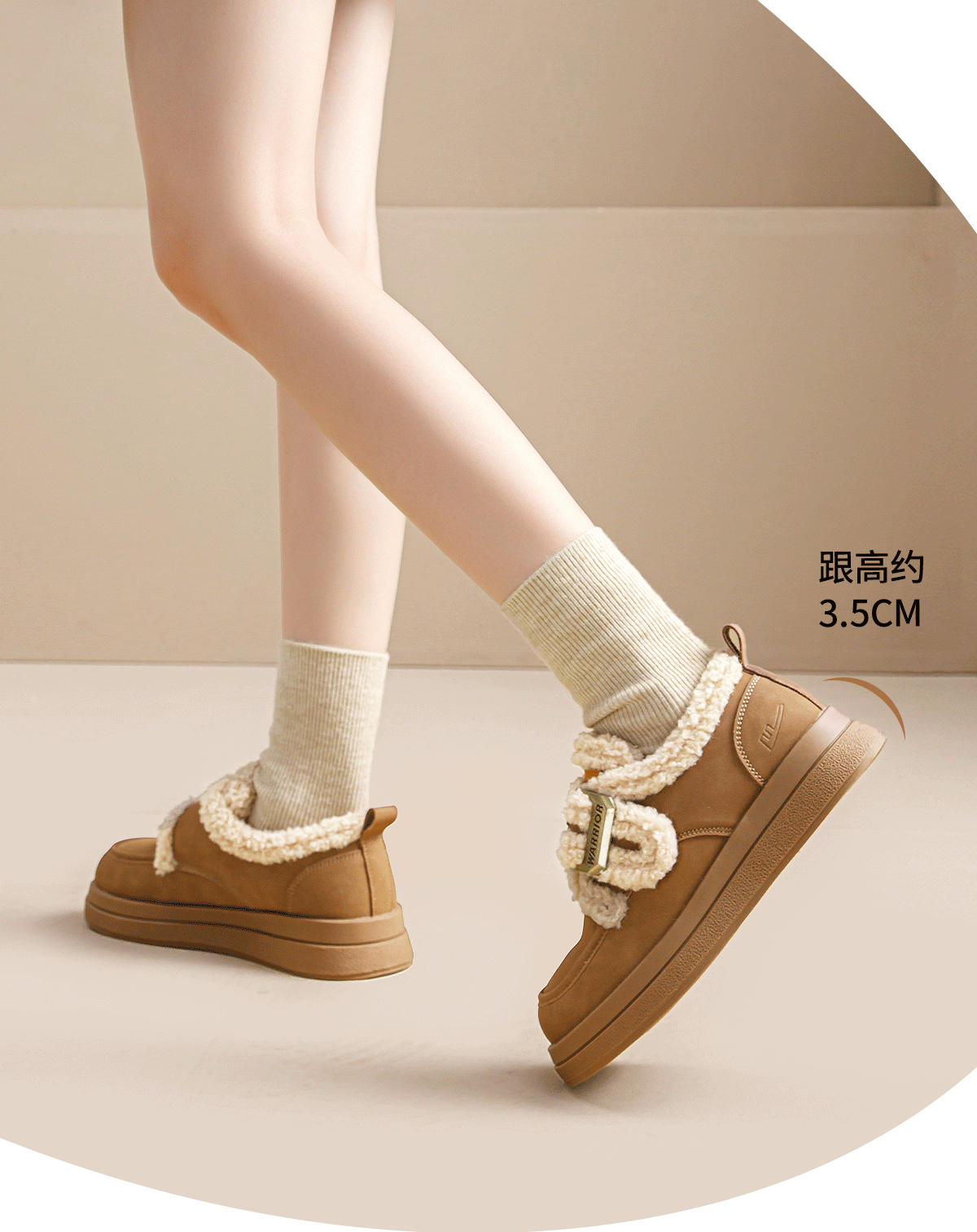 回力厚底棉鞋2025新款加绒秋冬爆款毛毛羊羔保暖雪地加厚百搭舒适女鞋 棕色 35
