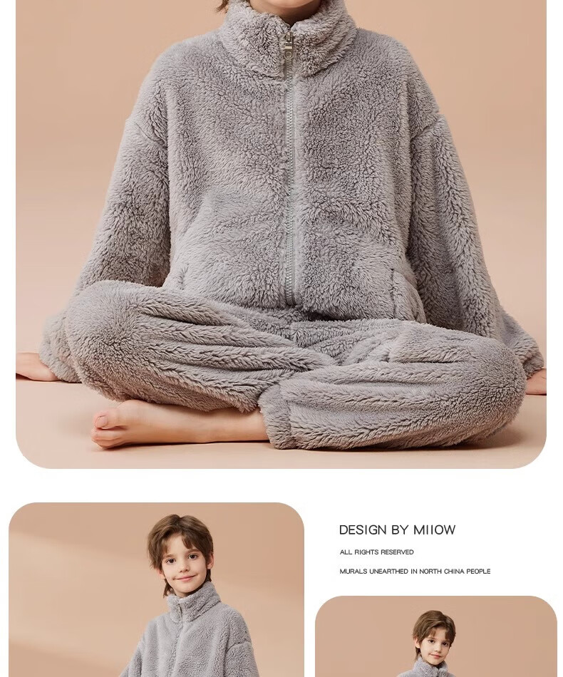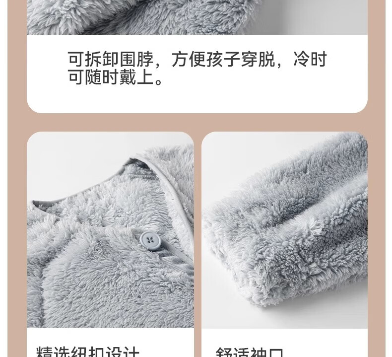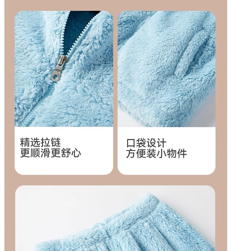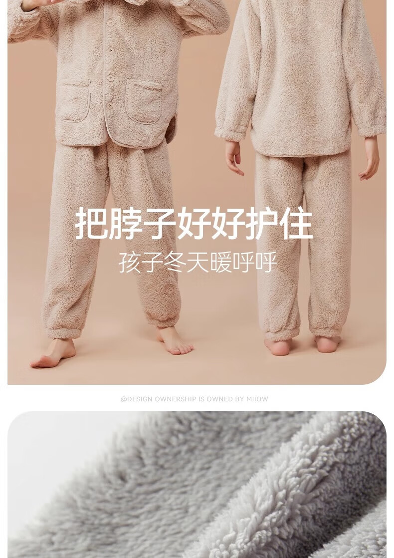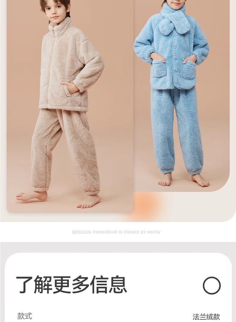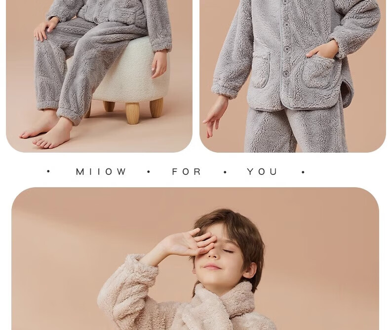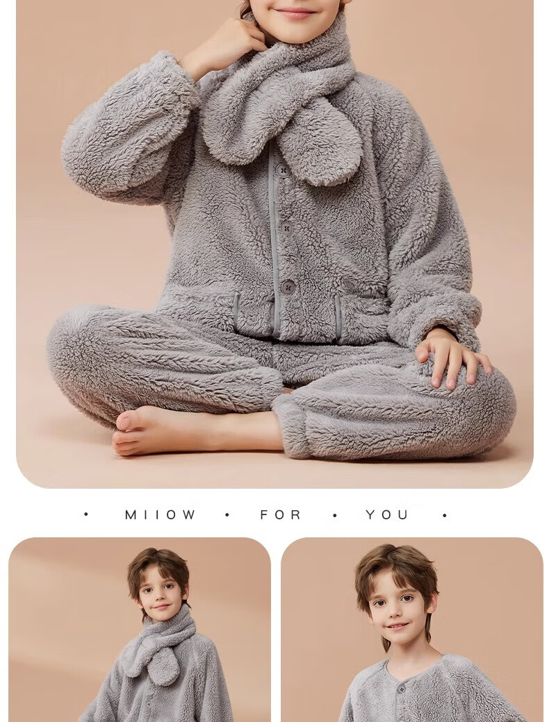 猫人(MiiOW)儿童珊瑚绒睡衣女大童法兰绒青少年家居服秋冬男童保暖睡衣套装 蓝色-可拆卸围脖款 170 建议体重105-120斤