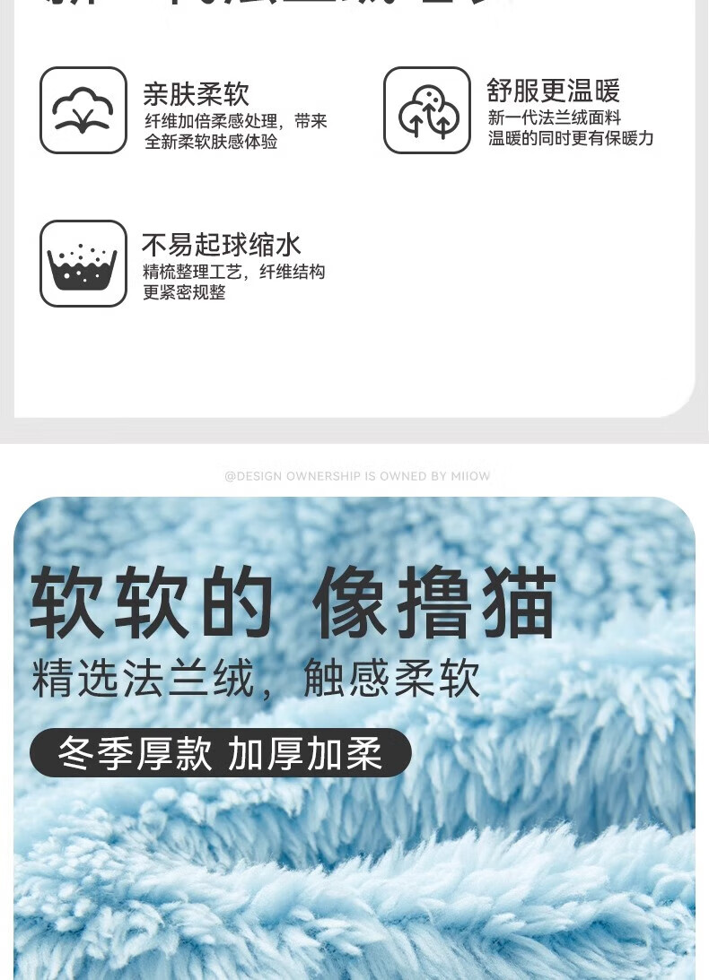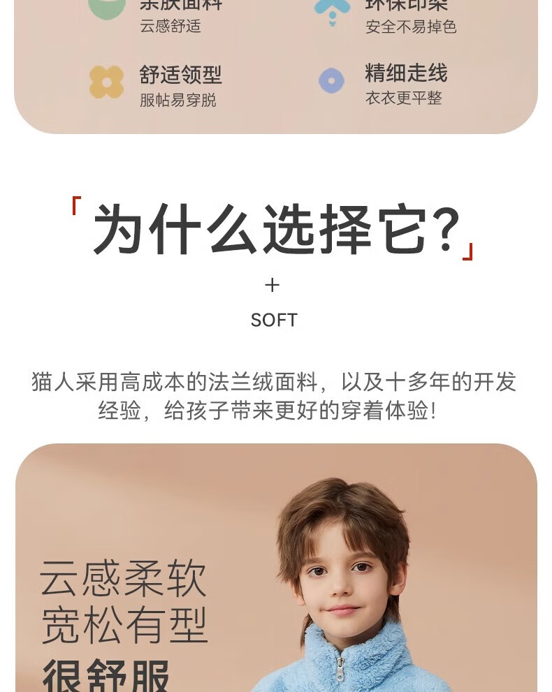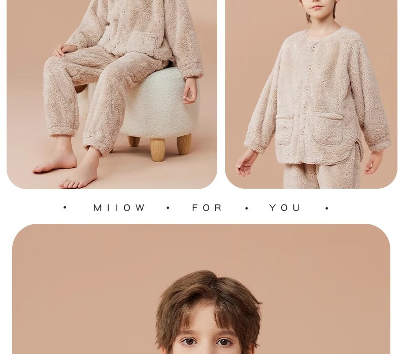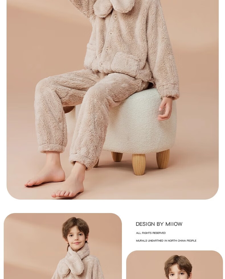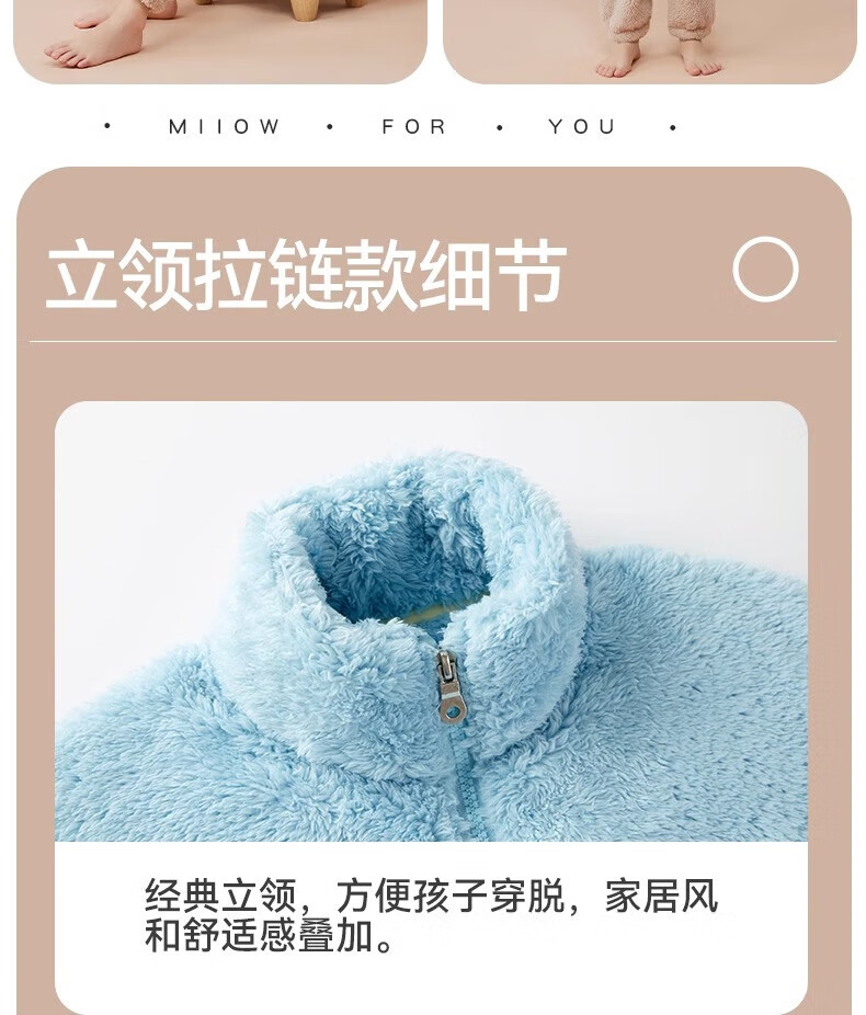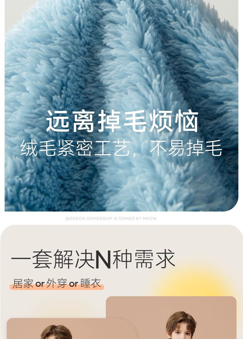 猫人(MiiOW)儿童珊瑚绒睡衣女大童法兰绒青少年家居服秋冬男童保暖睡衣套装 蓝色-可拆卸围脖款 170 建议体重105-120斤
