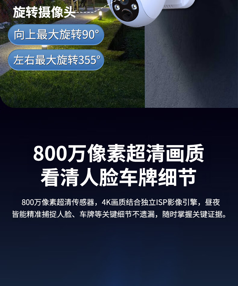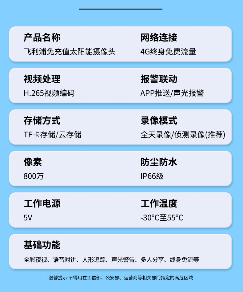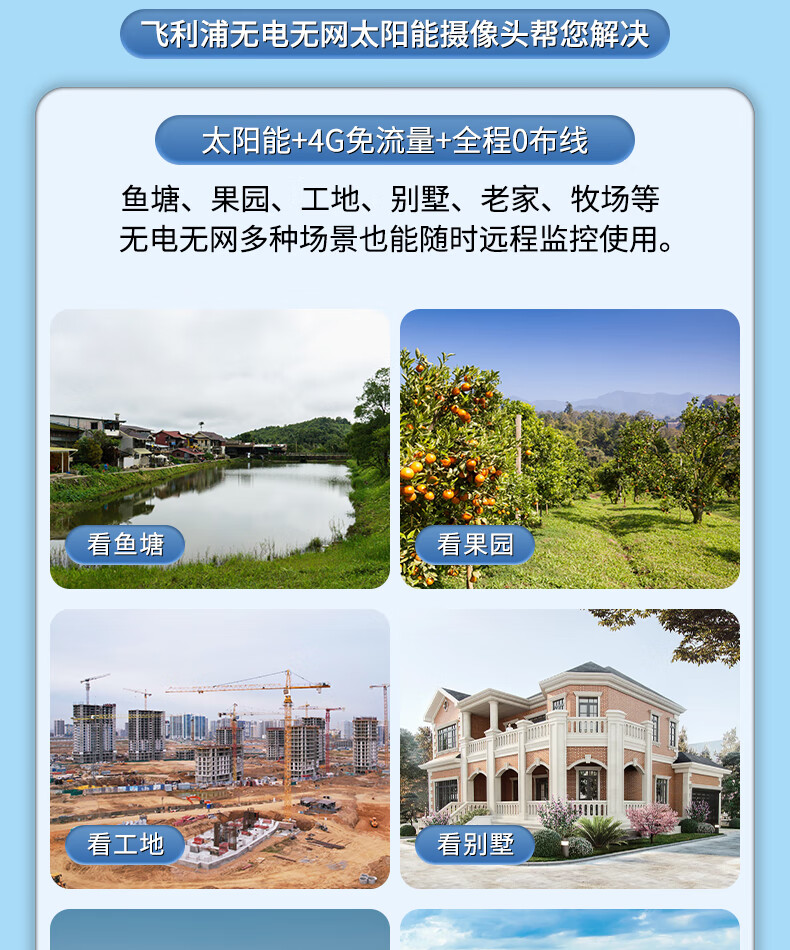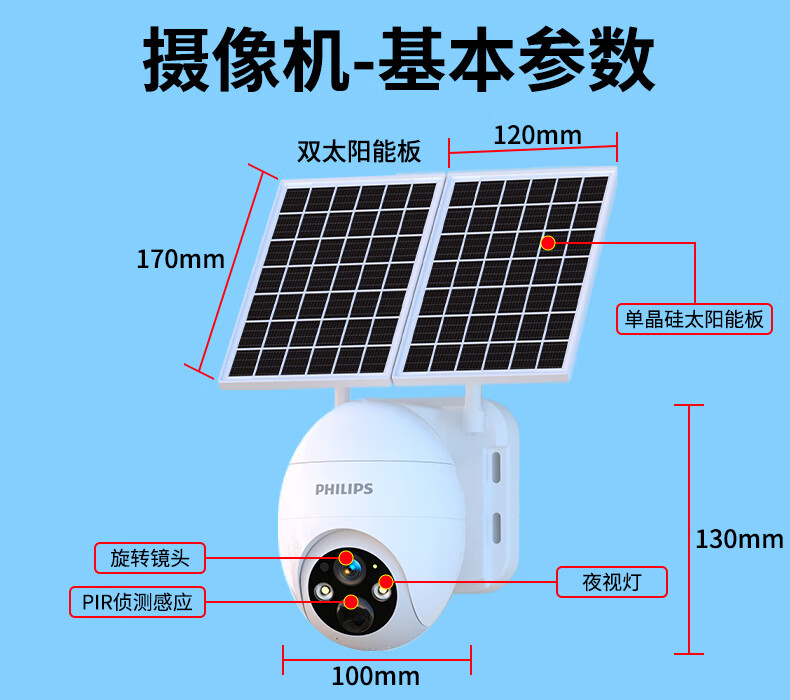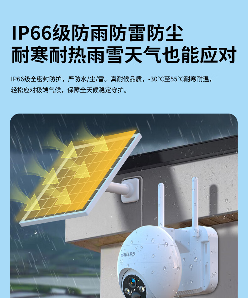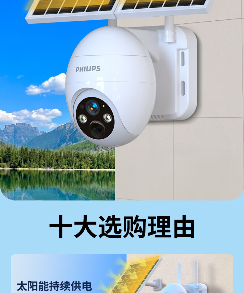 飞利浦太阳能摄像头360度无死角带夜视全景家用终身免流量4g远程无电无网户外防水无线无需连wifi监控 太阳能4G免充值+单板+终身免费流量