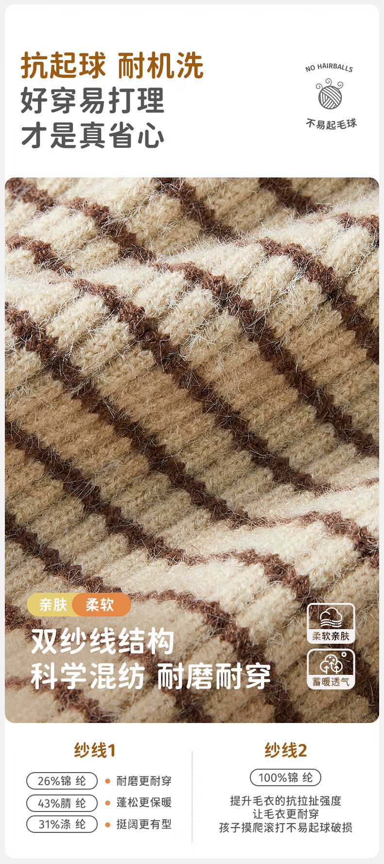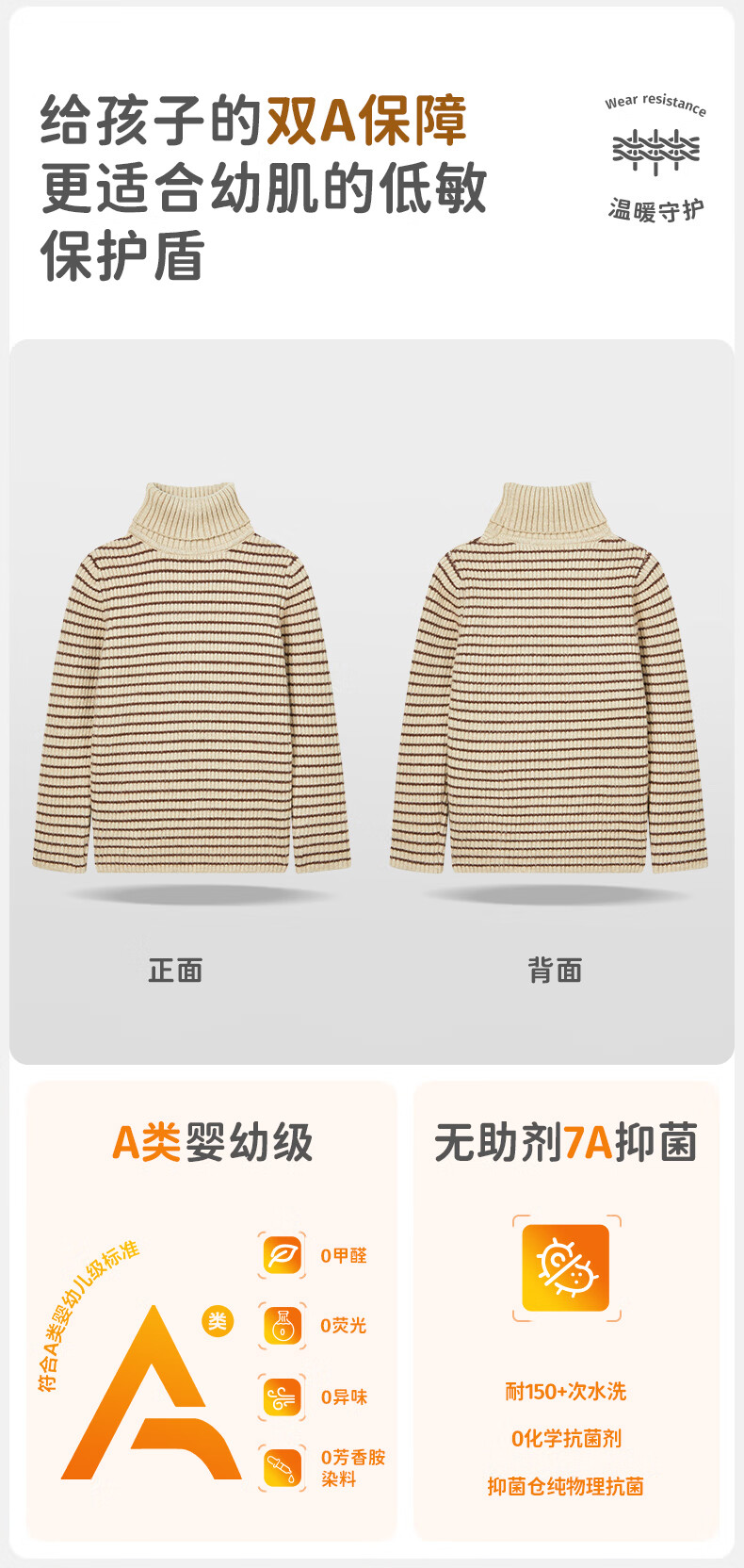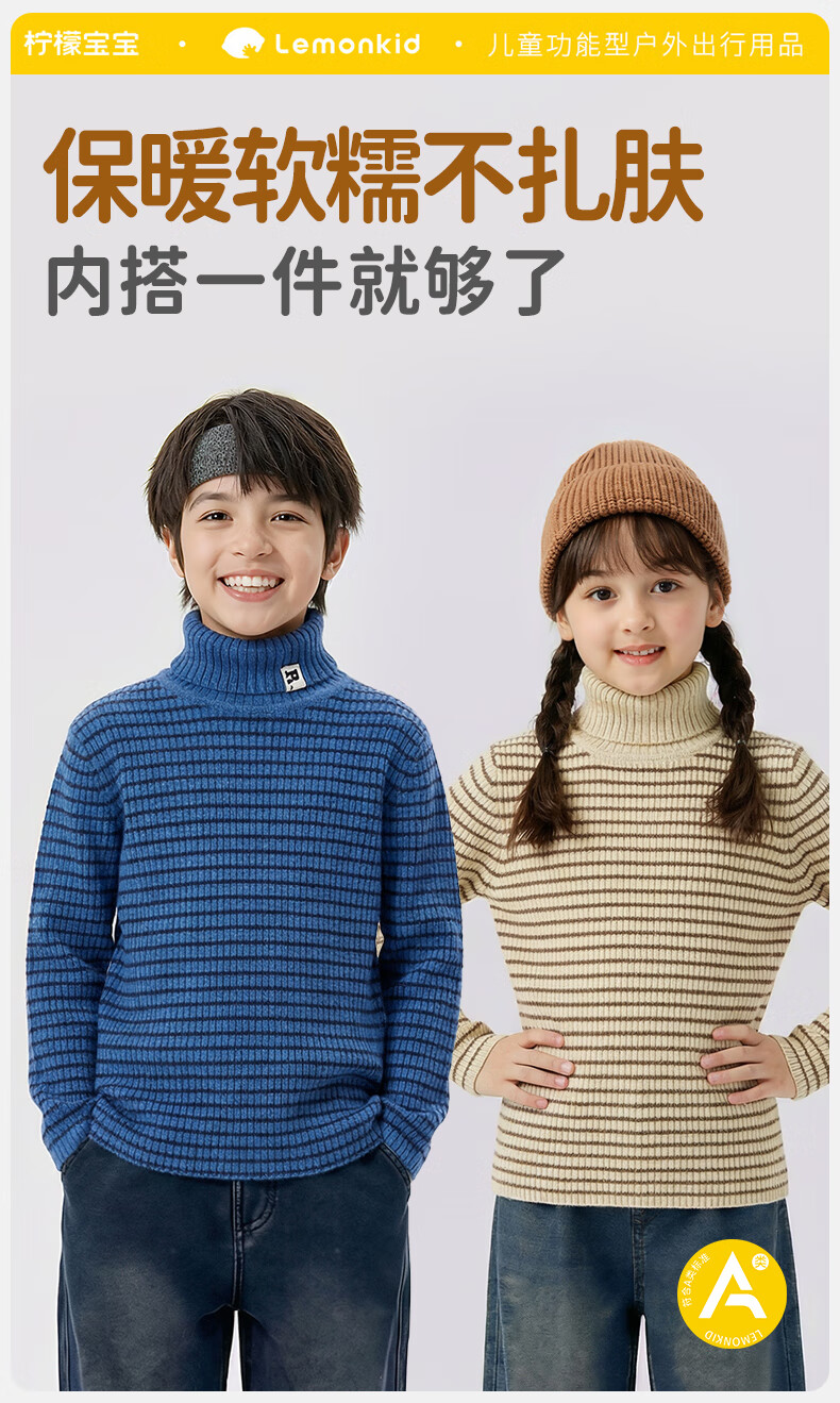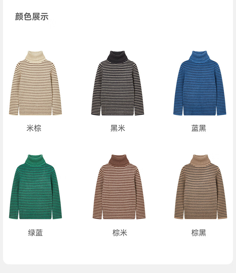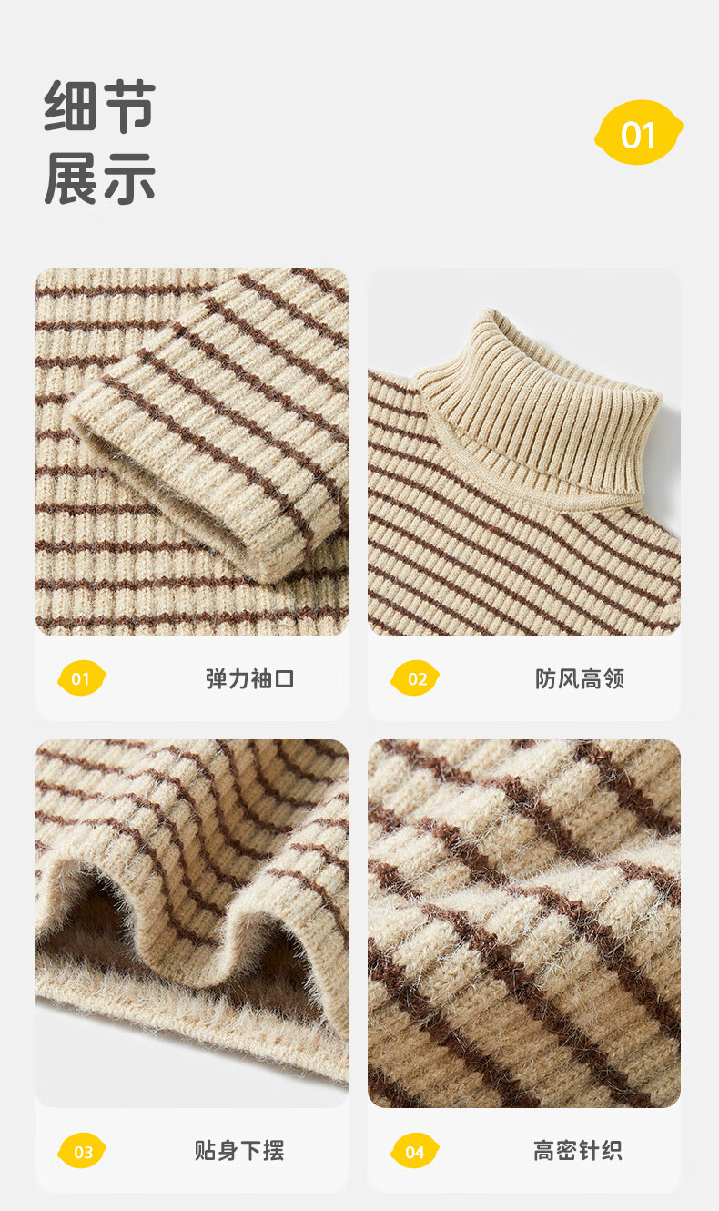 柠檬宝宝儿童针织加厚毛衣秋冬男童女童套头衫基础百搭高领时尚条纹针织衫 棕米 150