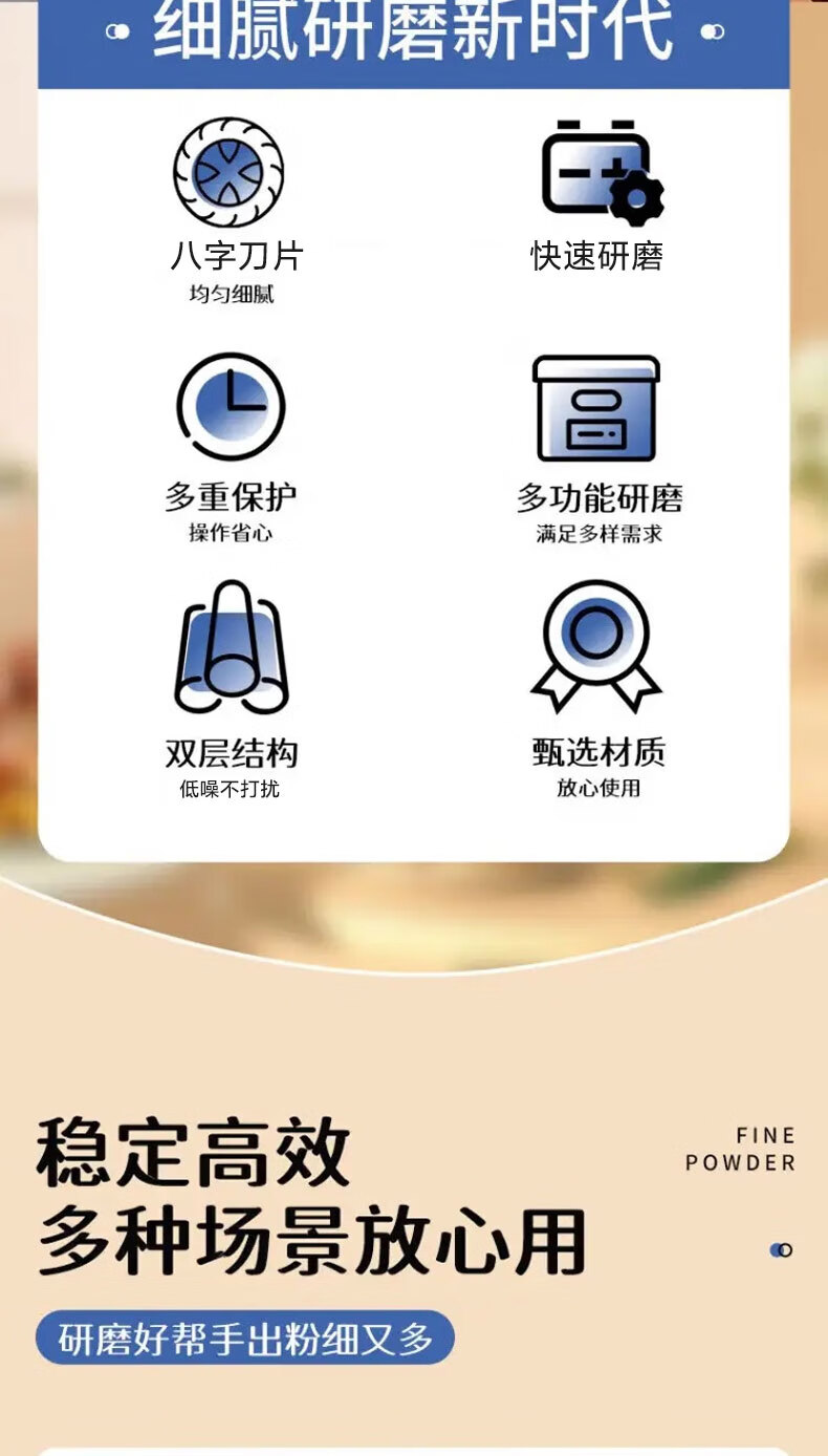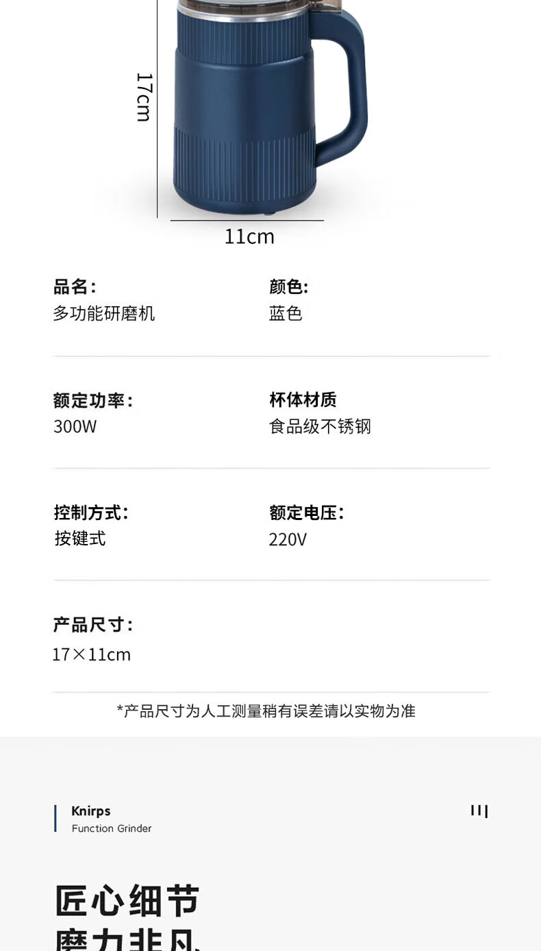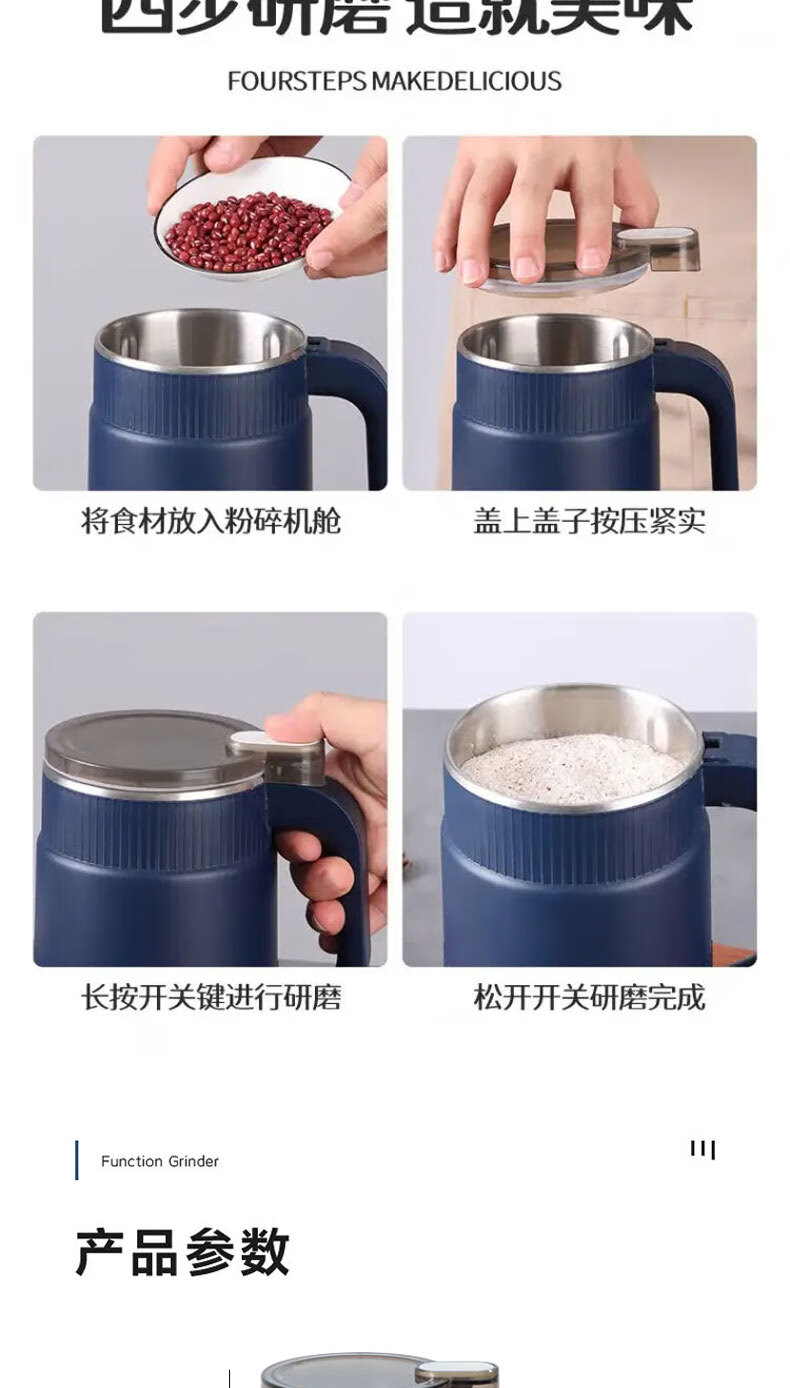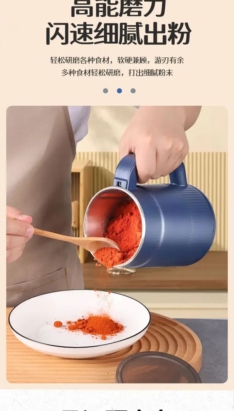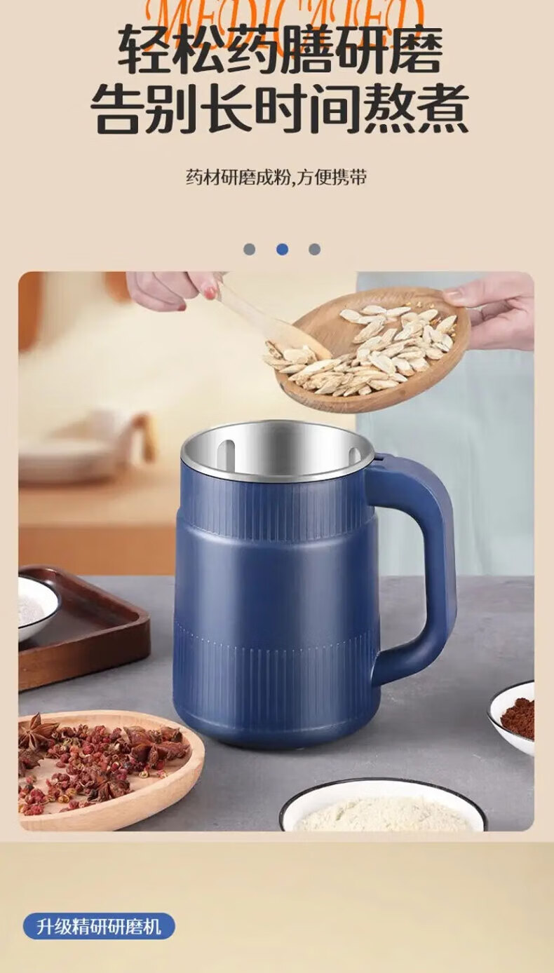 栢启歆磨粉机杂粮研磨器打粉机粉碎机中药粉碎破壁破碎机套装家用送刀片 升级款磨粉机【蓝色套装】