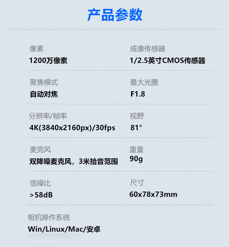 Moertek电脑直播摄像头台式4k超清视频会议5倍变焦1200万外接摄像头笔记本带麦克风usb高清摄像头家用网课 4K 超清摄像头*5倍变焦*免驱动 即插即用+支架