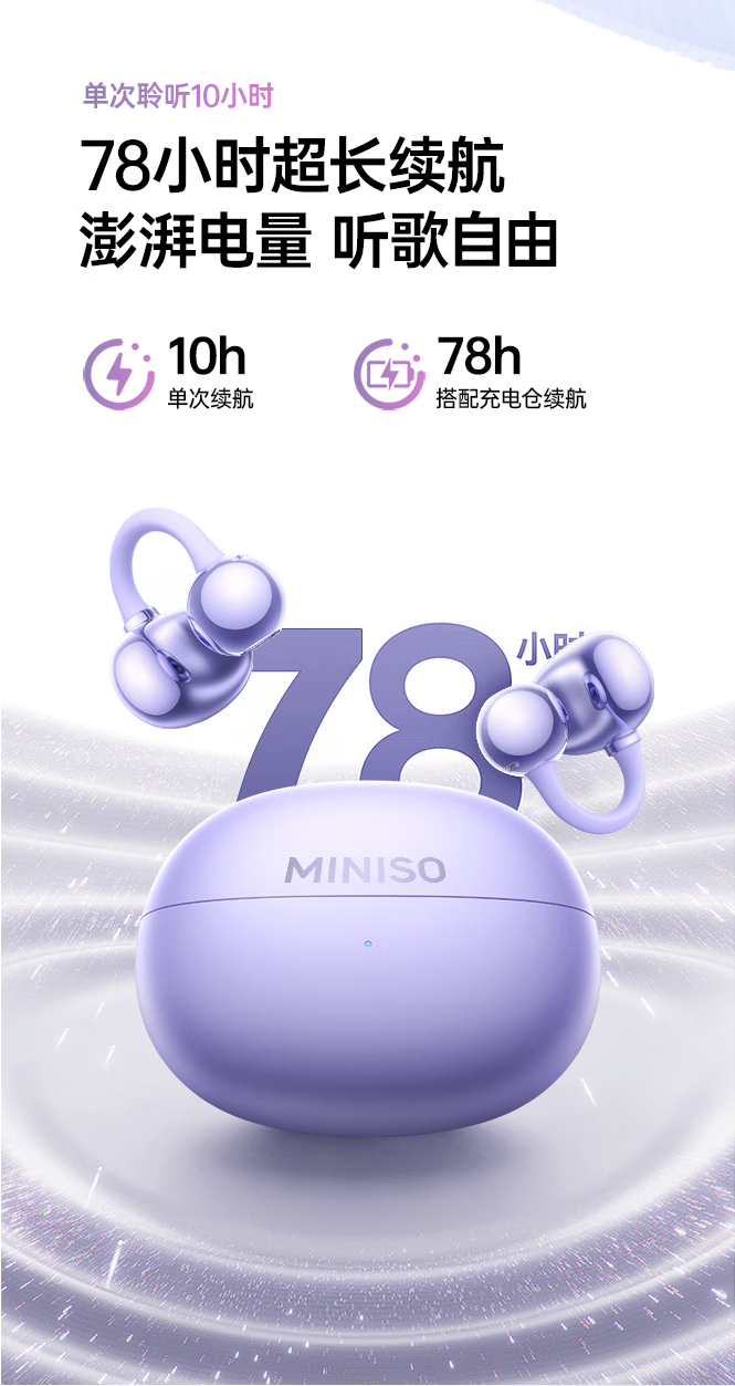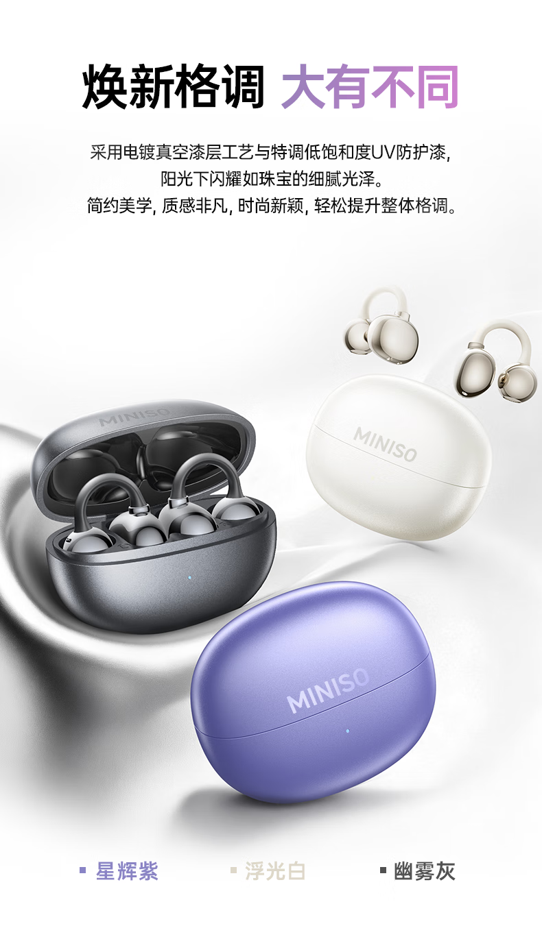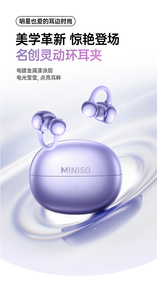 名创优品(MINISO)【热销百万+丨舒适度拉满】蓝牙耳机耳夹式耳机无线耳机运动耳机蓝牙2025最新款新年礼物 珍珠白【Ultra版丨国家补贴15%丨超强无损音质】 柏林之声丨适用于苹果小米荣耀