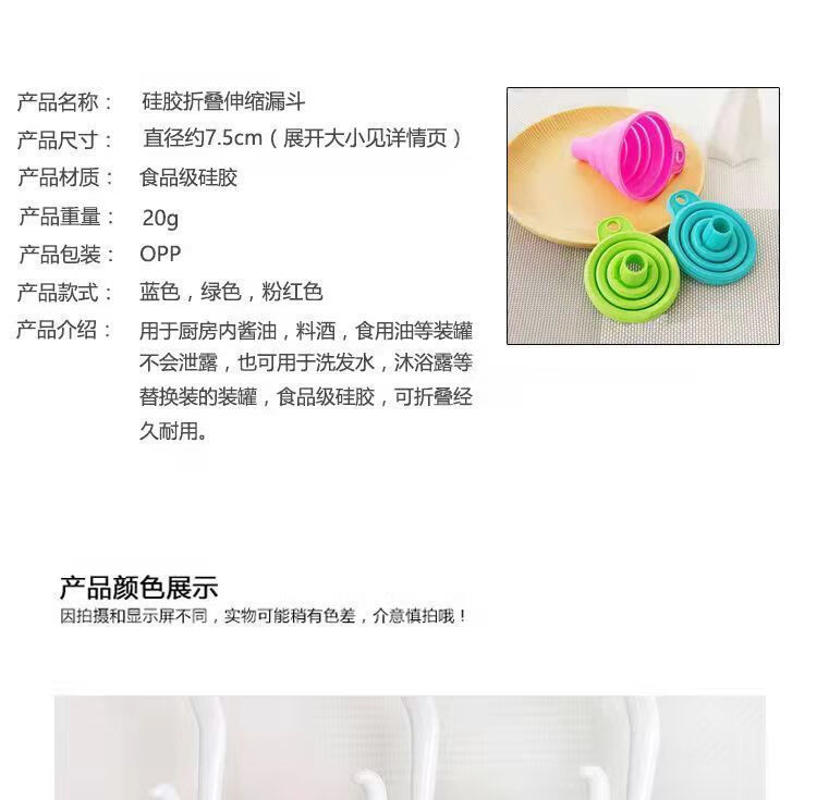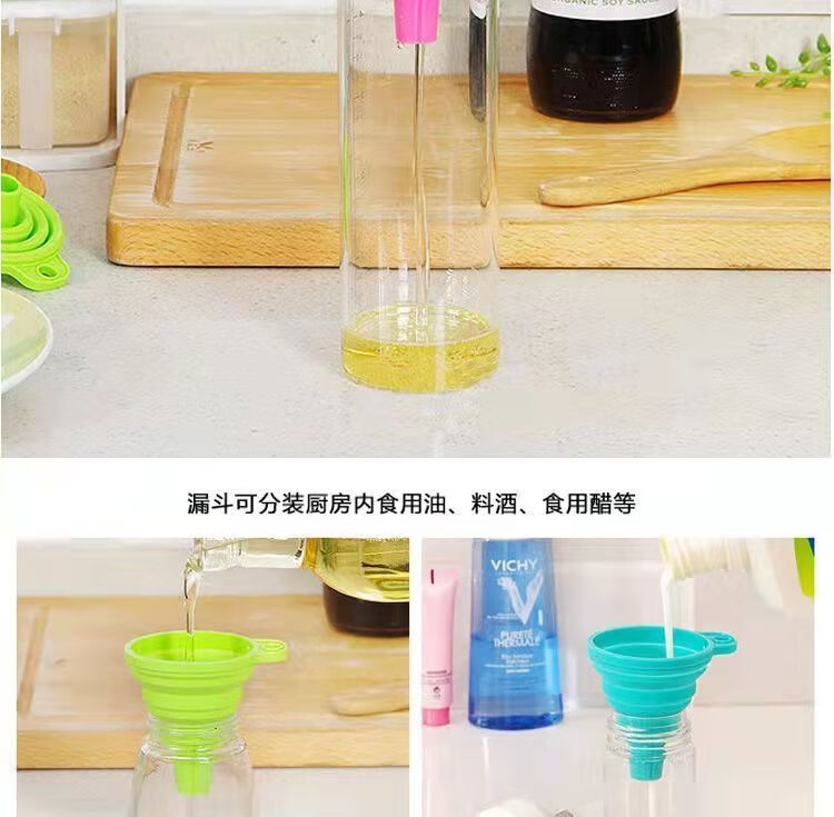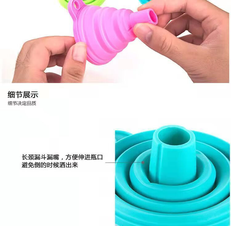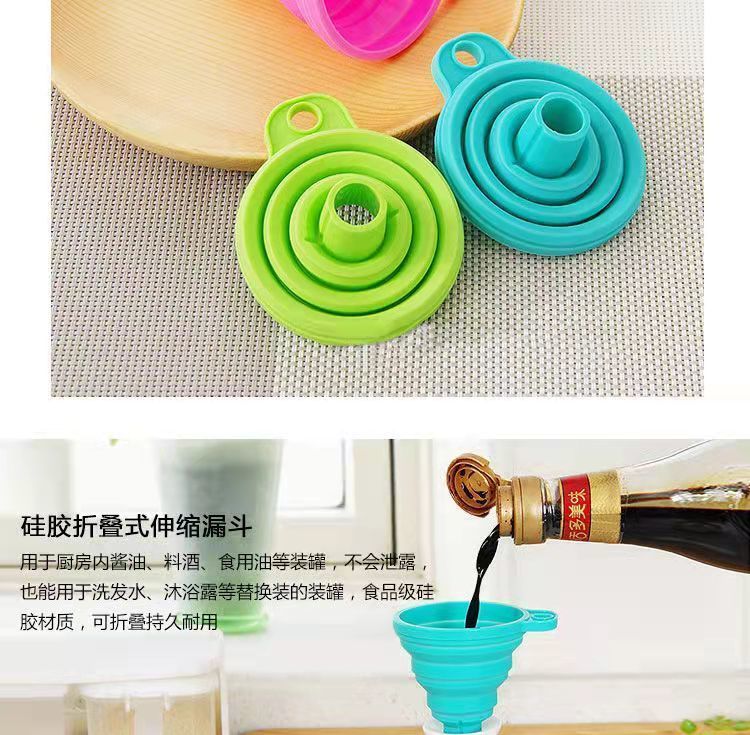 【精选直发】硅胶漏斗迷你伸缩折叠漏斗倒油漏厨房小口径水具配件 【5个】随机颜色