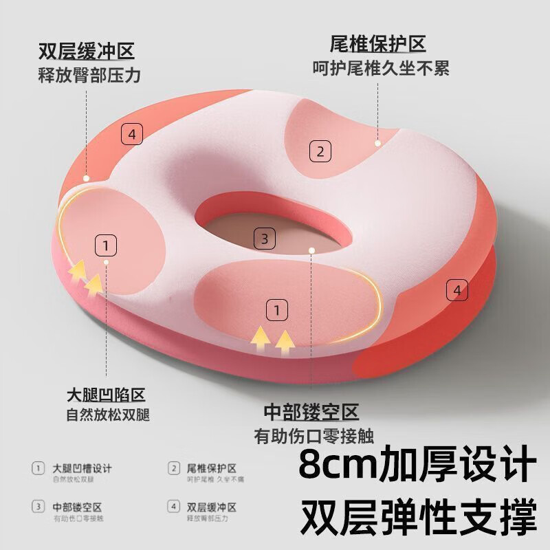 CLCEY产妇坐垫游泳圈屁股垫尾椎减孕妇产后术后久坐美臀透气座垫上课 玉米黄*0*型包臀