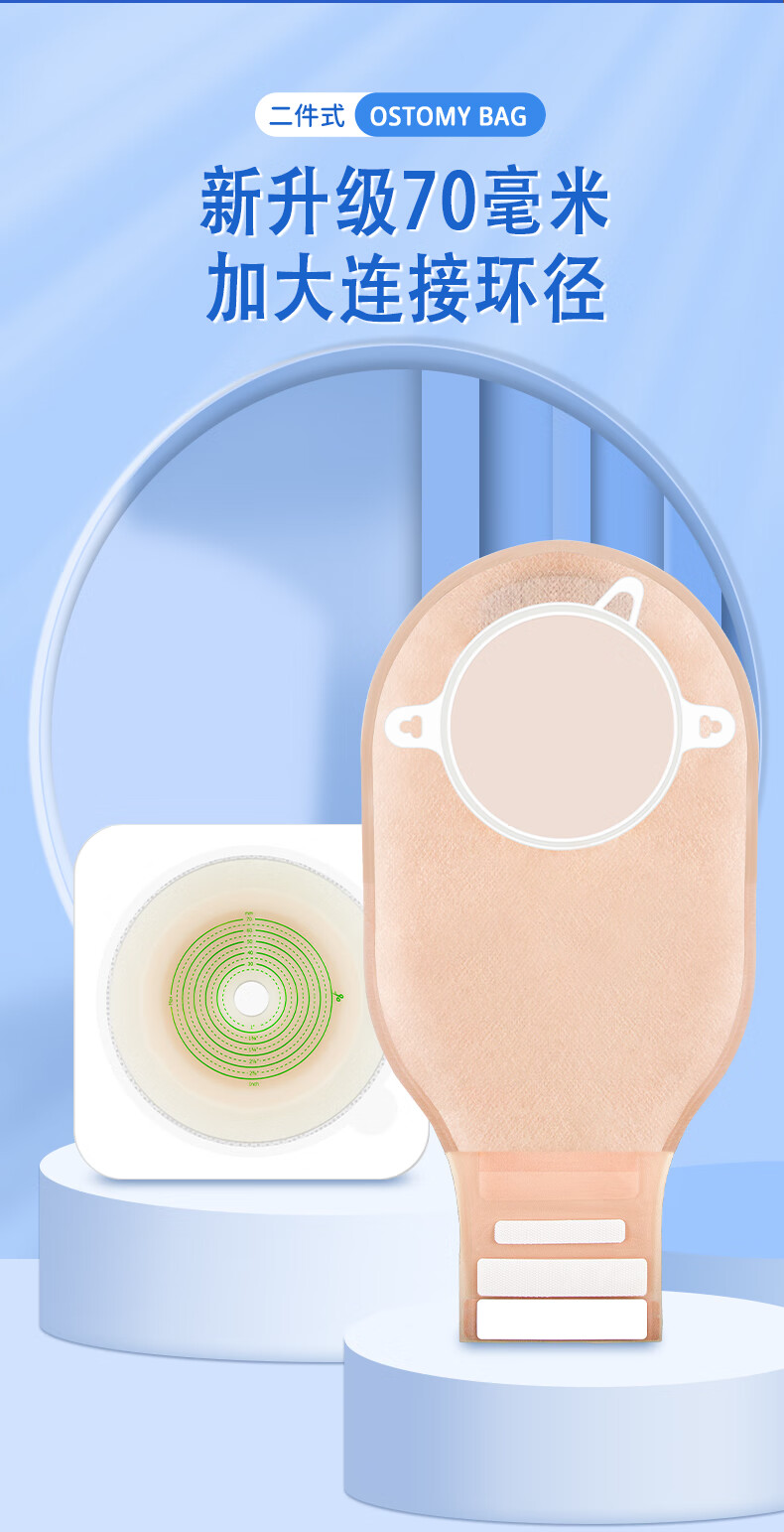 护士同学70mm二件式造口袋两件式双层无纺布防漏平面底盘造瘘袋 锯齿平盘(10个)+活性炭袋子【10个】-70mm