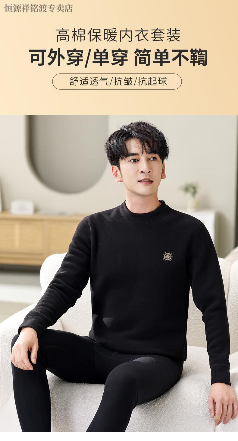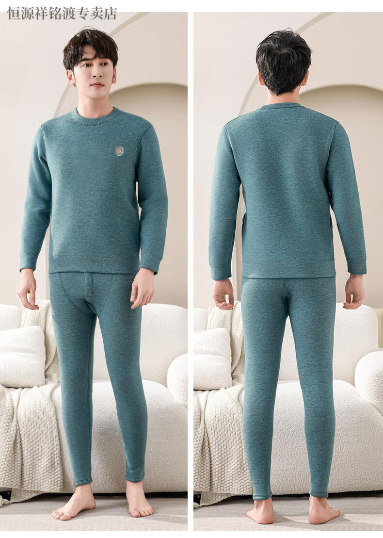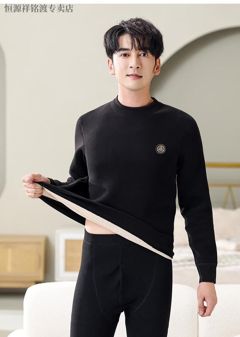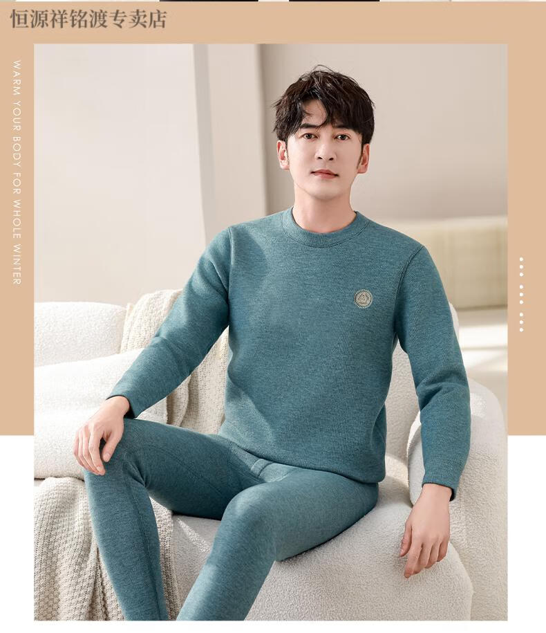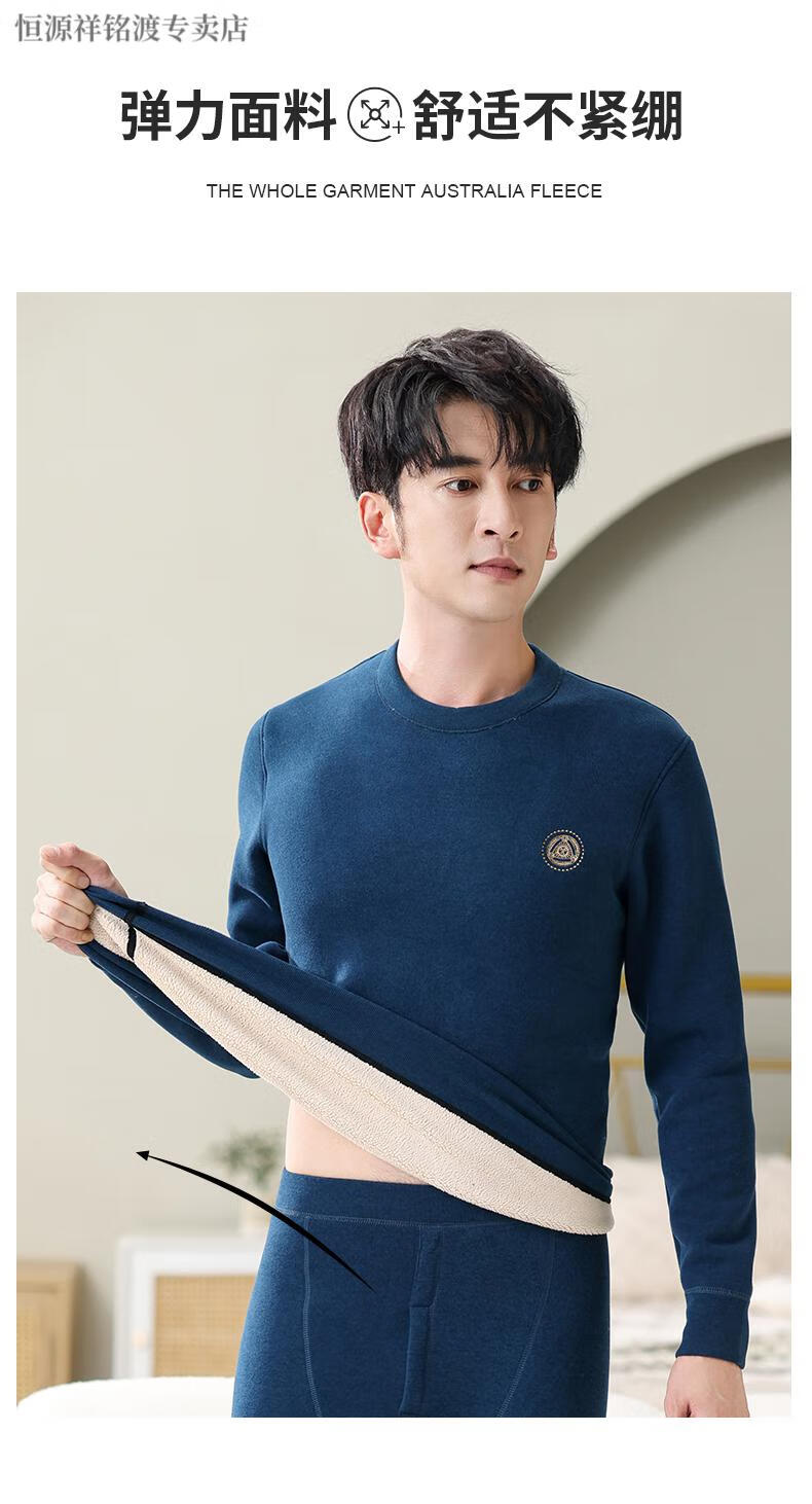 恒源祥超厚羊绒夹棉冬季男士保暖内衣套装加绒加厚秋衣秋裤防寒打底衫男 NYY918高贵红套装 4XL (体重180斤-200斤)