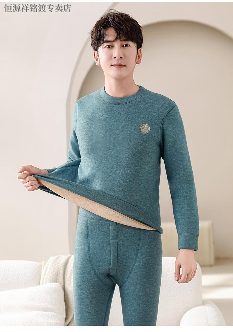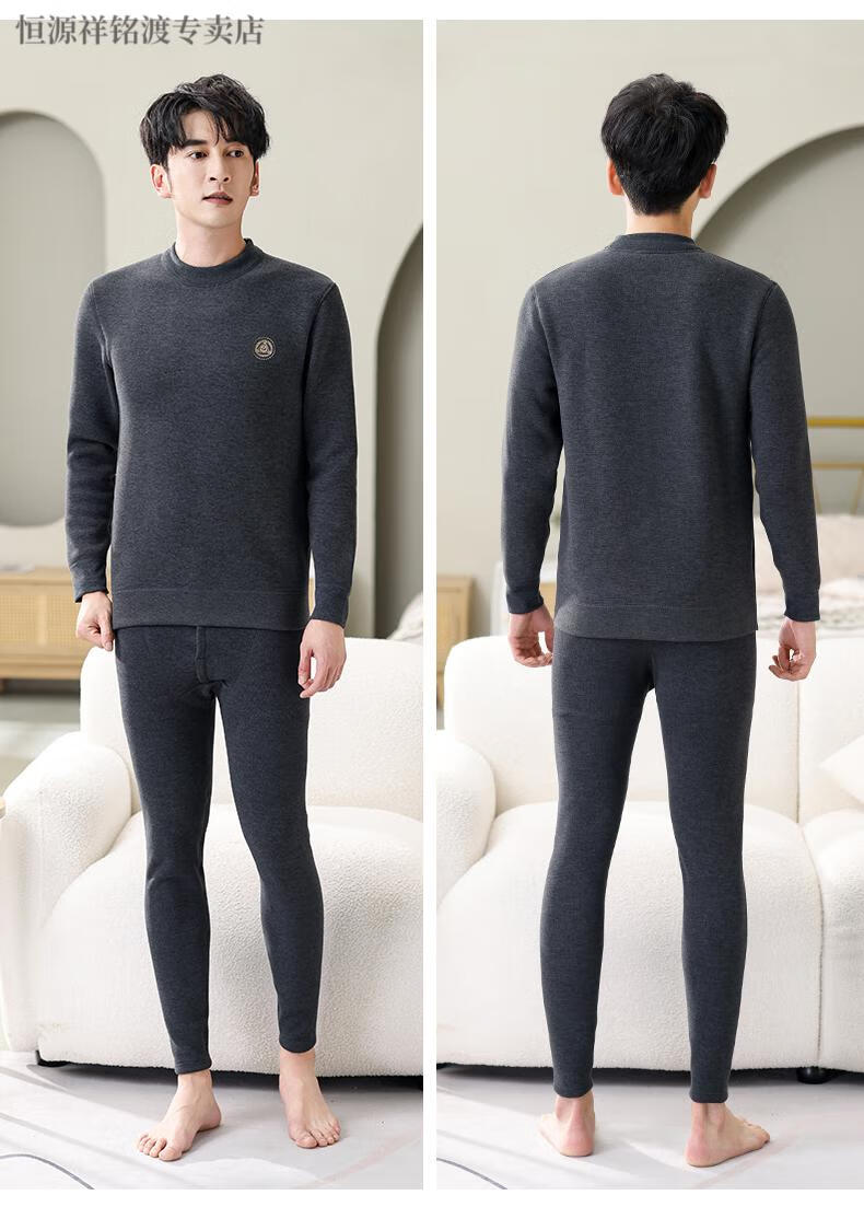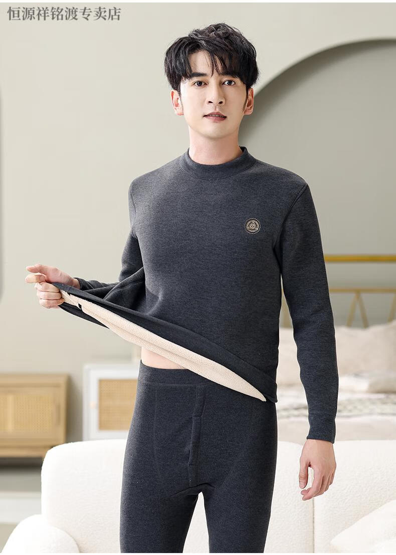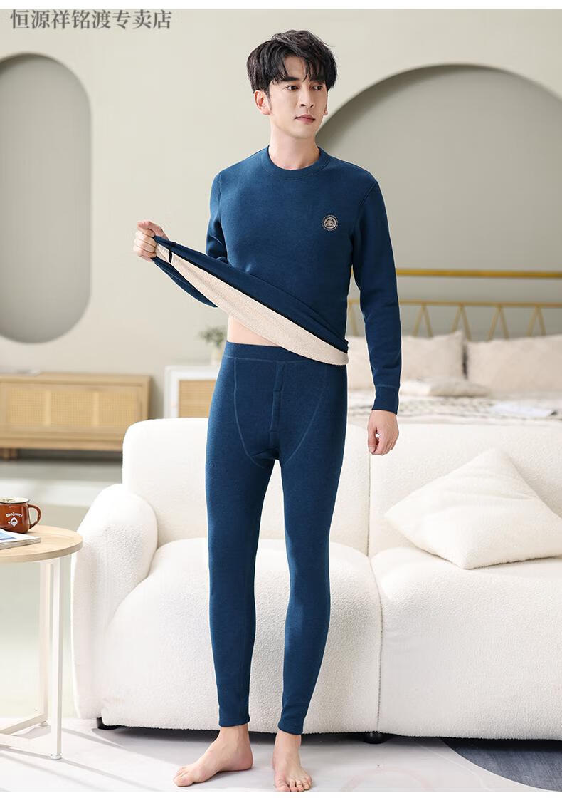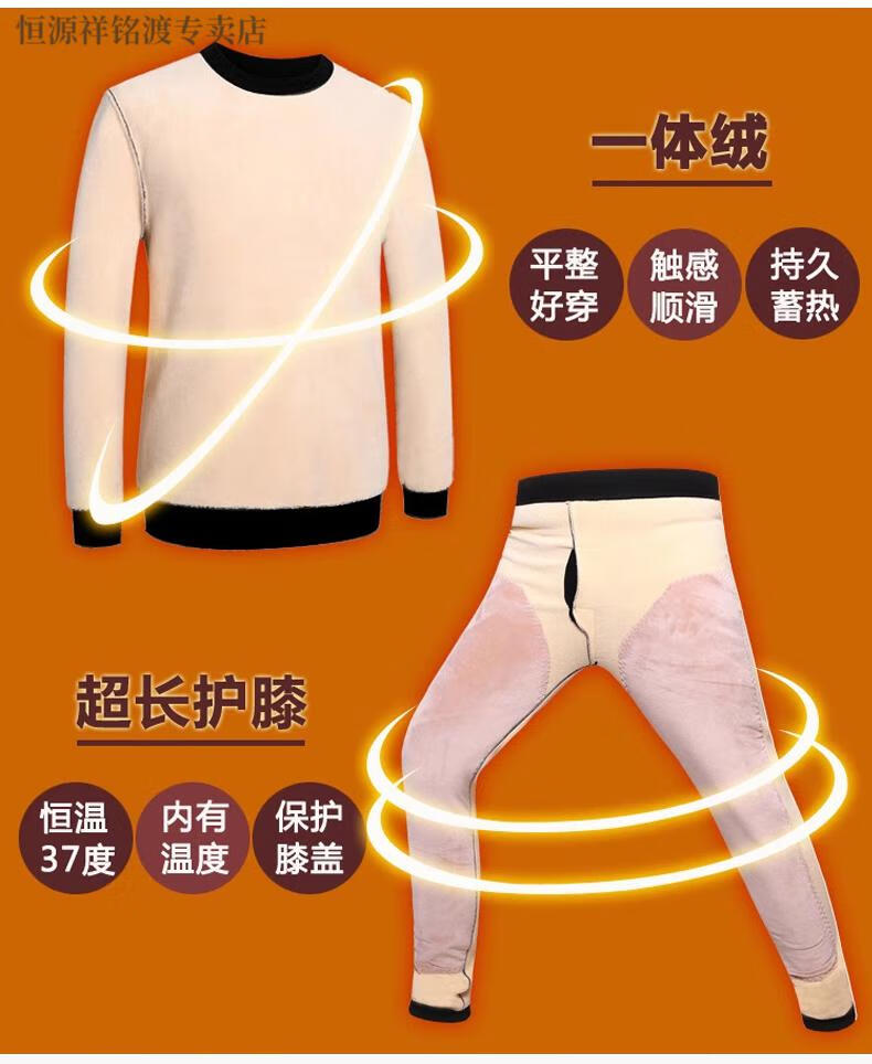 恒源祥超厚羊绒夹棉冬季男士保暖内衣套装加绒加厚秋衣秋裤防寒打底衫男 NYY918高贵红套装 4XL (体重180斤-200斤)