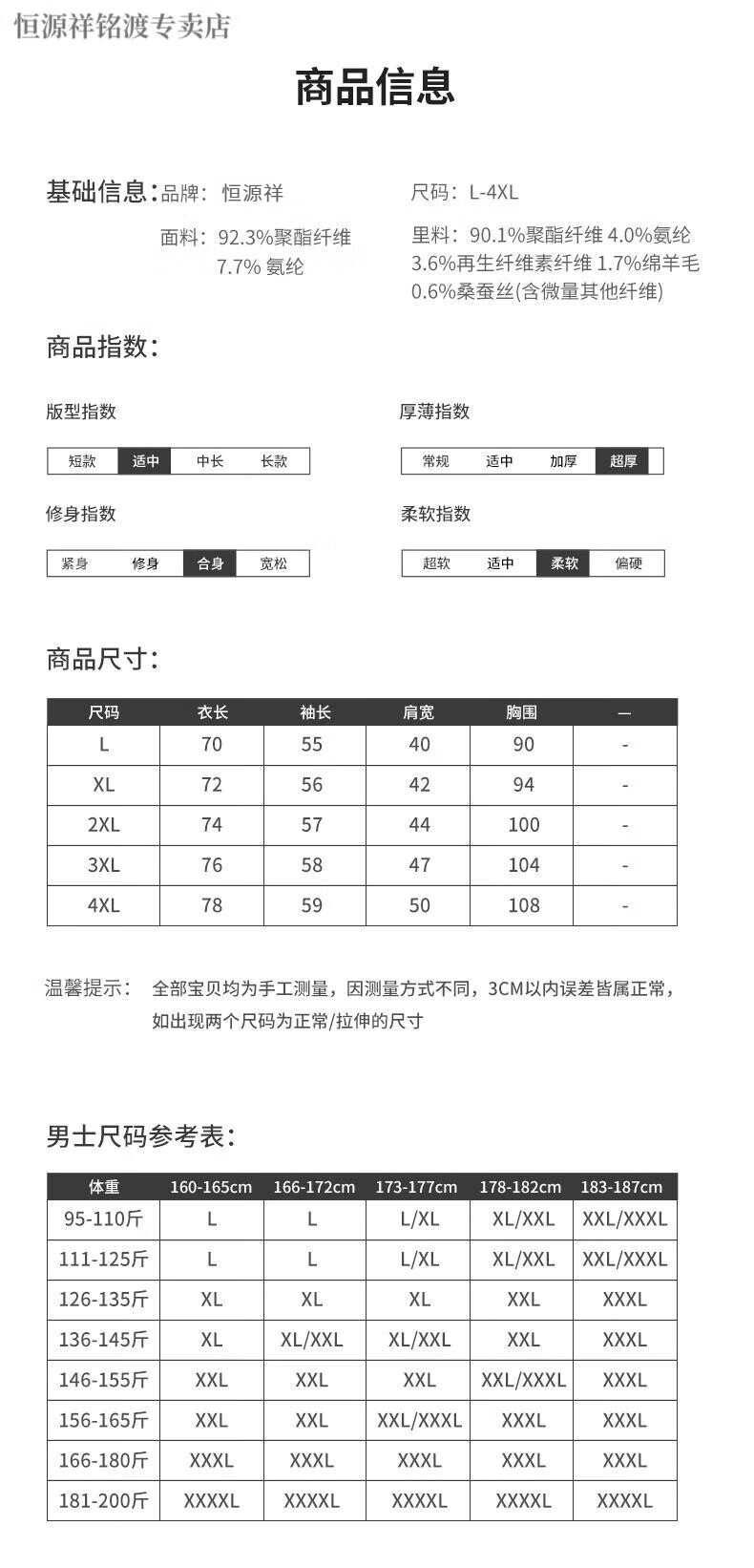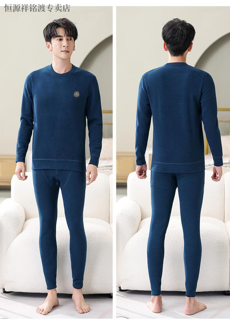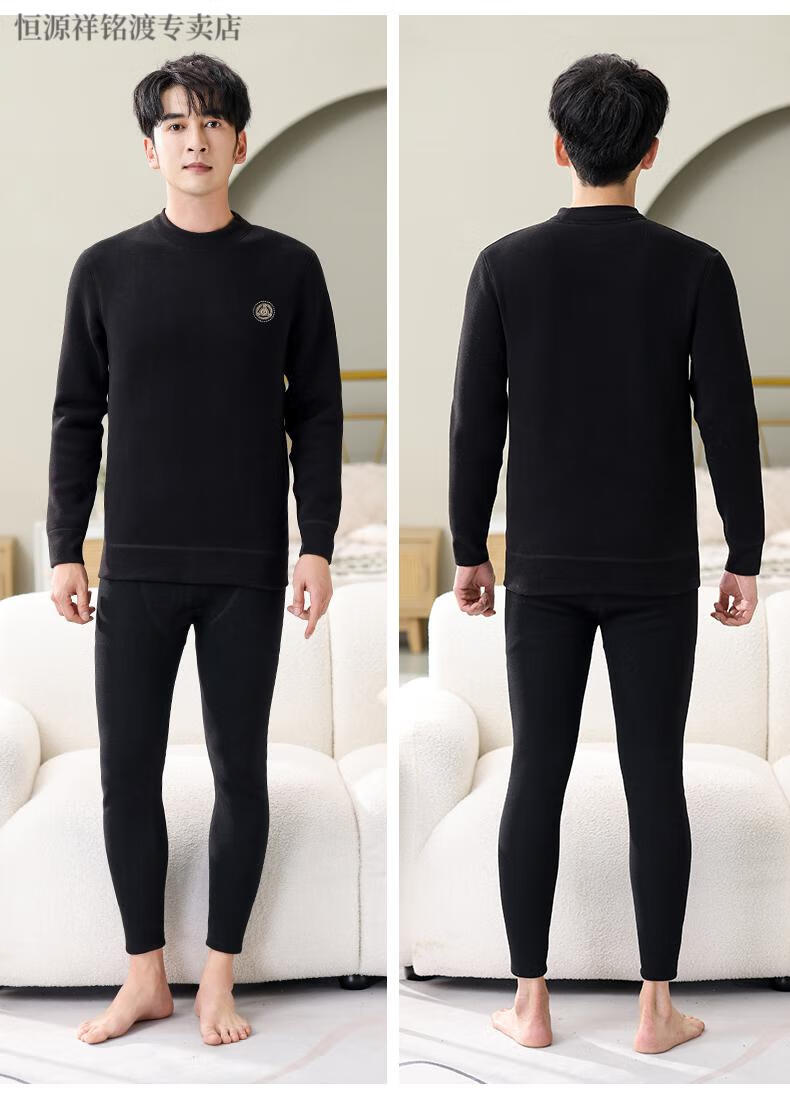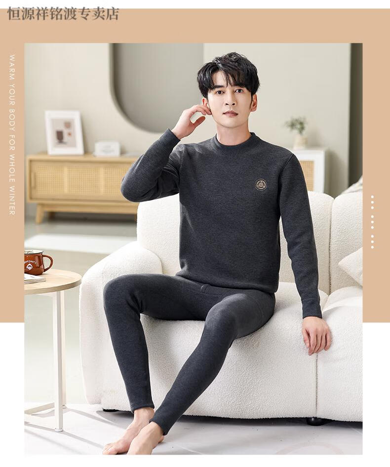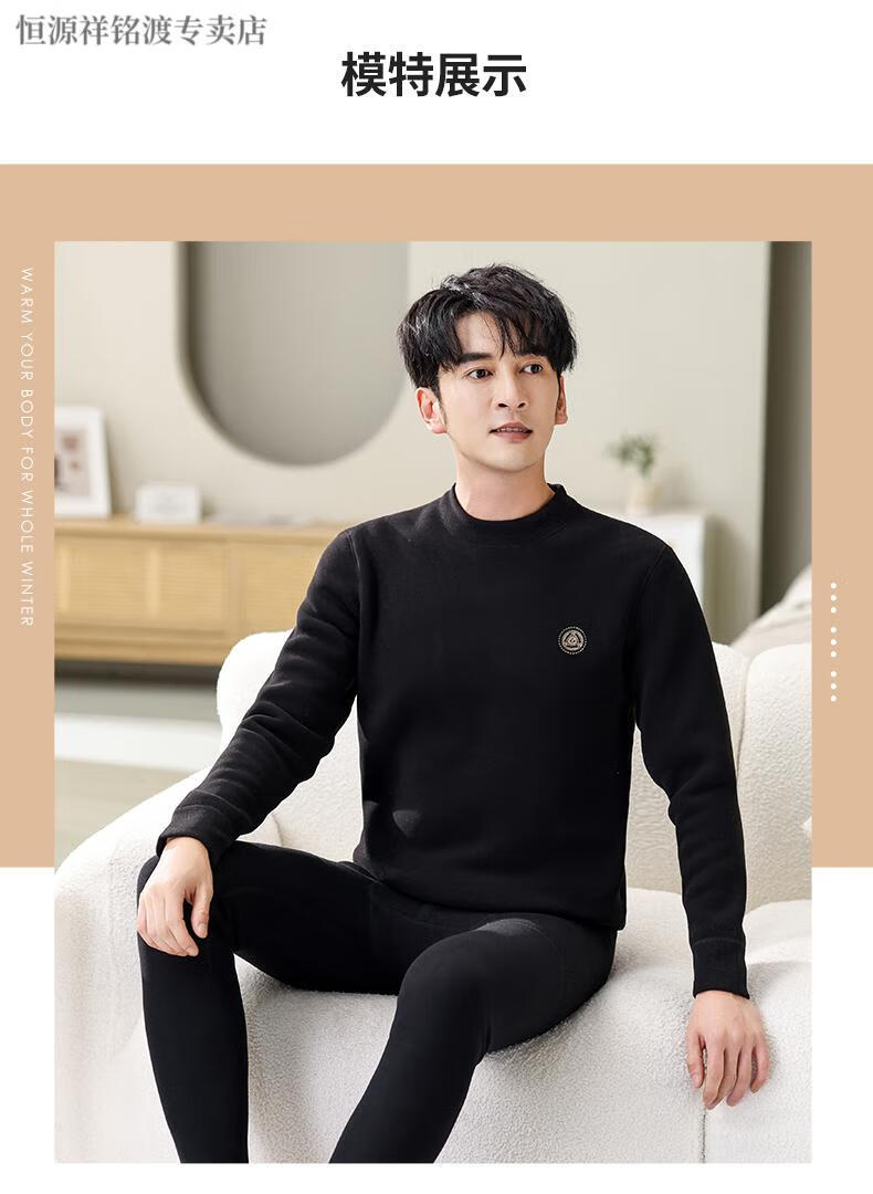 恒源祥超厚羊绒夹棉冬季男士保暖内衣套装加绒加厚秋衣秋裤防寒打底衫男 NYY918高贵红套装 4XL (体重180斤-200斤)