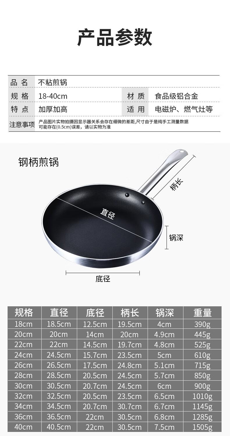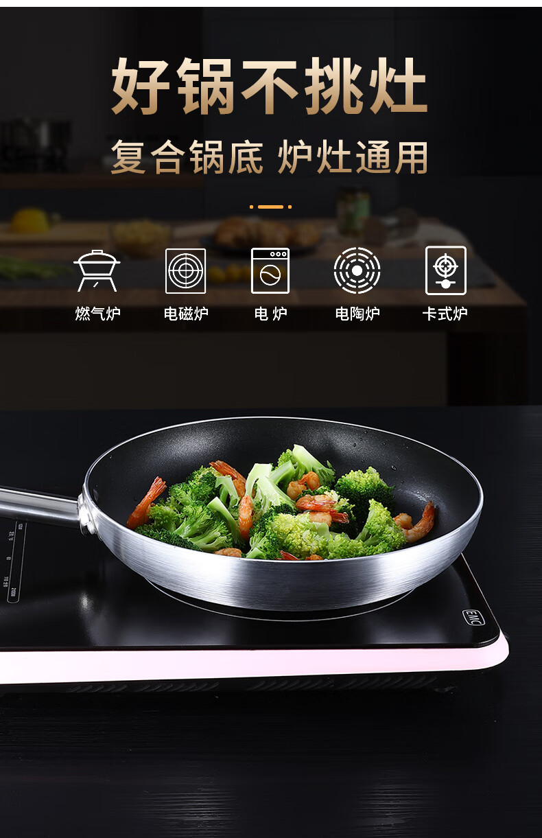不粘锅平底锅煎牛排煎锅大号家用商用酒店烙饼锅电磁炉燃气灶 不粘煎锅18cm钢柄18cm