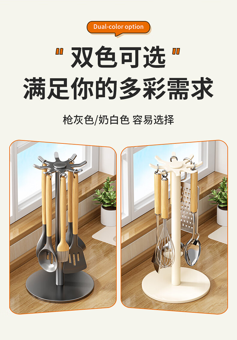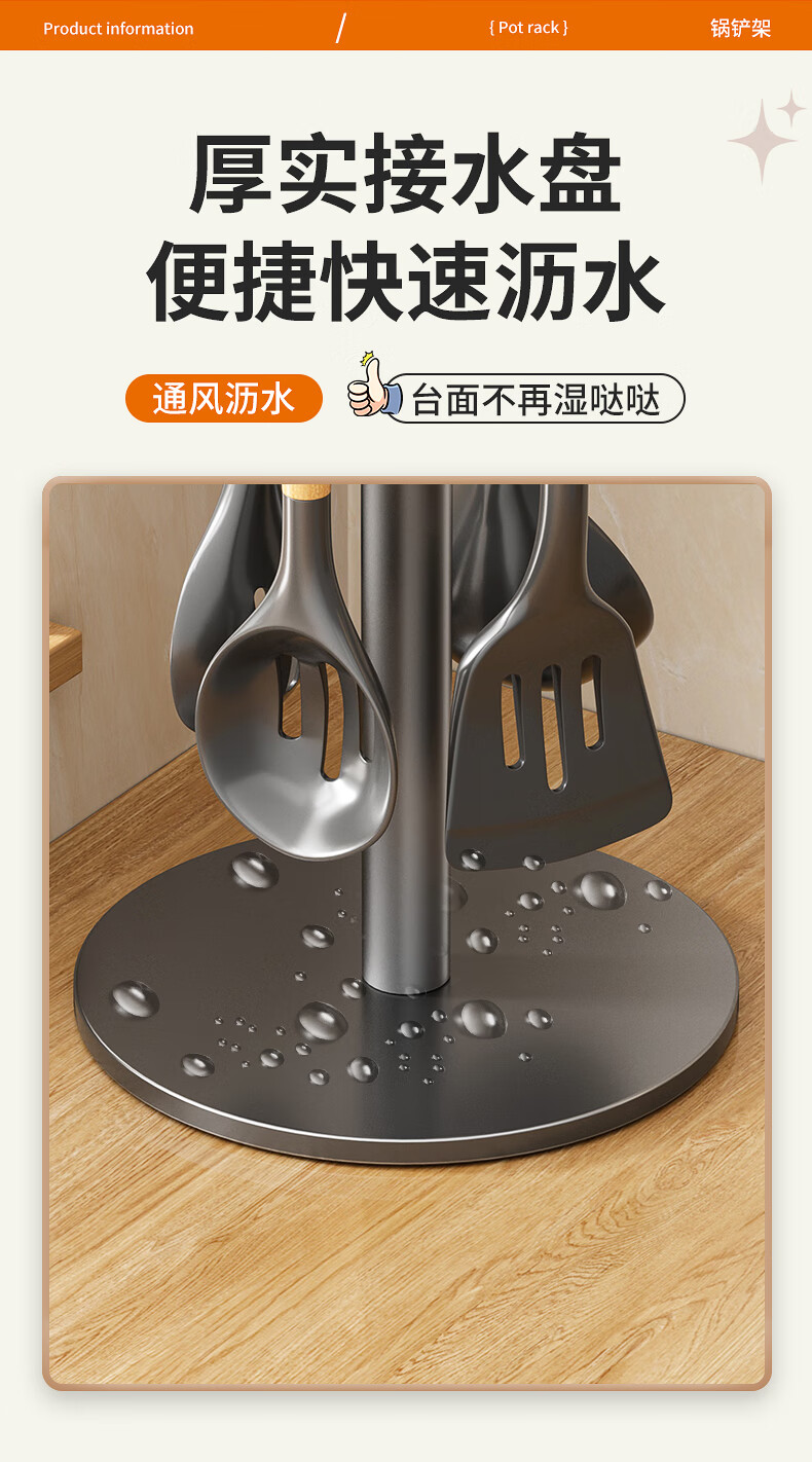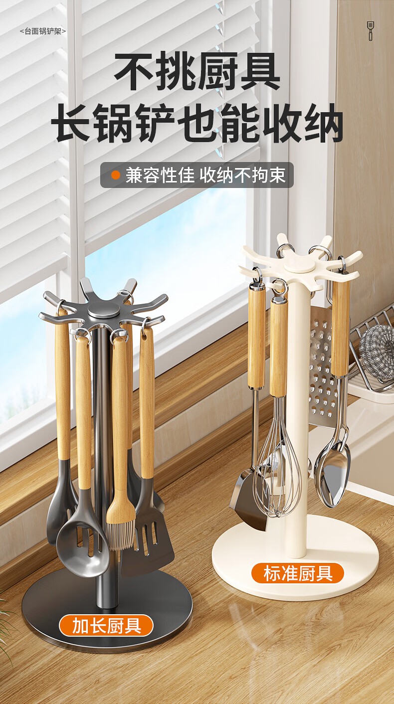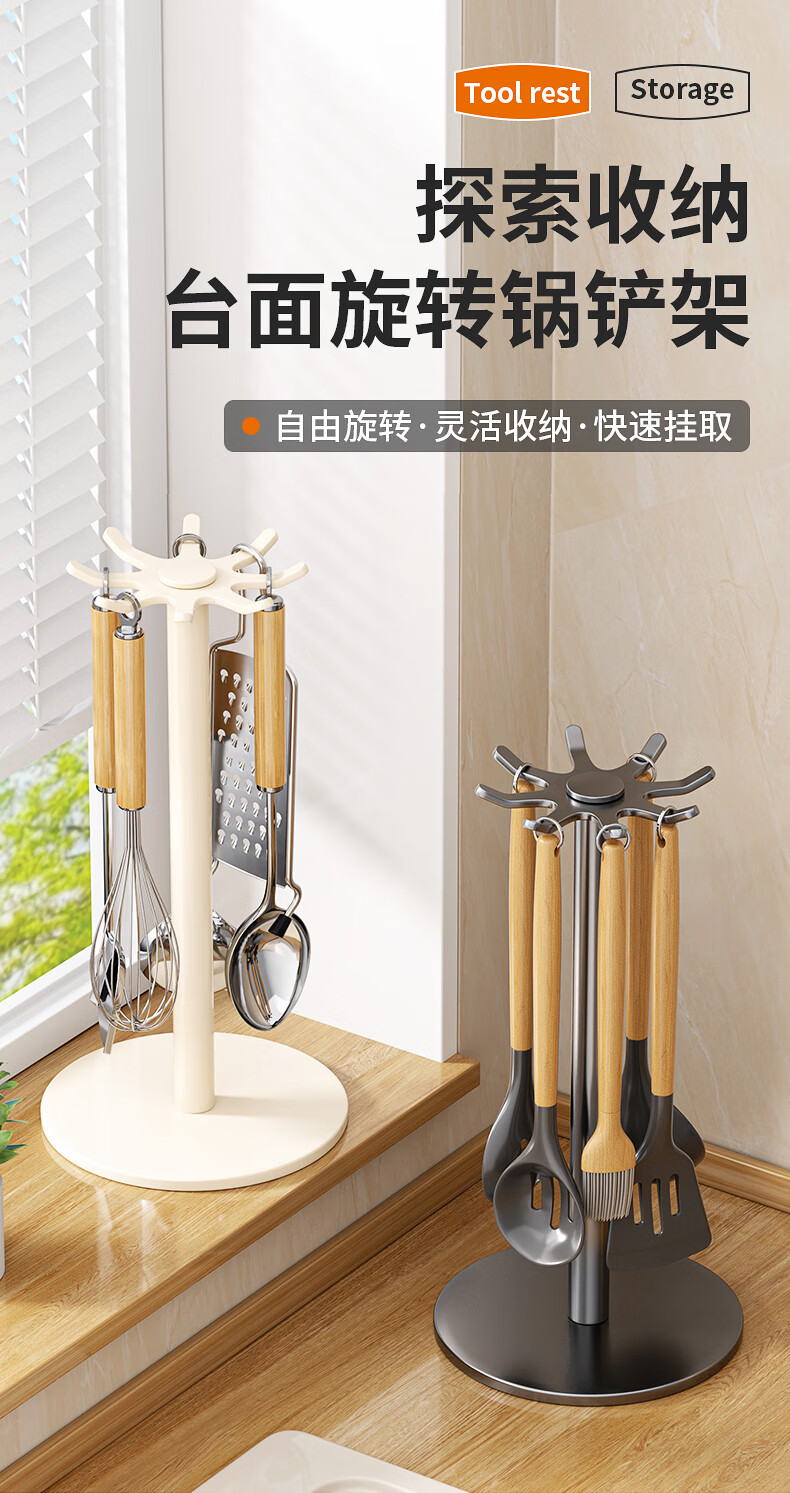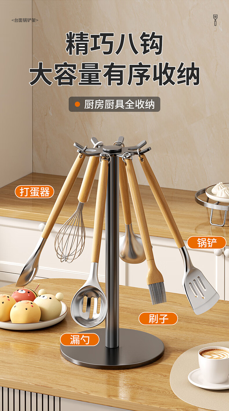 360° 旋转锅铲架厨房台面家用置物架 多功能厨具勺子汤勺挂架 台面【枪灰色】锅铲架