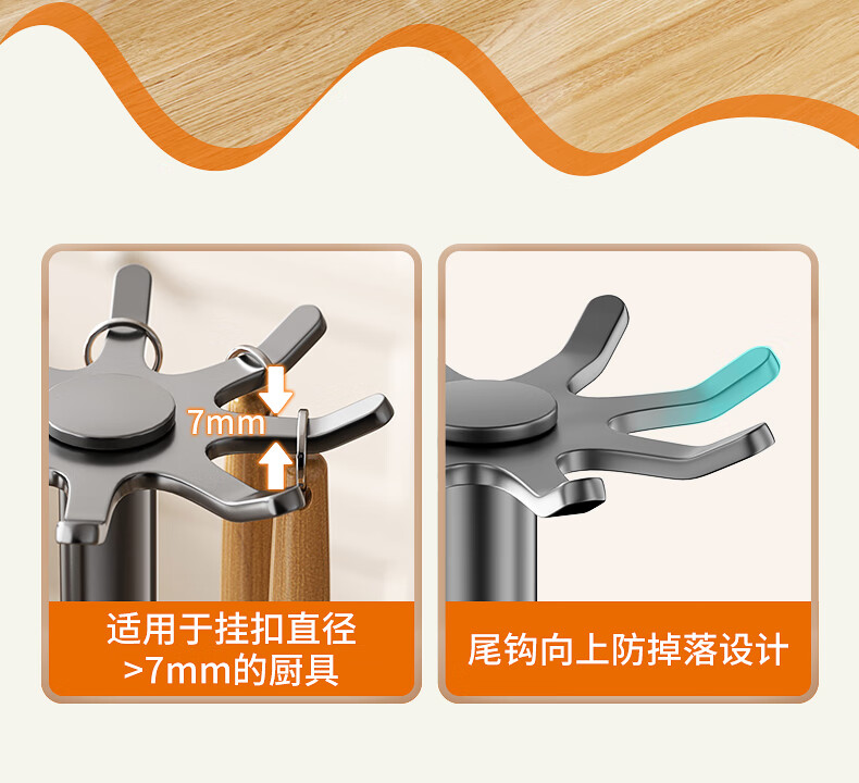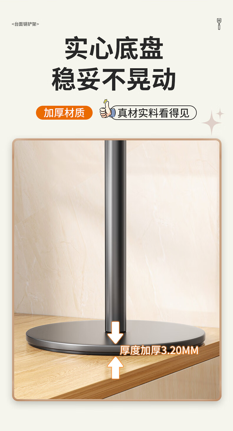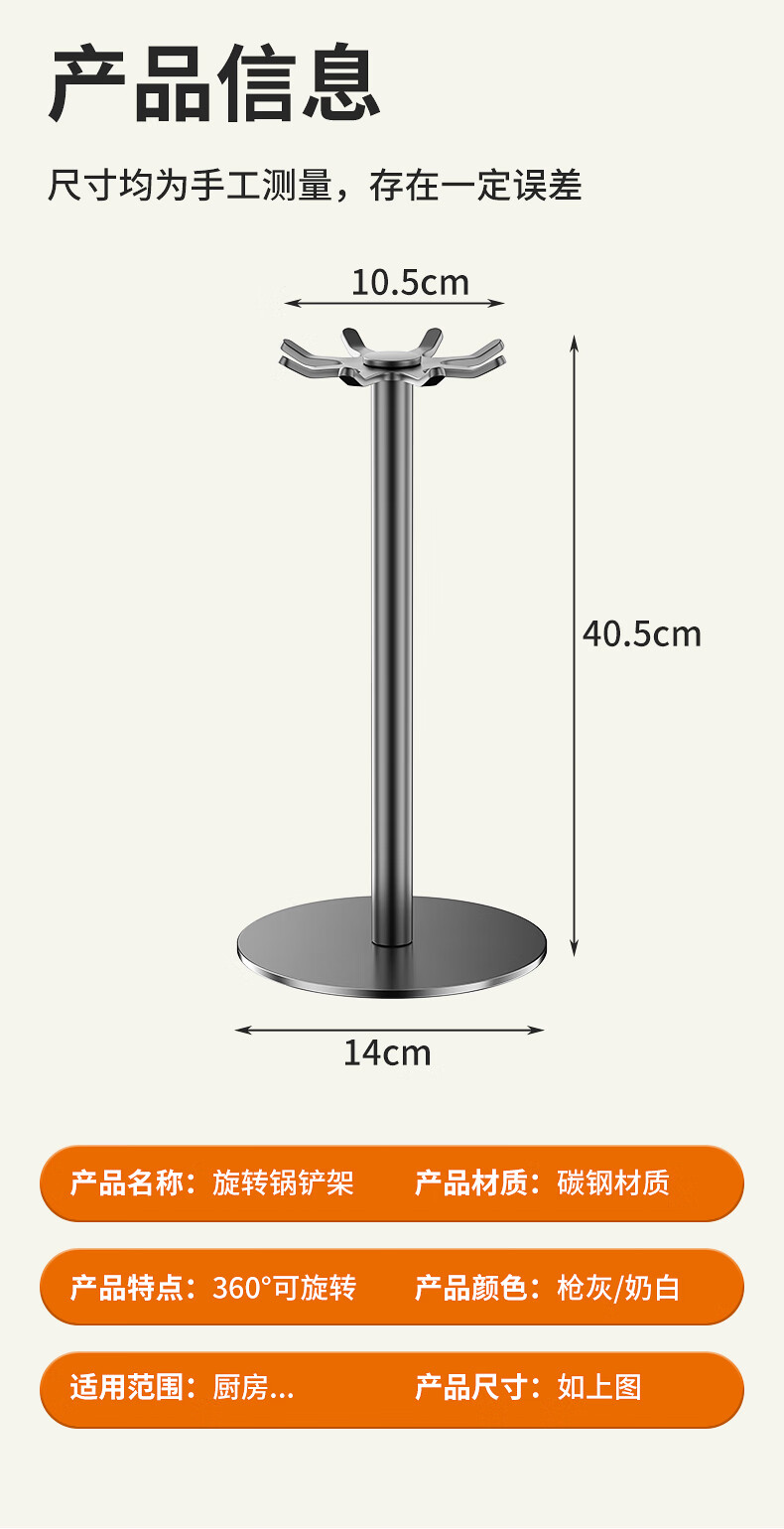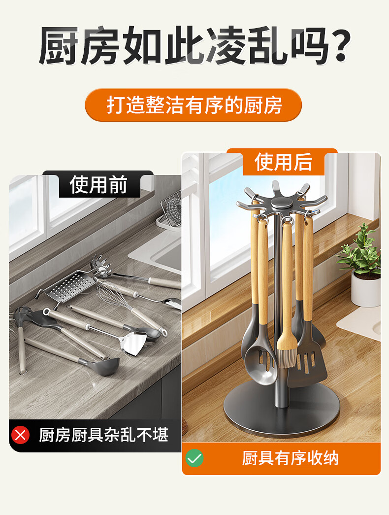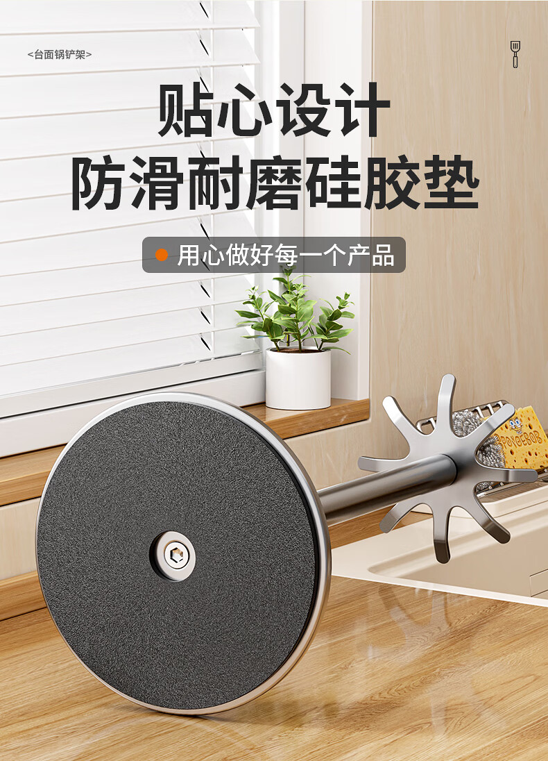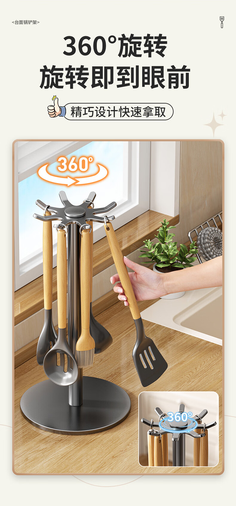 360° 旋转锅铲架厨房台面家用置物架 多功能厨具勺子汤勺挂架 台面【枪灰色】锅铲架